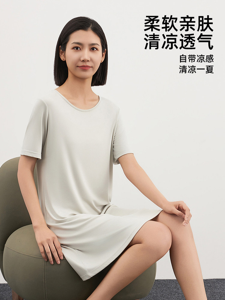 Летняя тонкая пижама с круглым воротником, лонгслив, оверсайз, длина миди