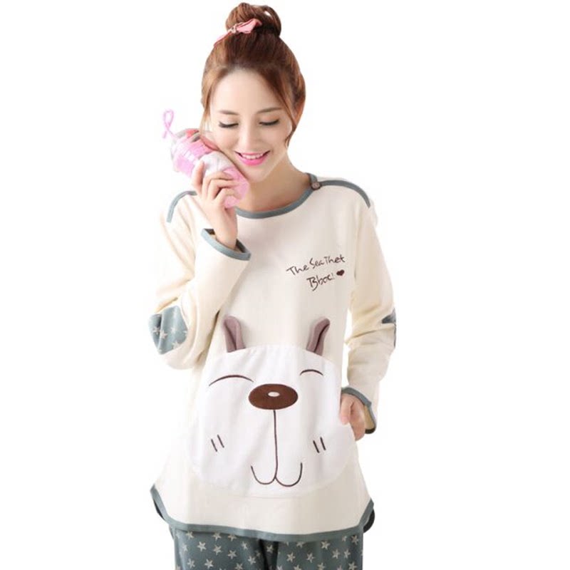 Демисезонный лонгслив, хлопковая пижама, мультяшные повседневные брюки, штаны, домашняя одежда, в корейском стиле, большой размер