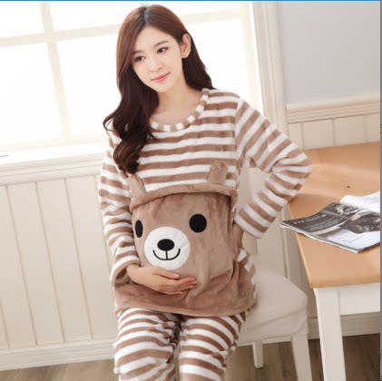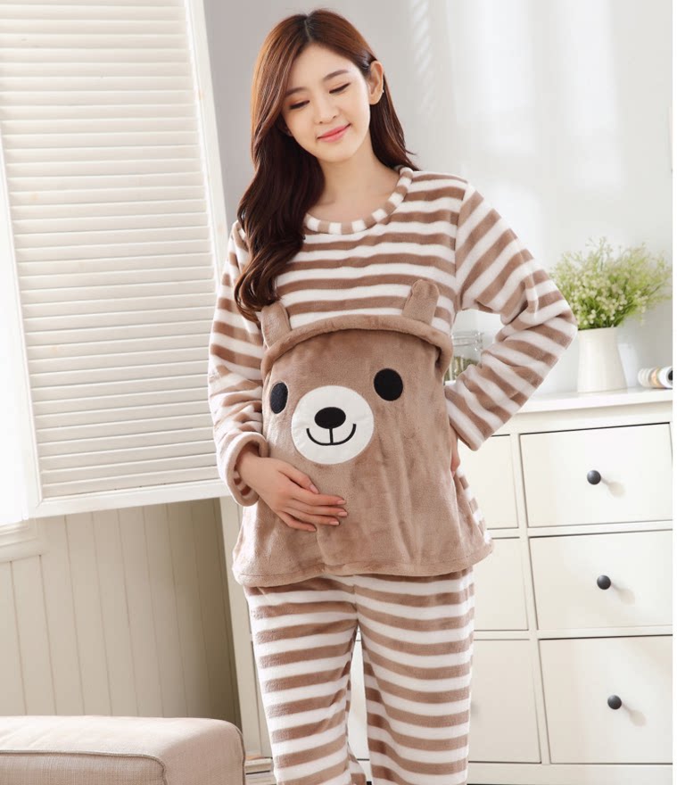 Демисезонная фланелевая послеродовая коралловая удерживающая тепло пижама для беременных для кормящих грудью, увеличенная толщина