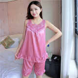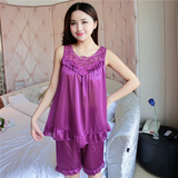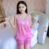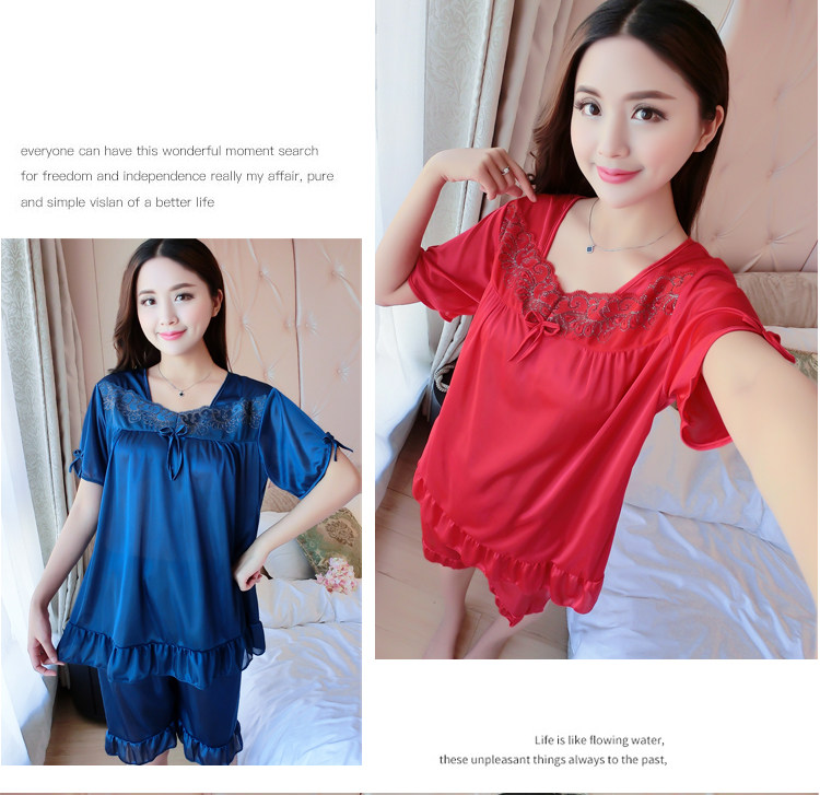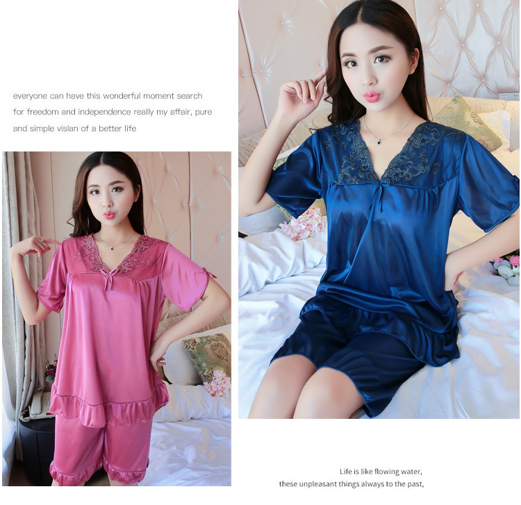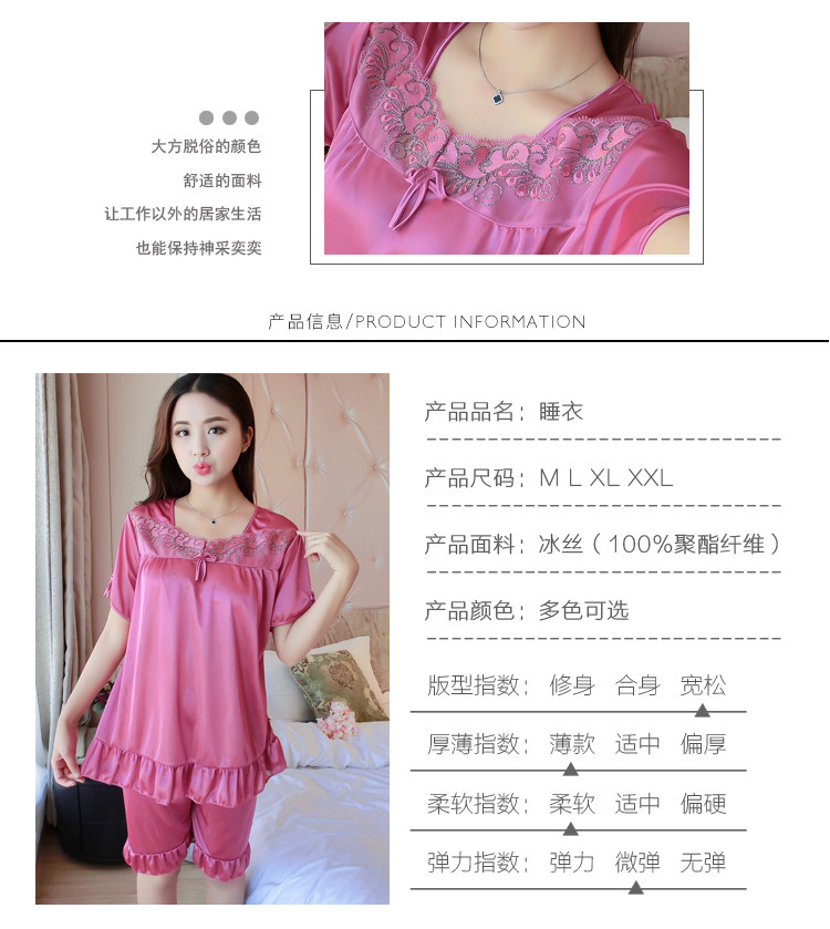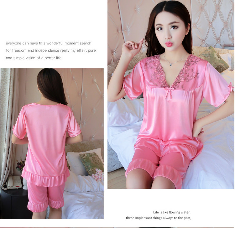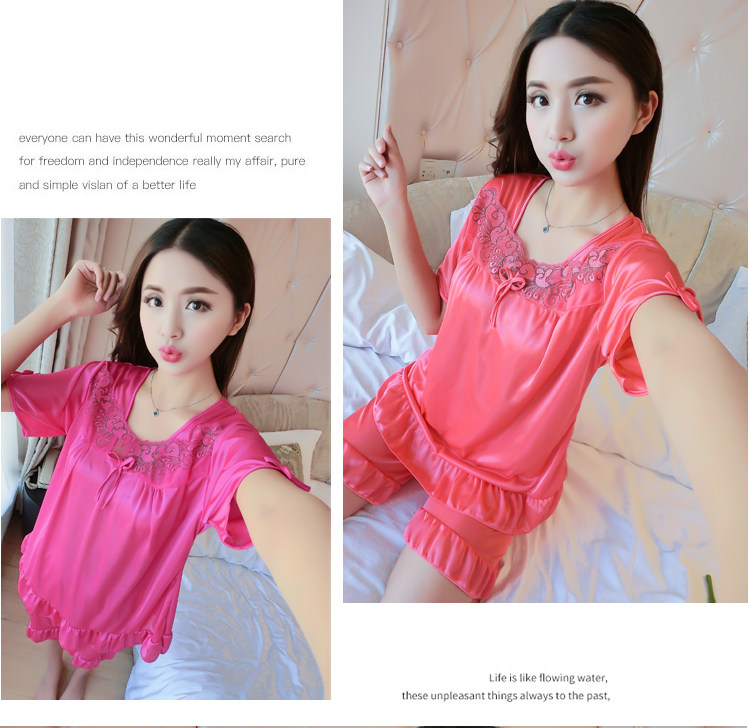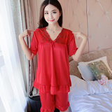 Пижама, шелковый шифоновый сексуальный комплект, милая домашняя одежда для школьников и студентов, короткий рукав, в корейском стиле