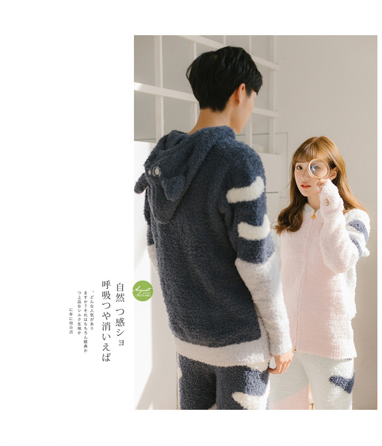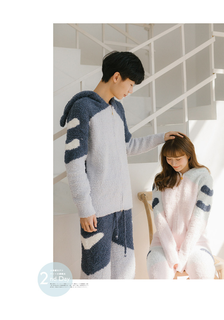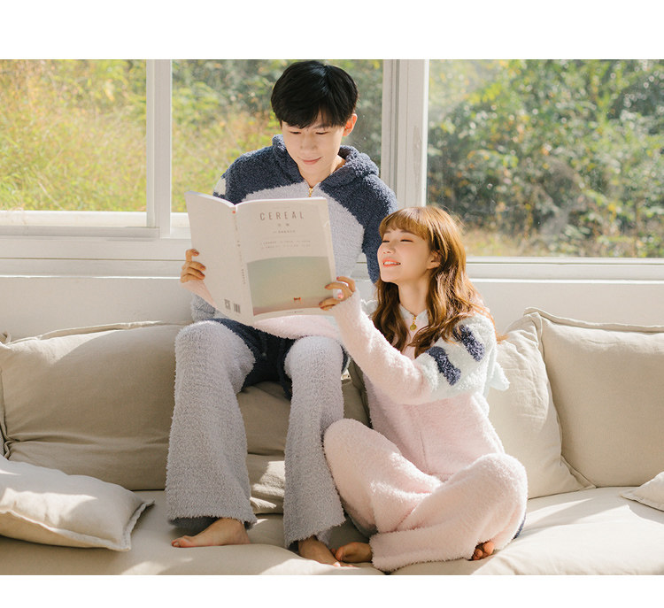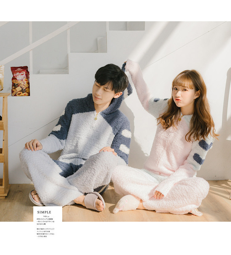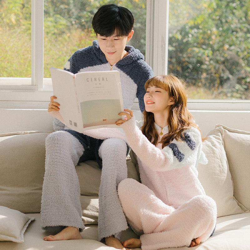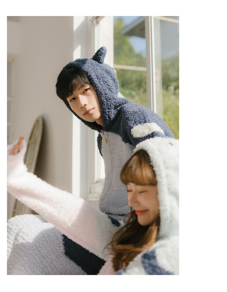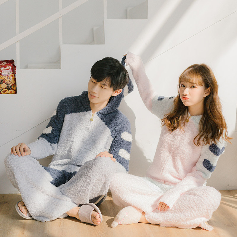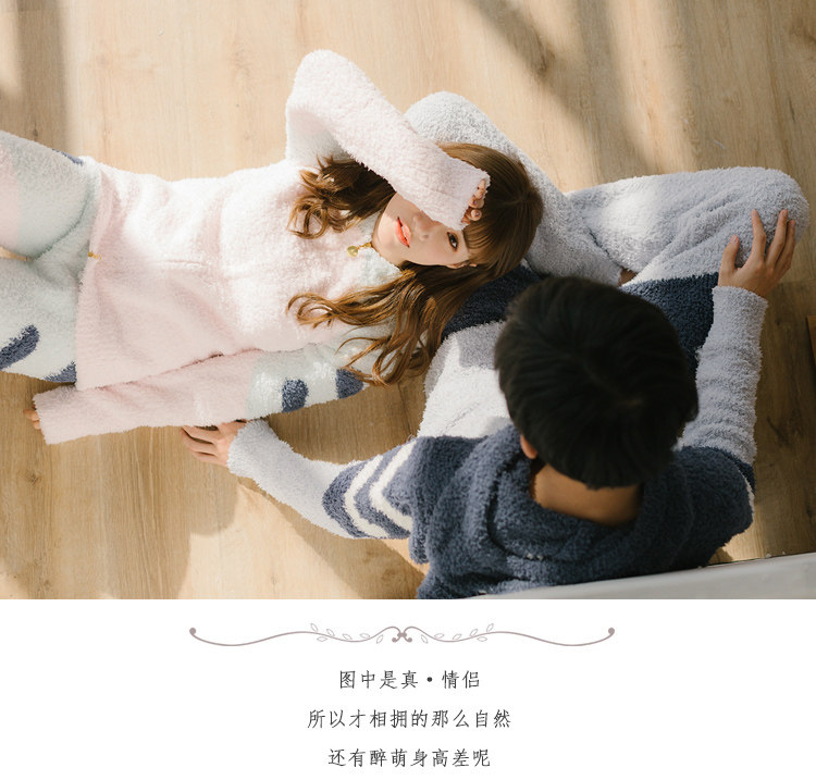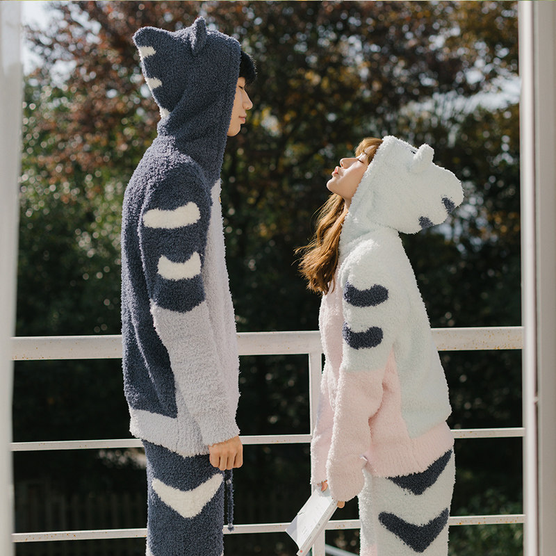 Зимняя милая шерстяная пижама, утепленный комплект, для влюбленных