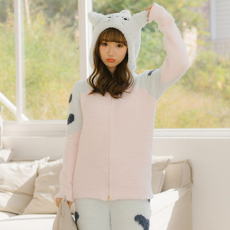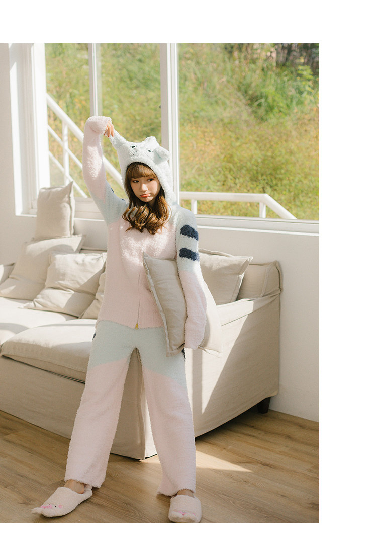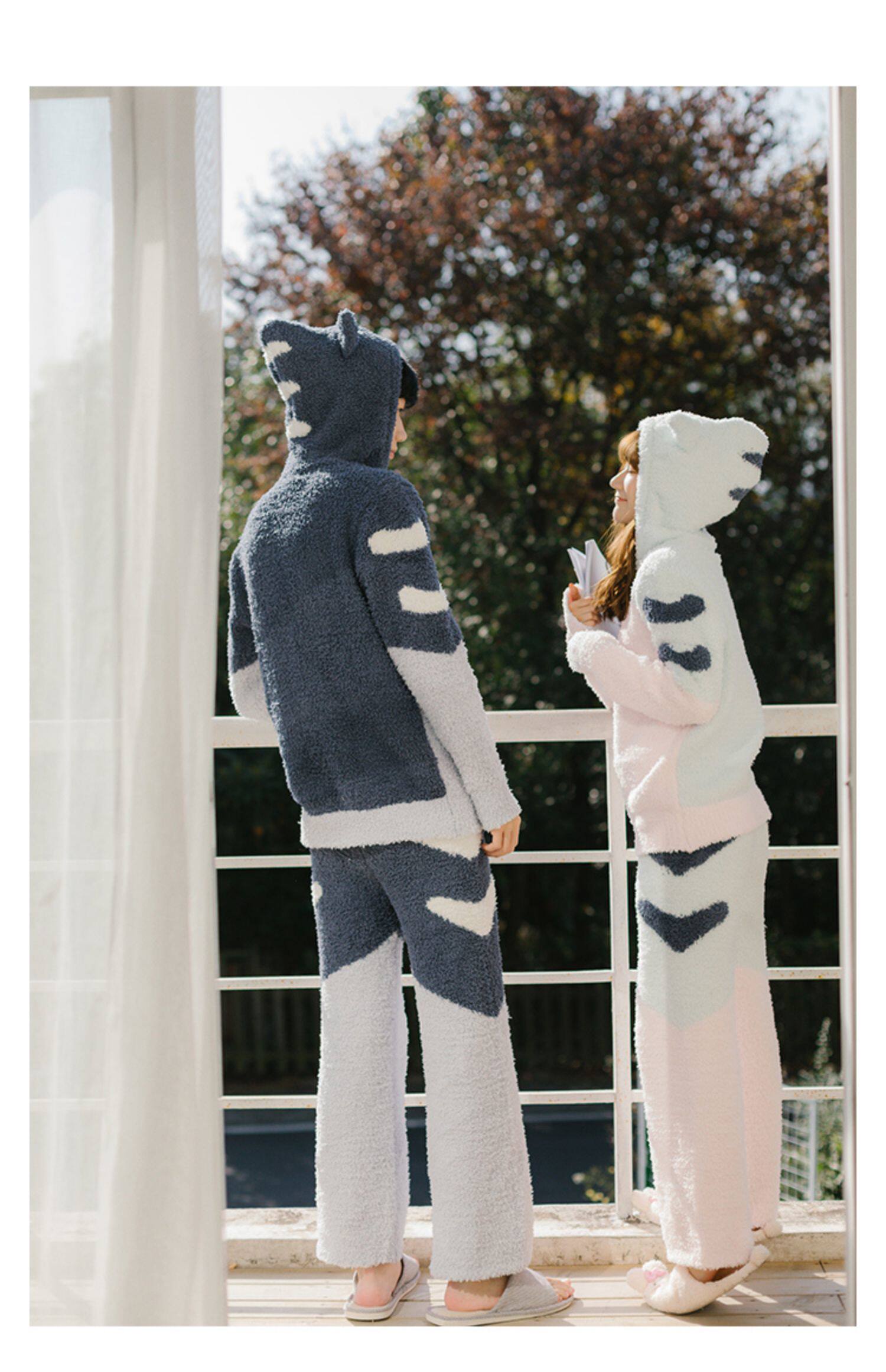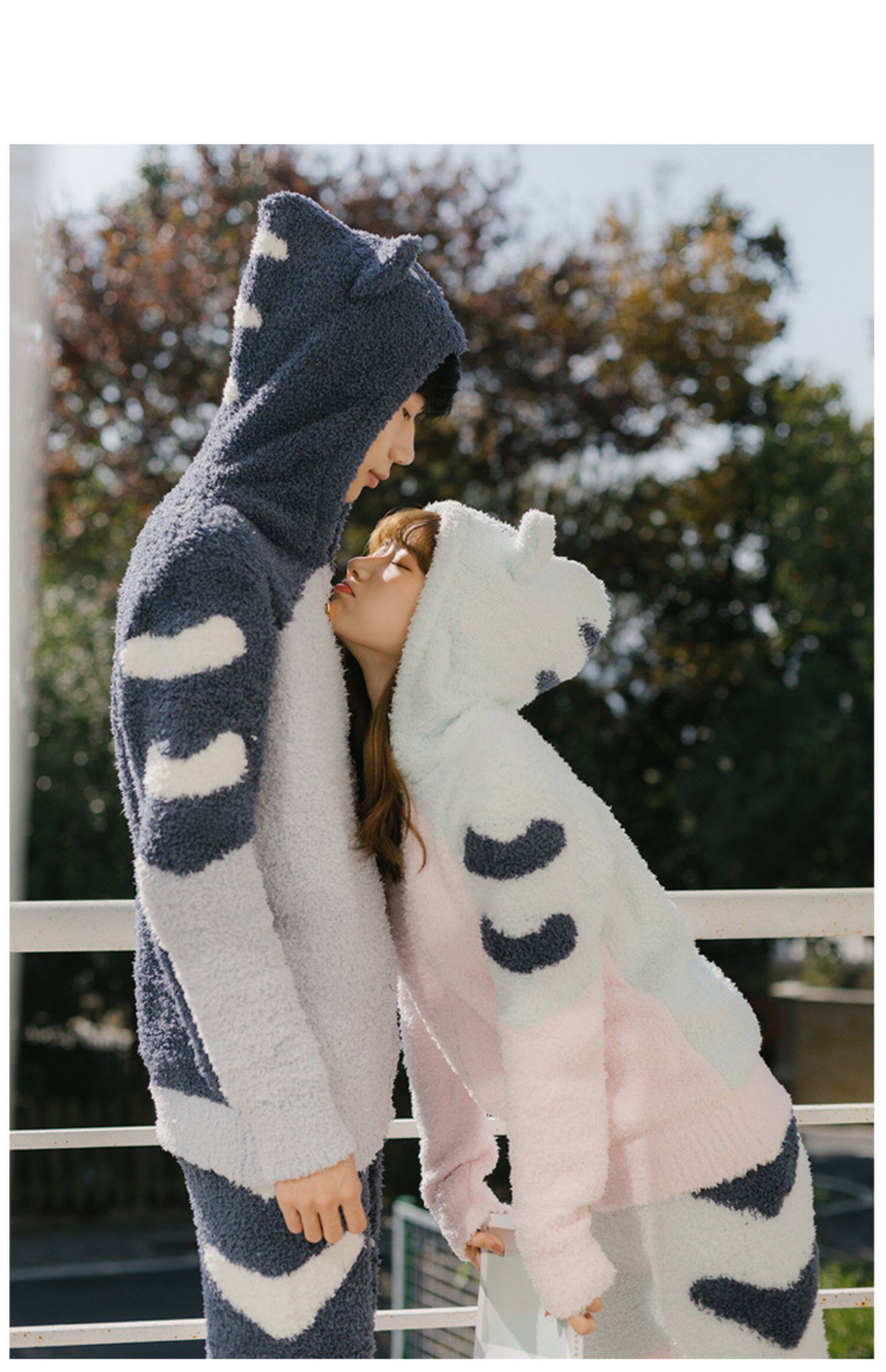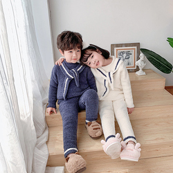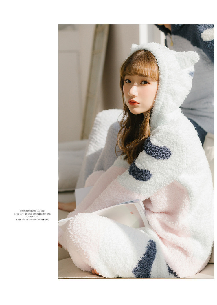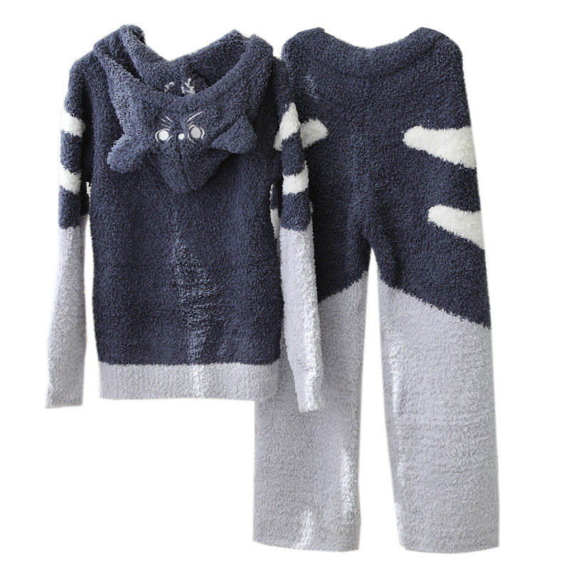 Зимняя милая шерстяная пижама, утепленный комплект, для влюбленных