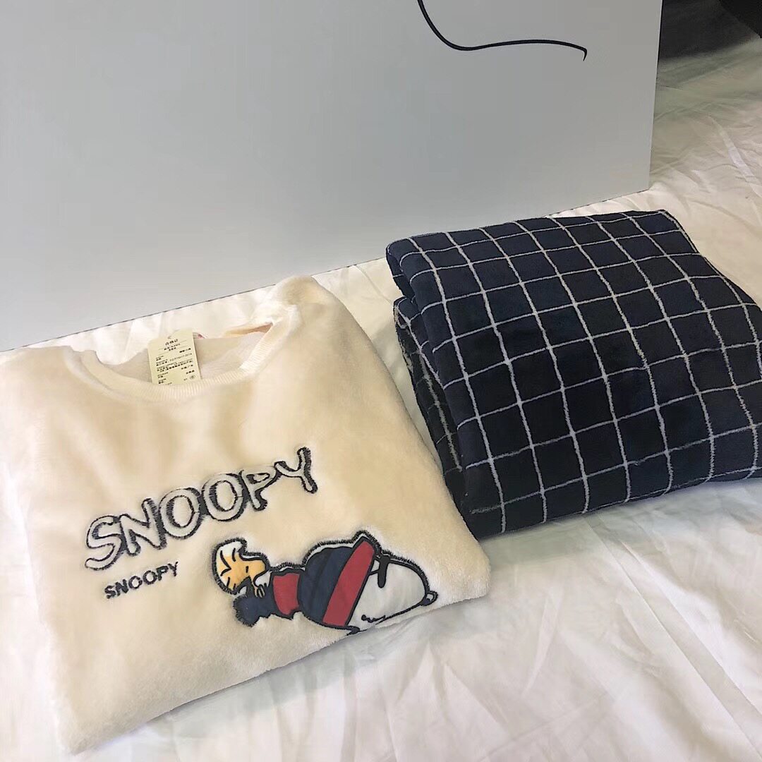 Snoopy, nuby, японская мультяшная демисезонная удерживающая тепло фланелевая пижама, коралловый бархатный комплект