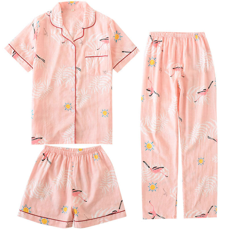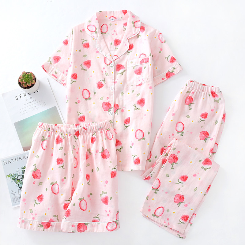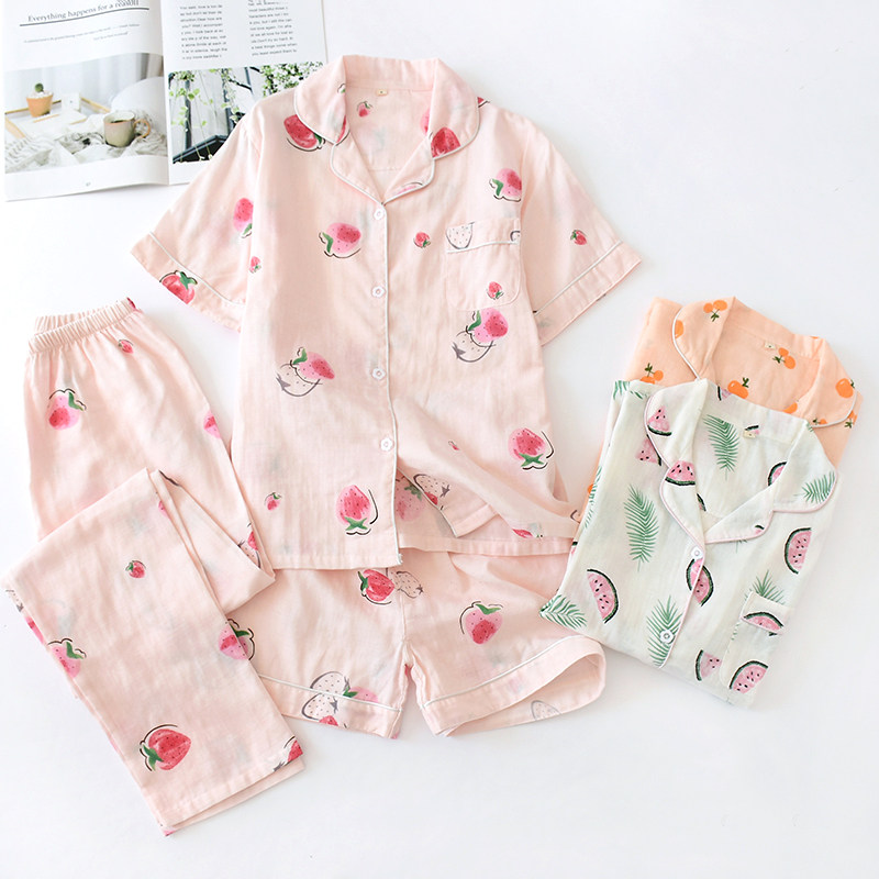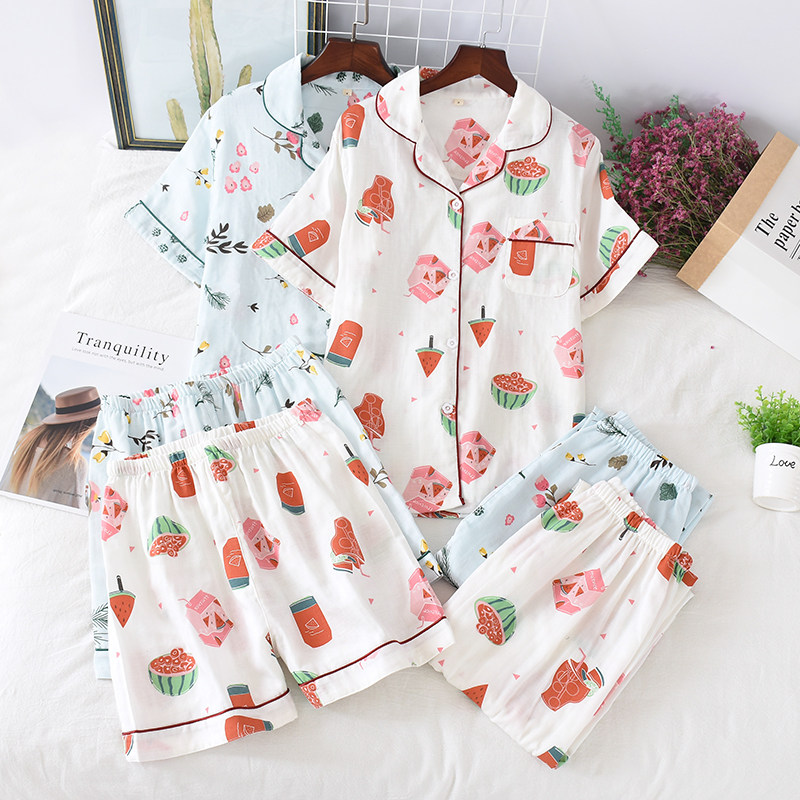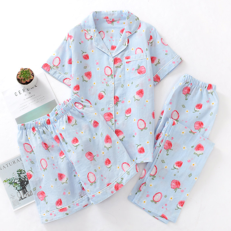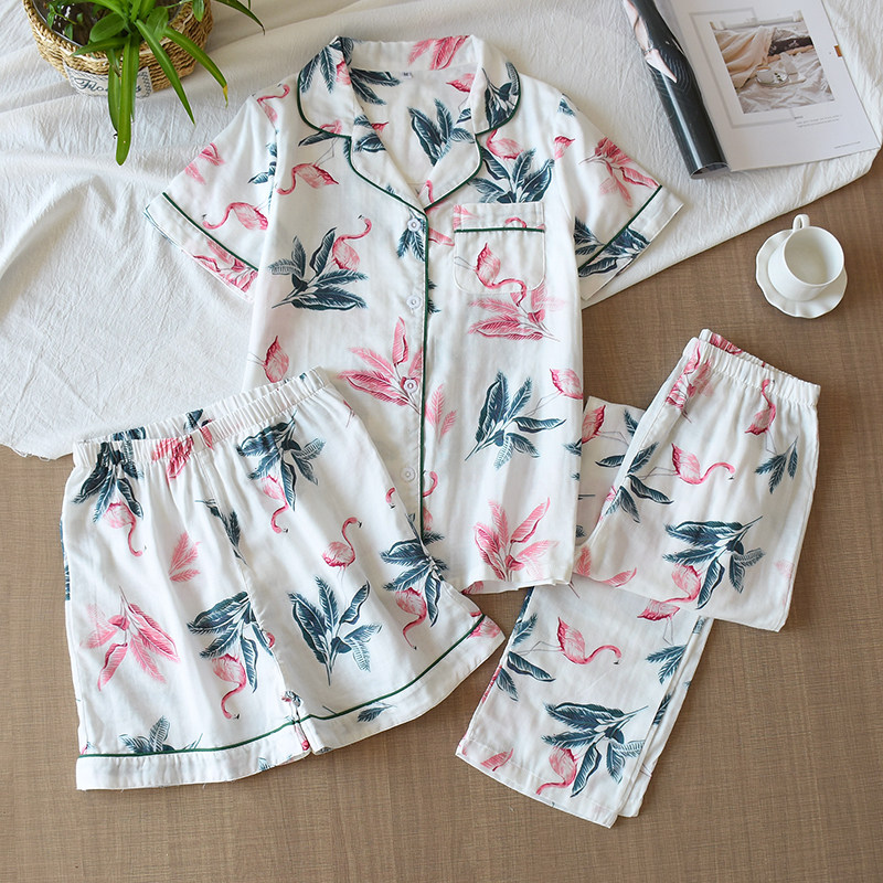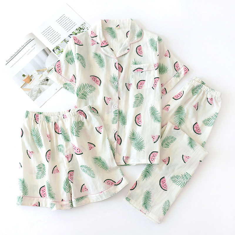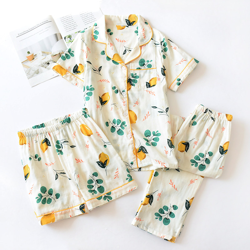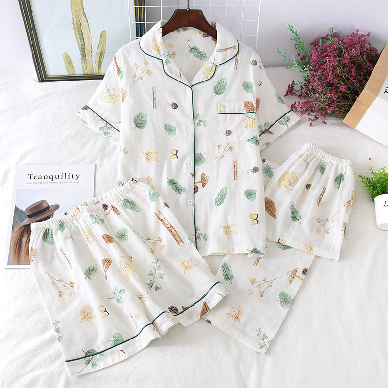 Хлопковый комплект, марлевая пижама, хлопковые летние шорты, 3 предмета, короткий рукав