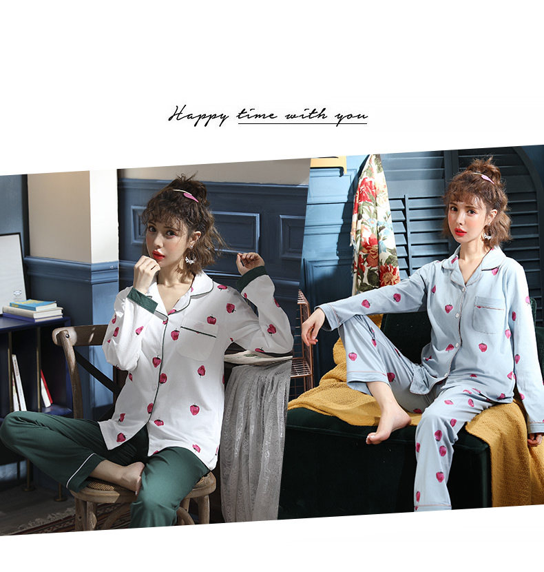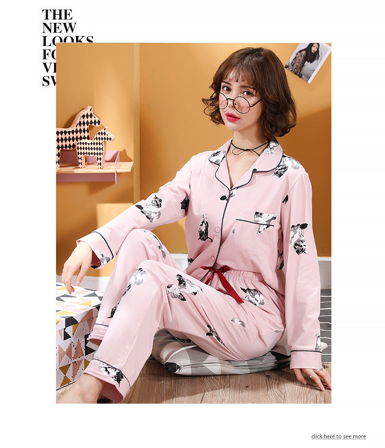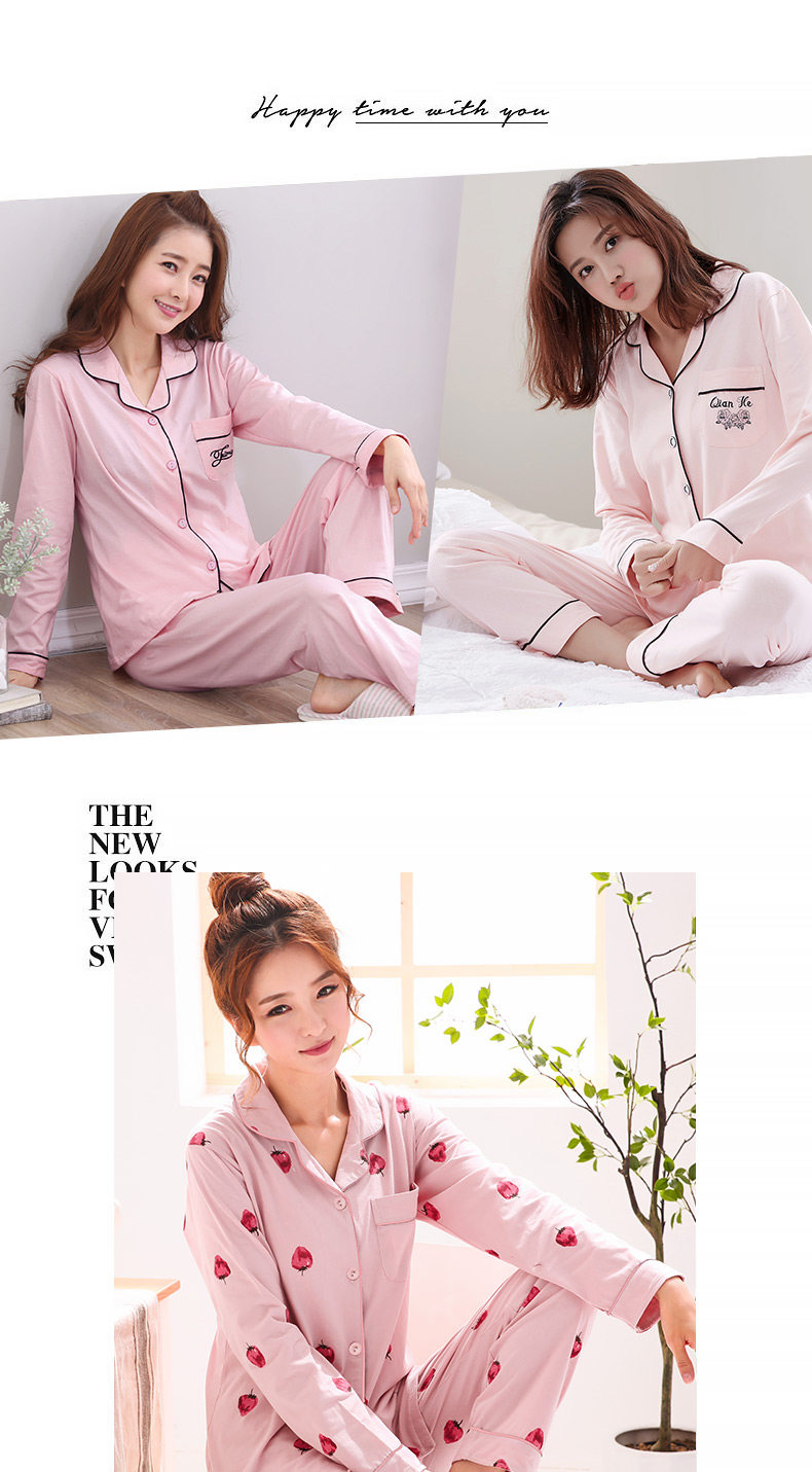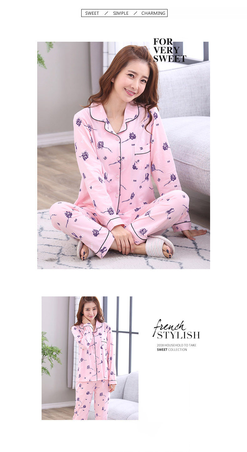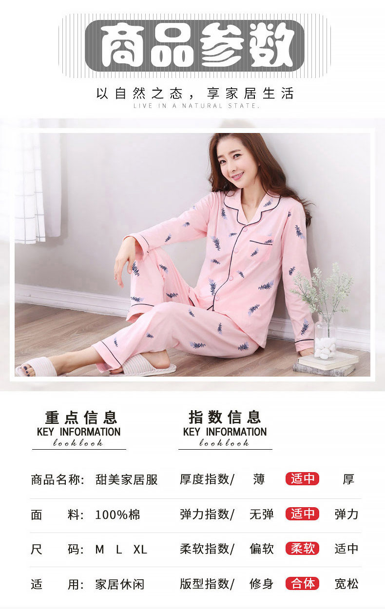 Пижама, хлопковый осенний лонгслив, тонкий комплект для отдыха для влюбленных