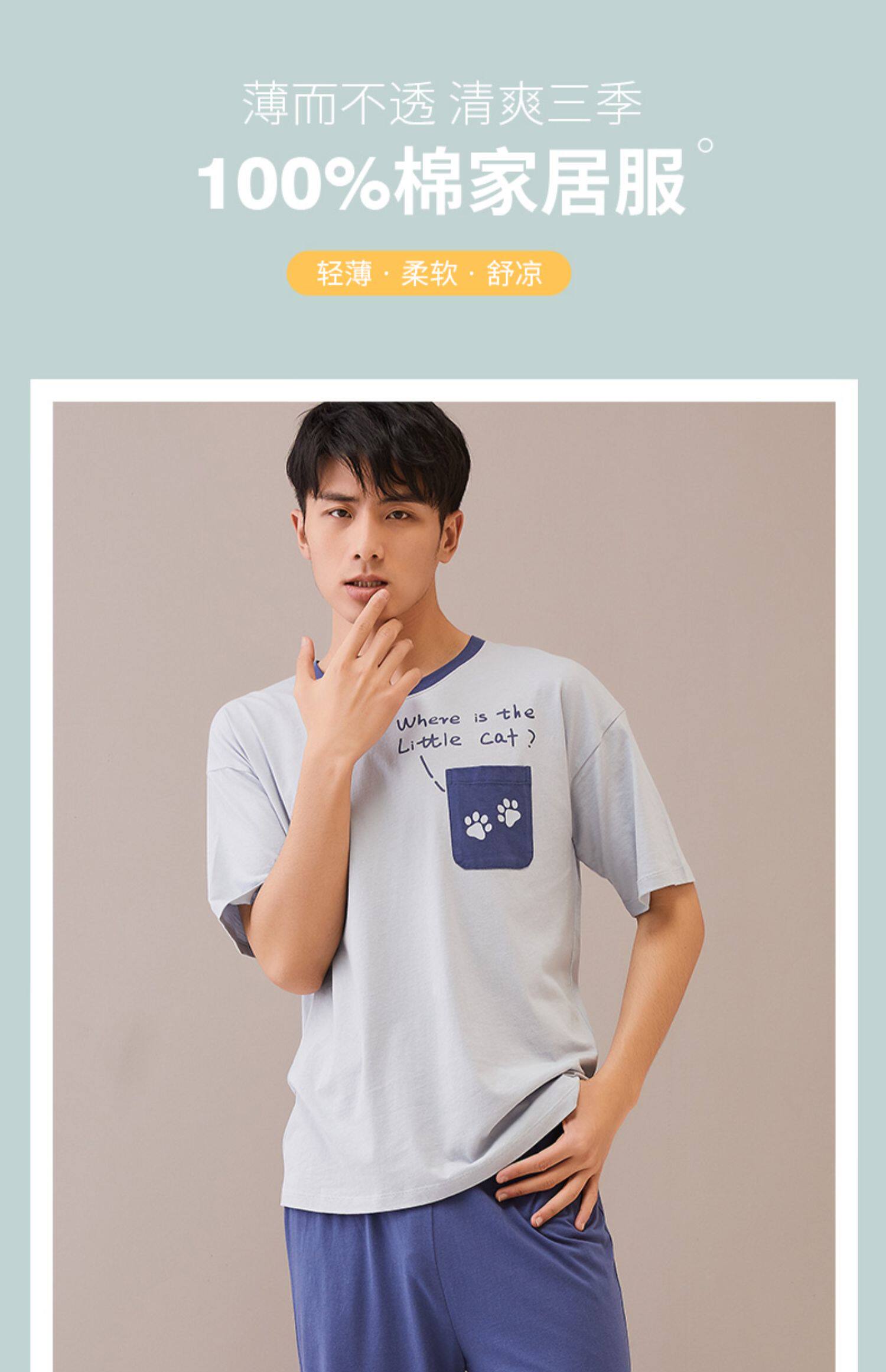 Шорты, тонкая хлопковая пижама, короткий рукав