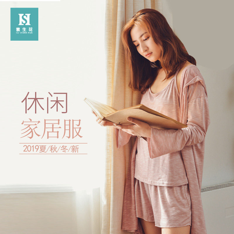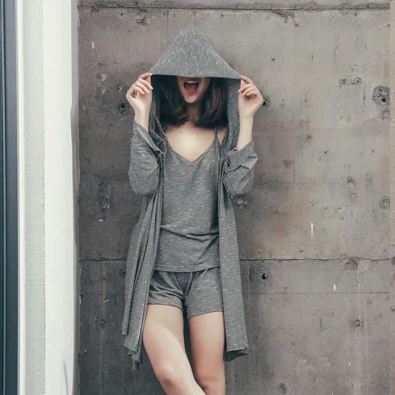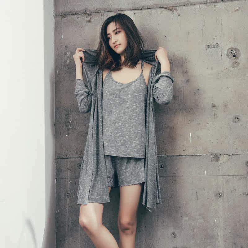 Трикотажная пижама, комплект, летний тонкий осенний банный халат для отдыха, 3 предмета, городской стиль