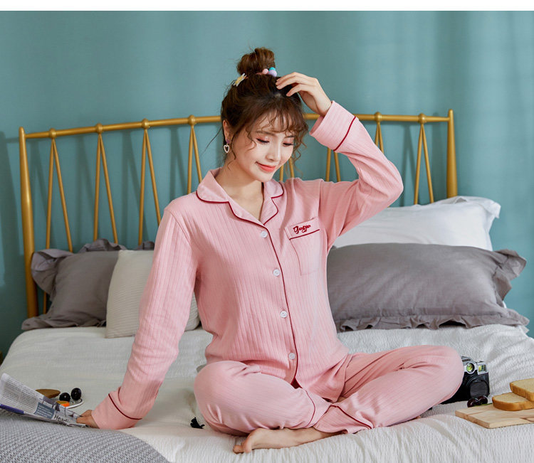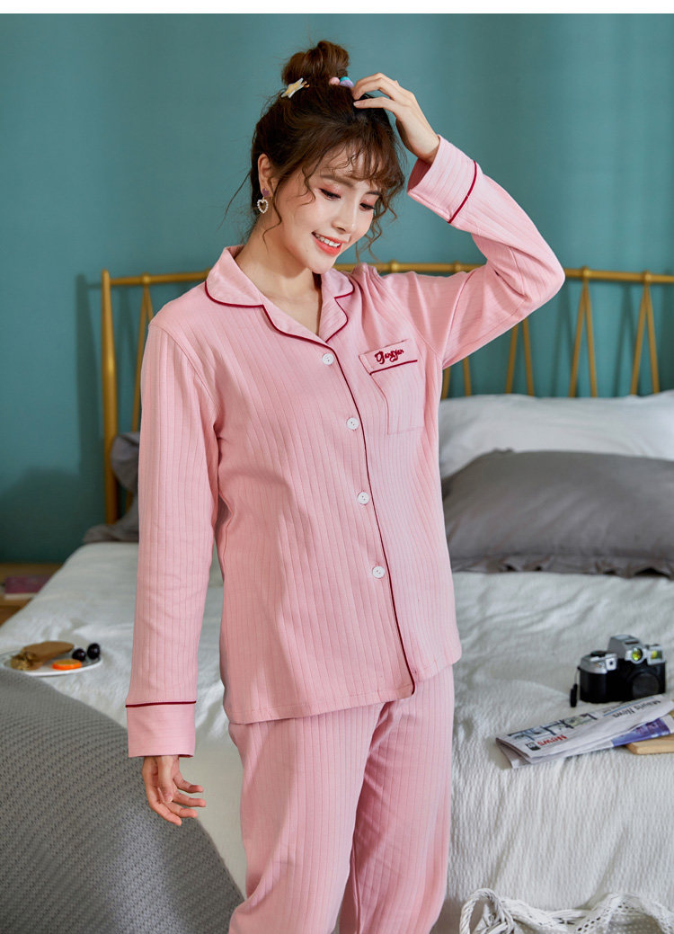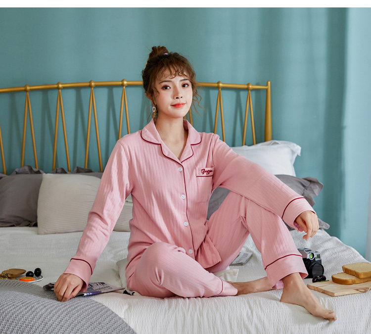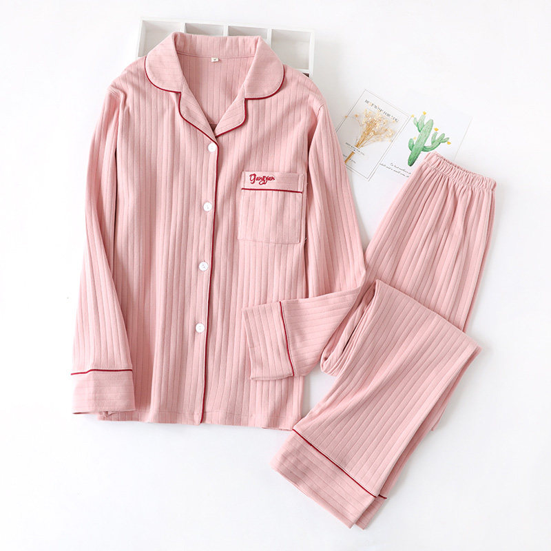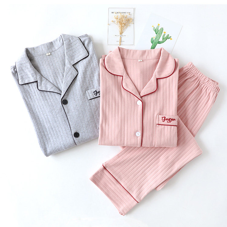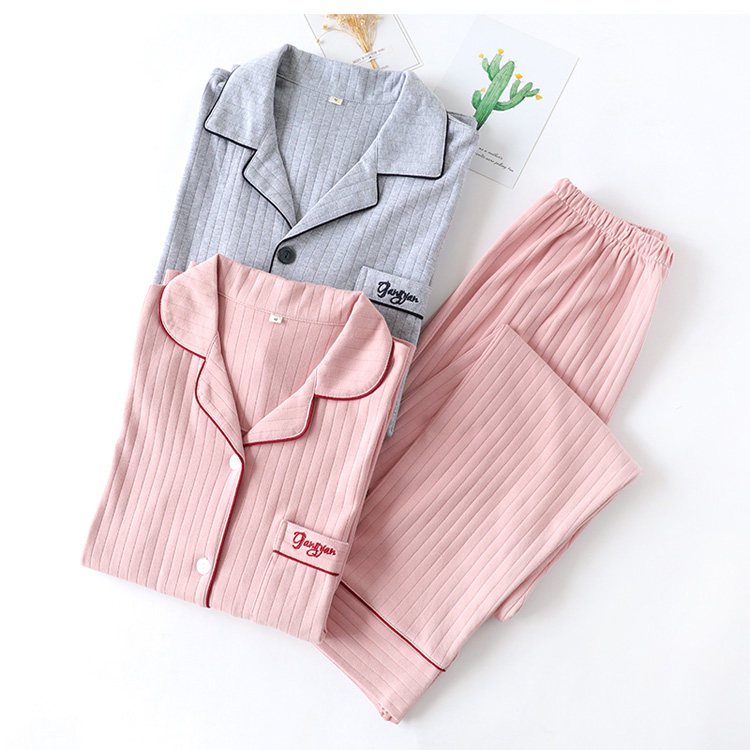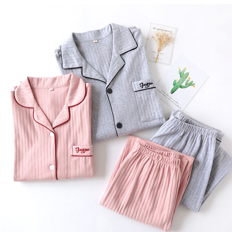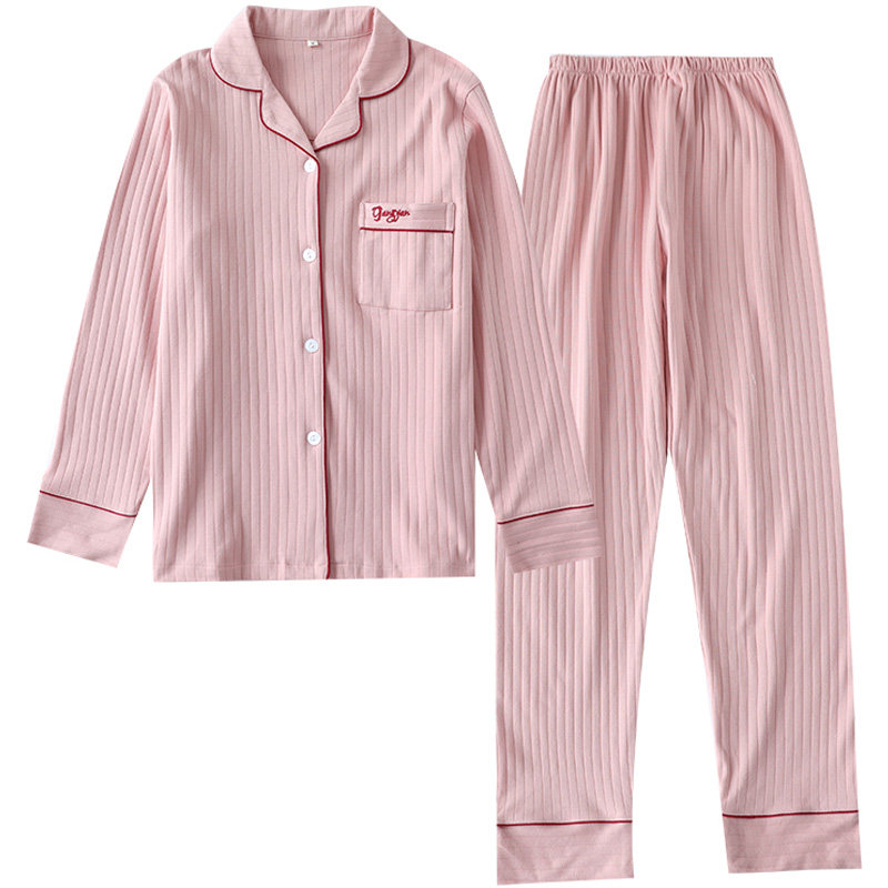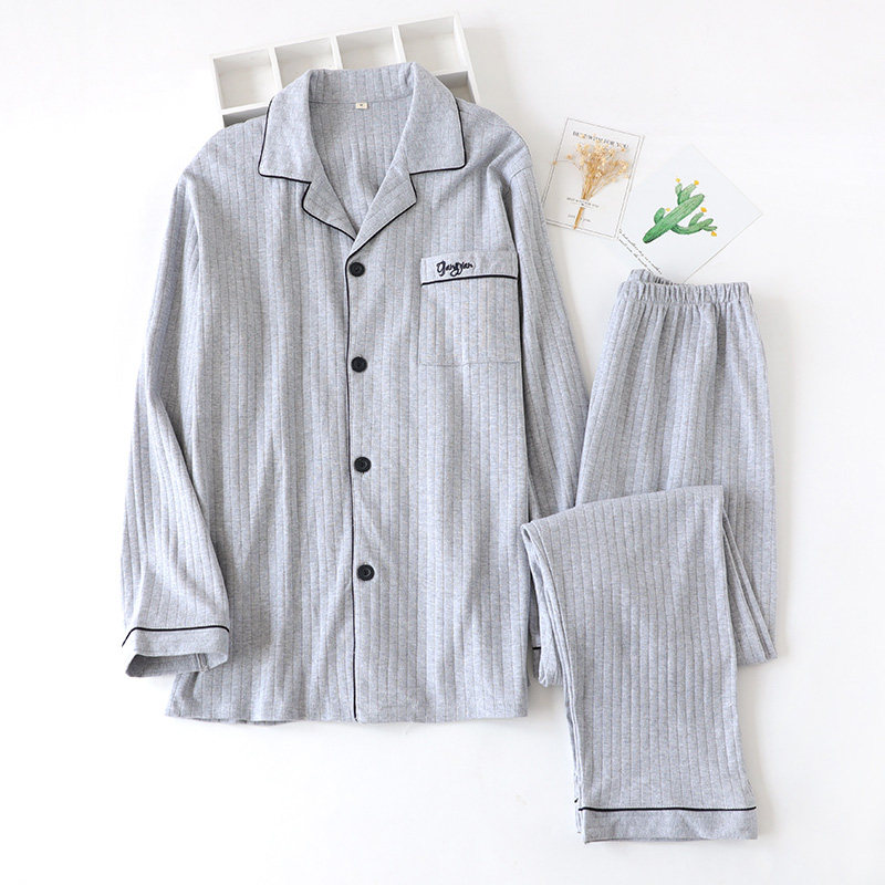 Хлопковая пижама, осенний хлопковый лонгслив, мужские штаны, комплект для отдыха, кардиган, для влюбленных, в корейском стиле