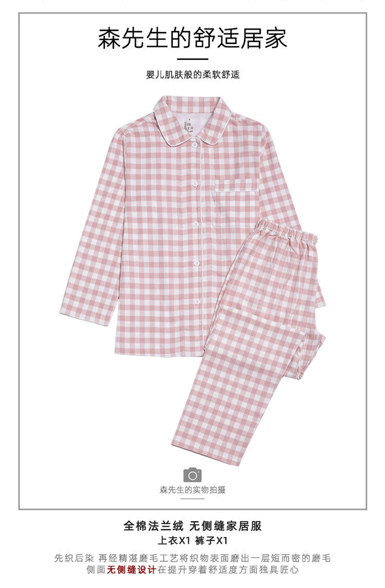 Хлопковая фланелевая пижама, лонгслив, осенний демисезонный комплект