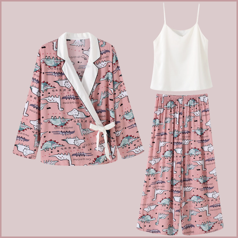Пижама, комплект, милый японский динозавр, хлопковое японское ханьфу, 3 предмета