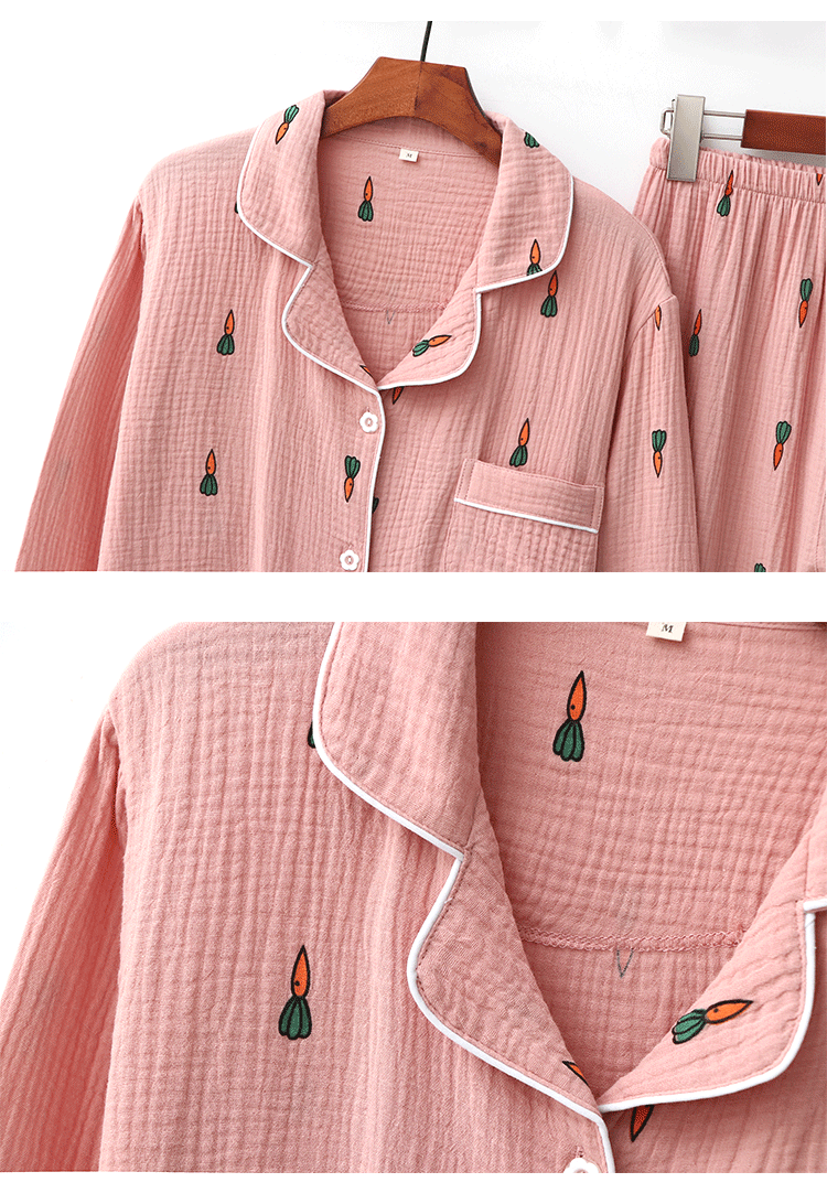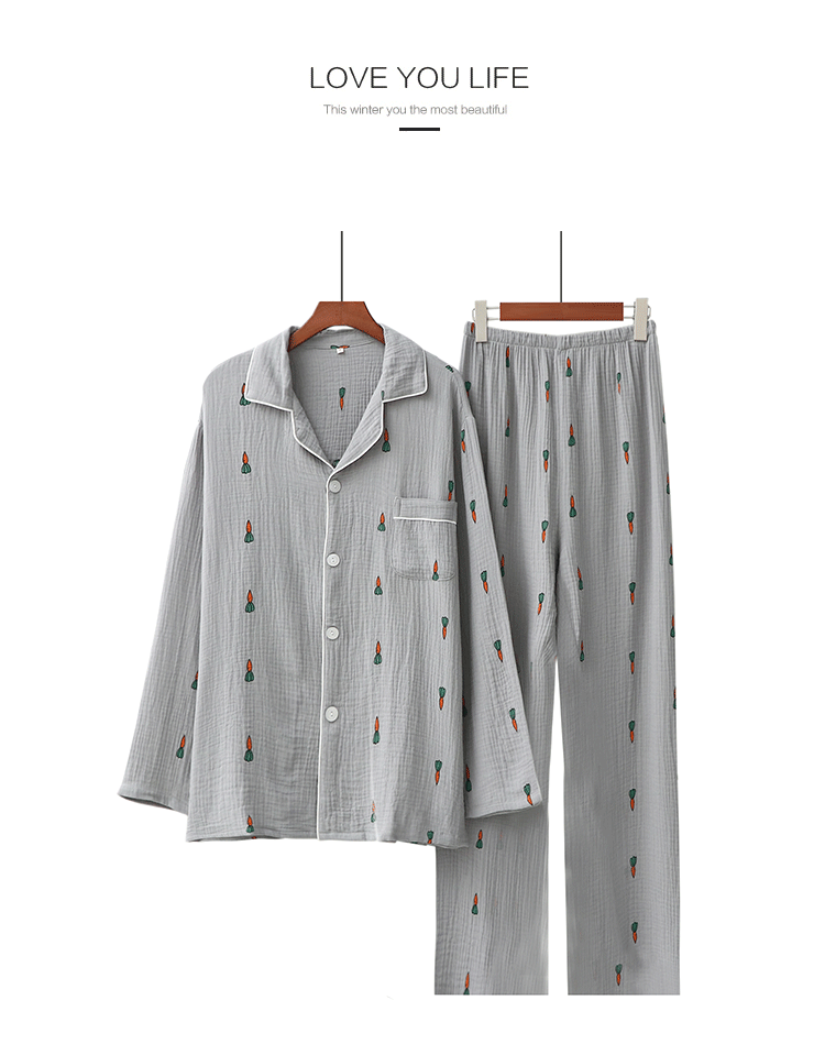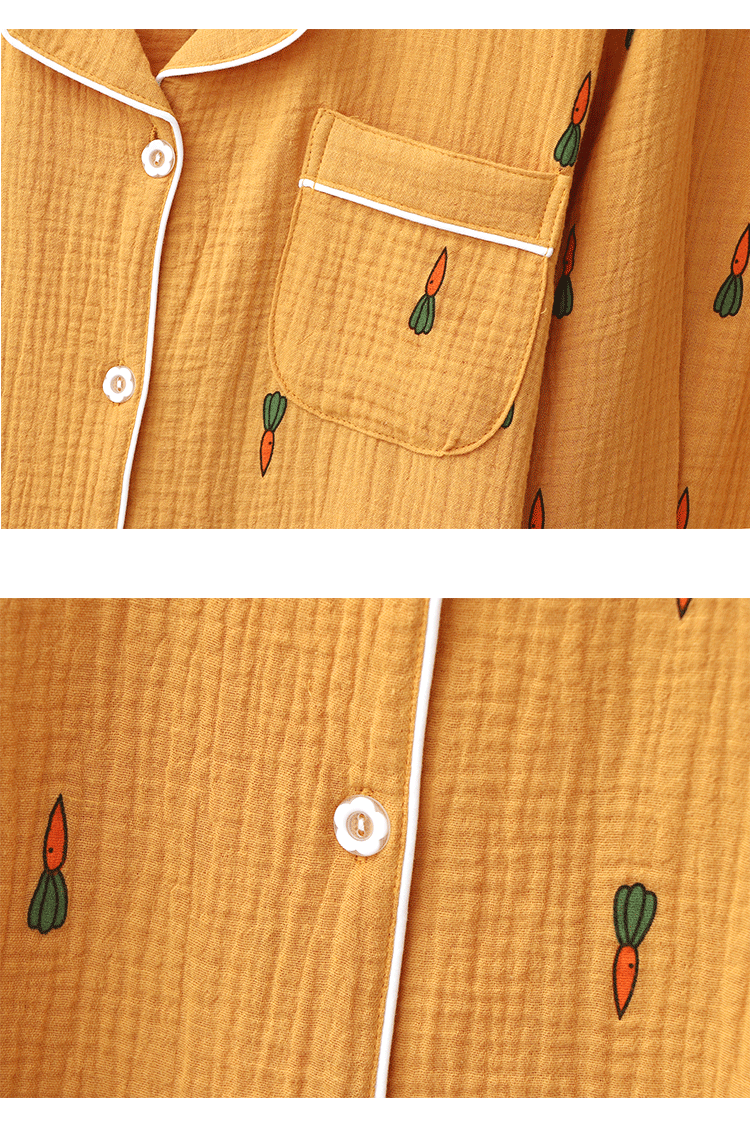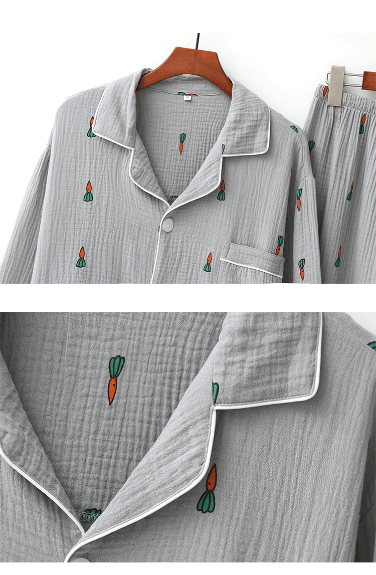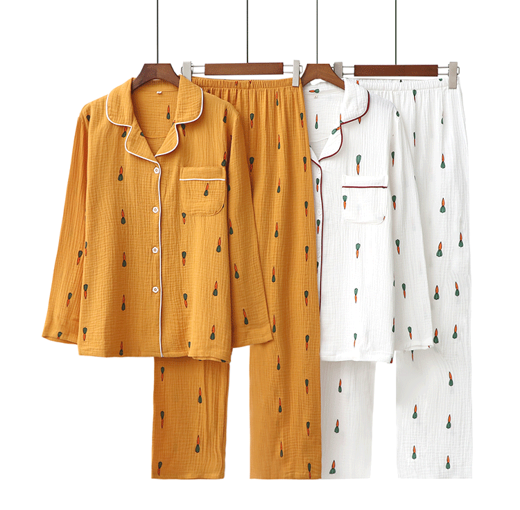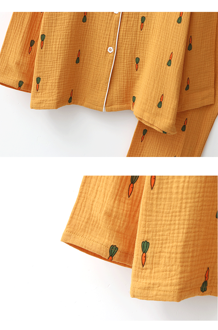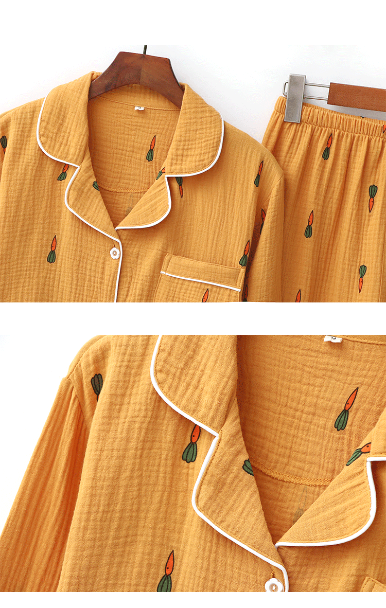Морковная японская осенняя демисезонная пижама подходит для мужчин и женщин, хлопковый марлевый лонгслив, комплект, для влюбленных
