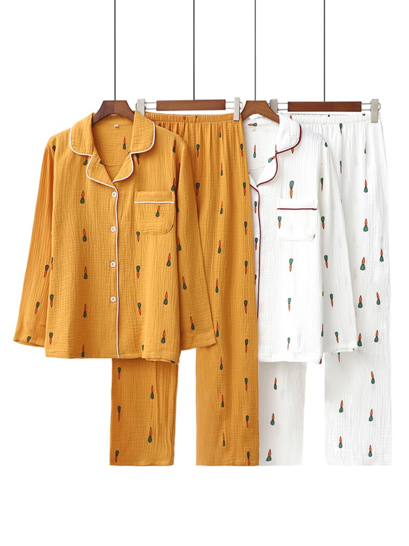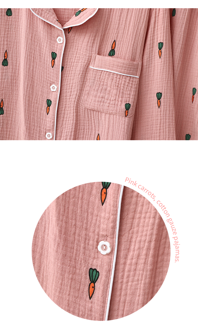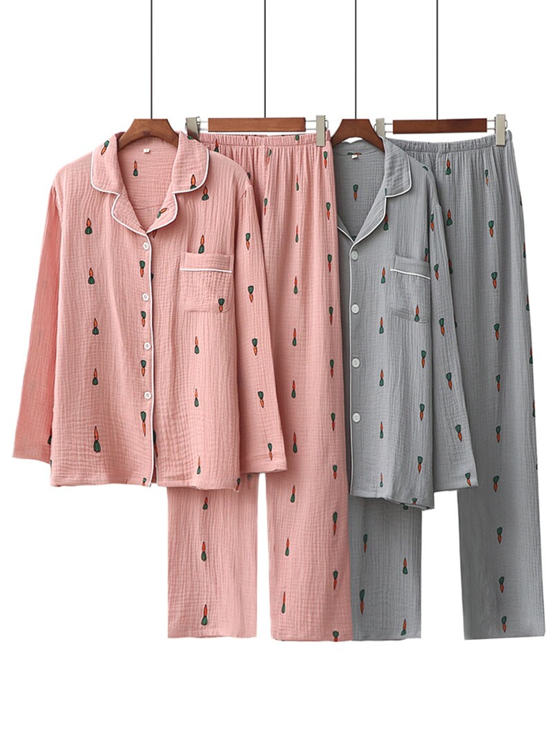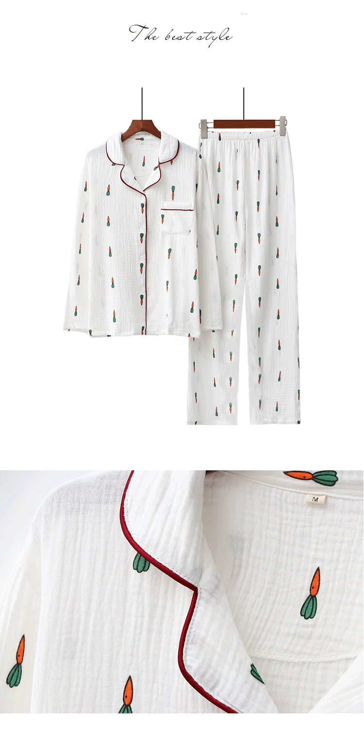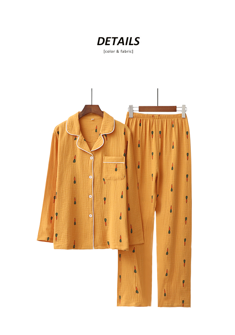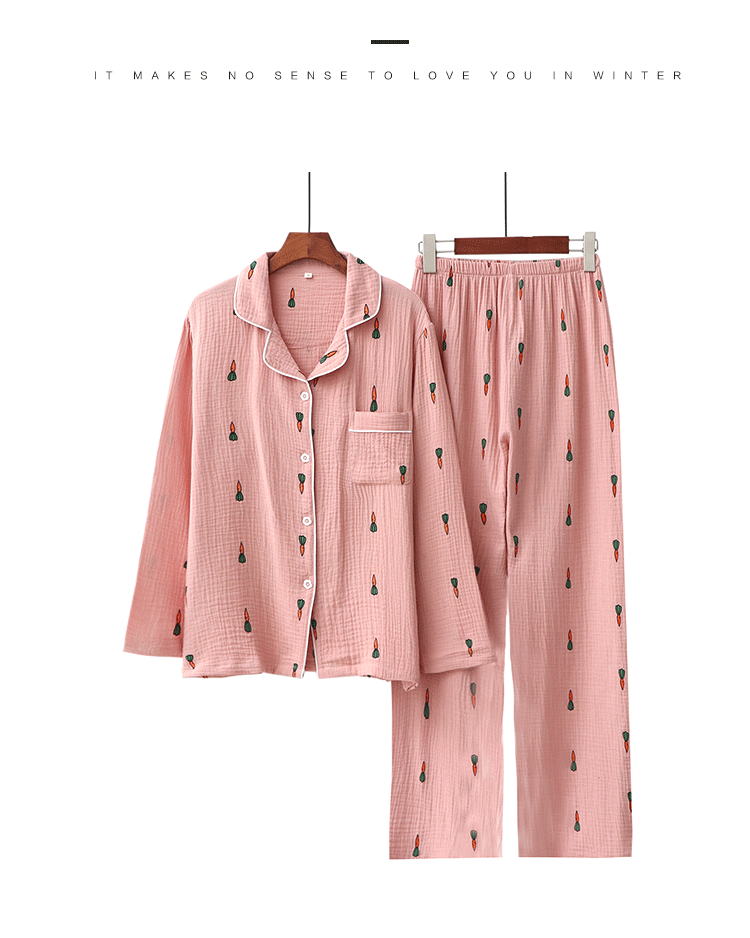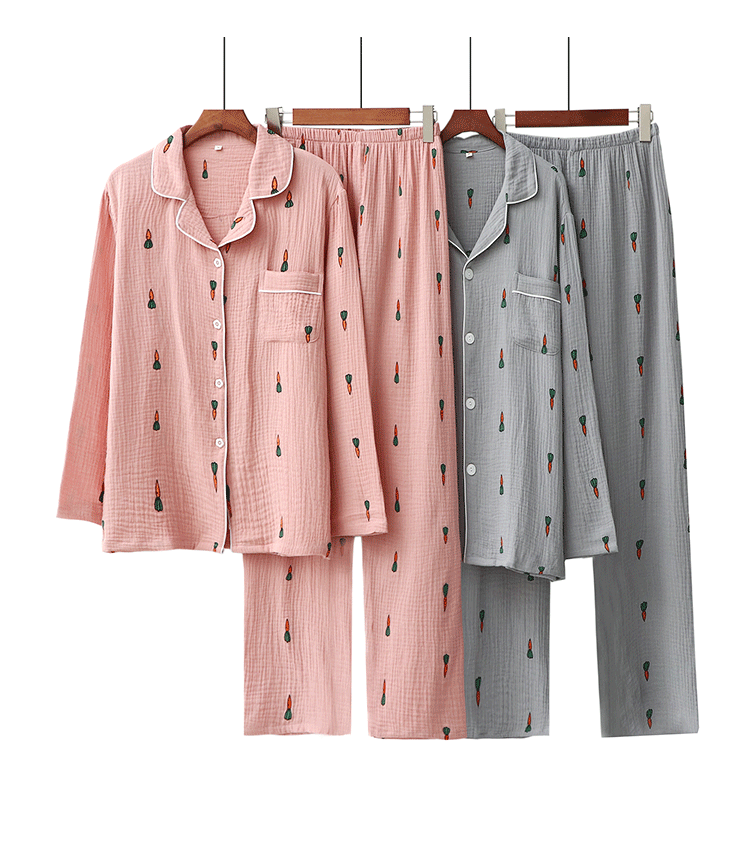 Морковная японская осенняя демисезонная пижама подходит для мужчин и женщин, хлопковый марлевый лонгслив, комплект, для влюбленных