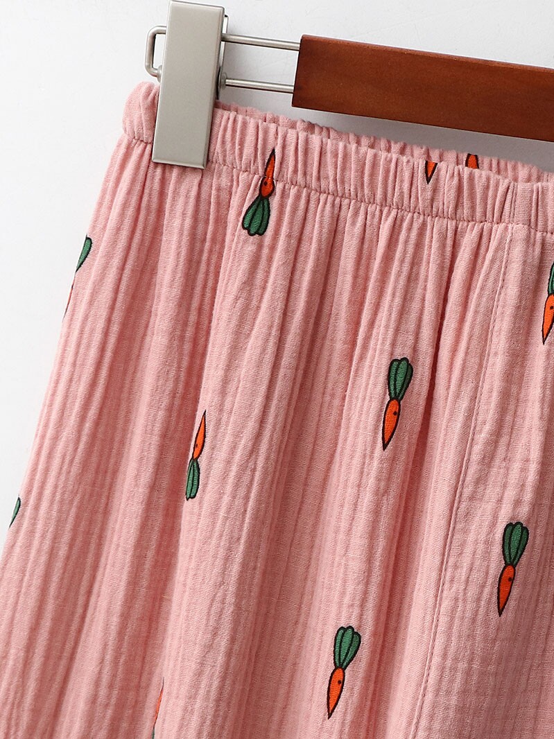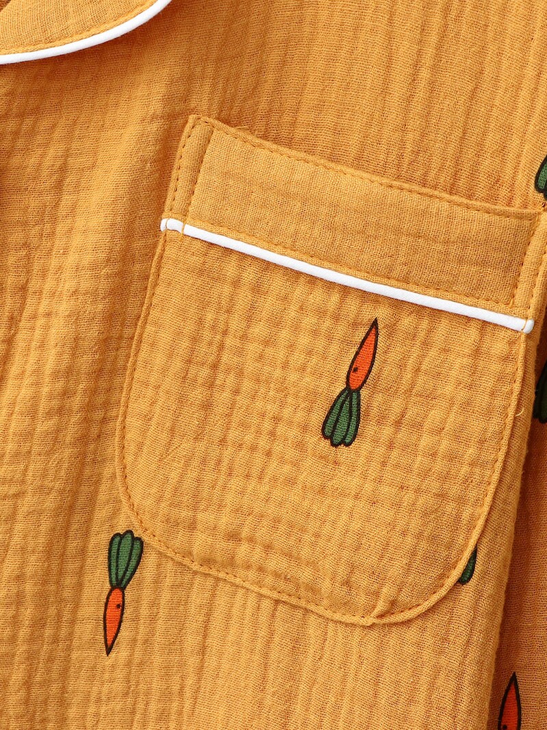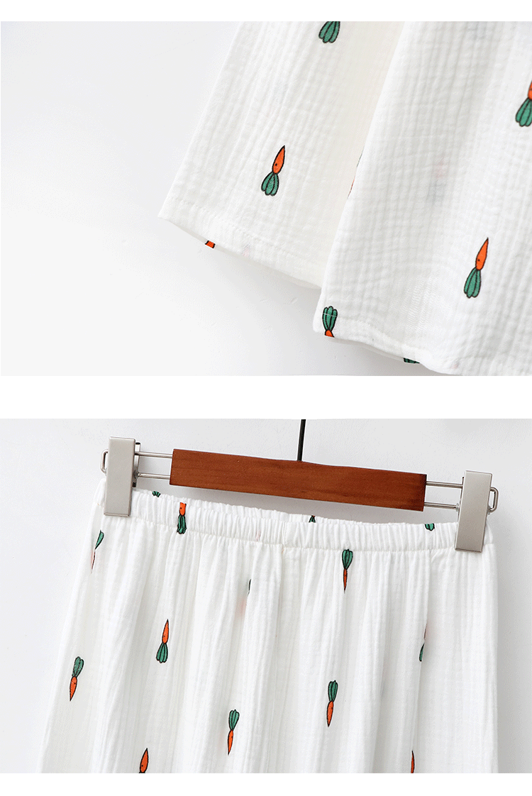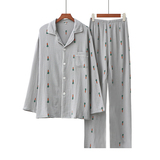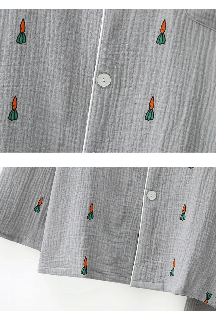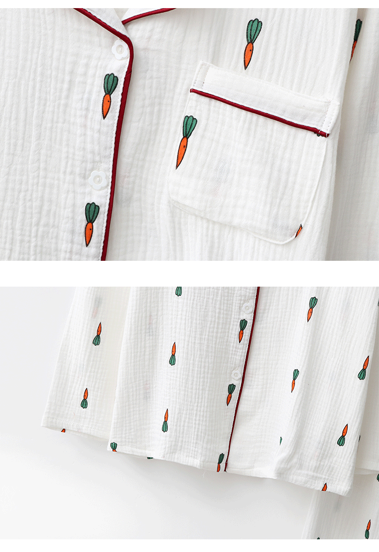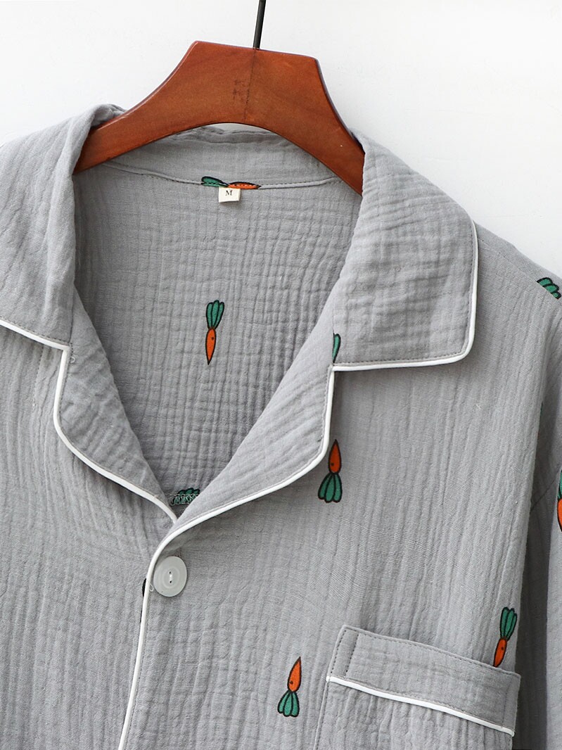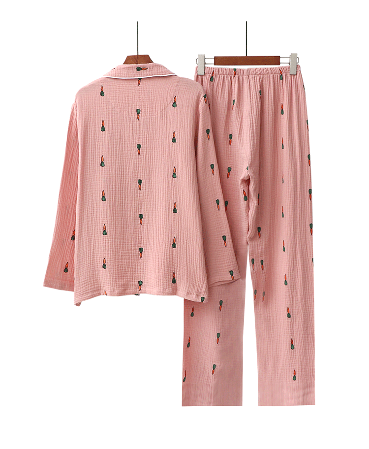 Морковная японская осенняя демисезонная пижама подходит для мужчин и женщин, хлопковый марлевый лонгслив, комплект, для влюбленных