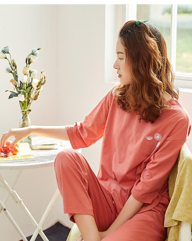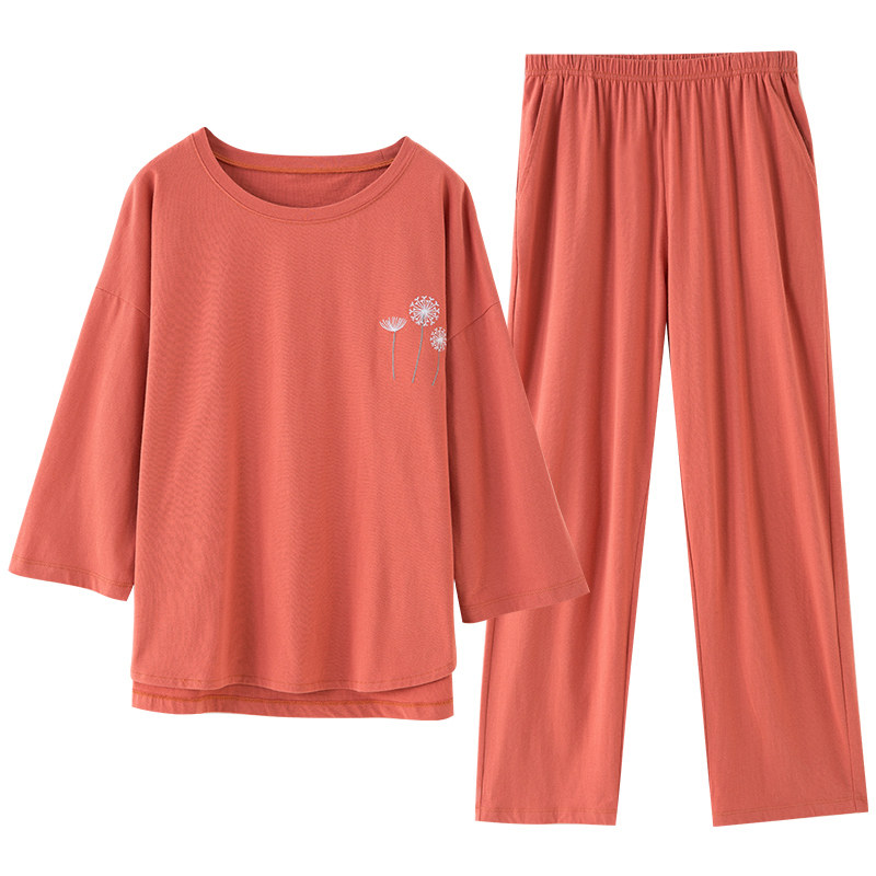 Красная пижама, хлопковый летний комплект, штаны, цветочные композиции, 100% хлопок
