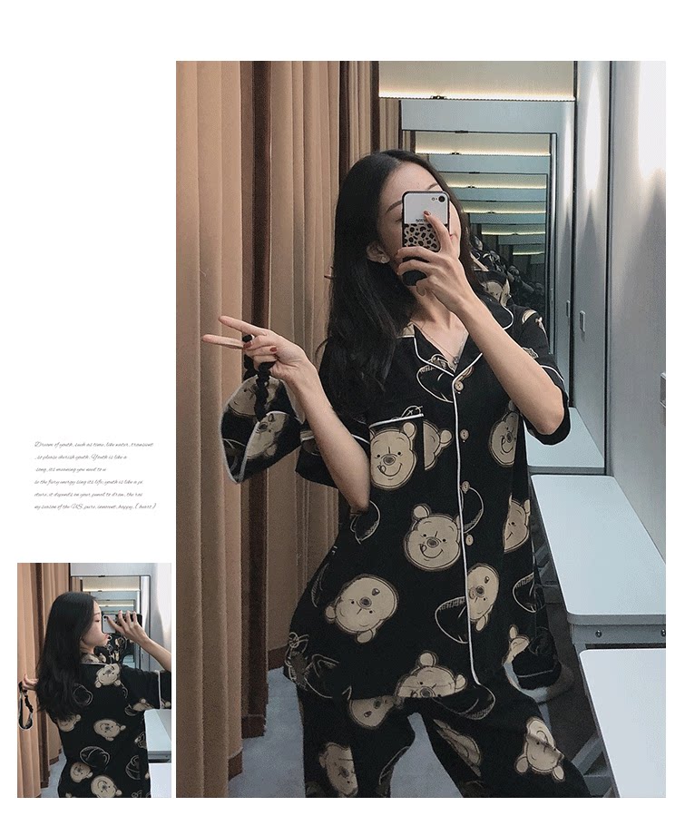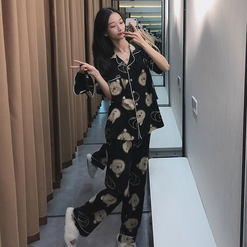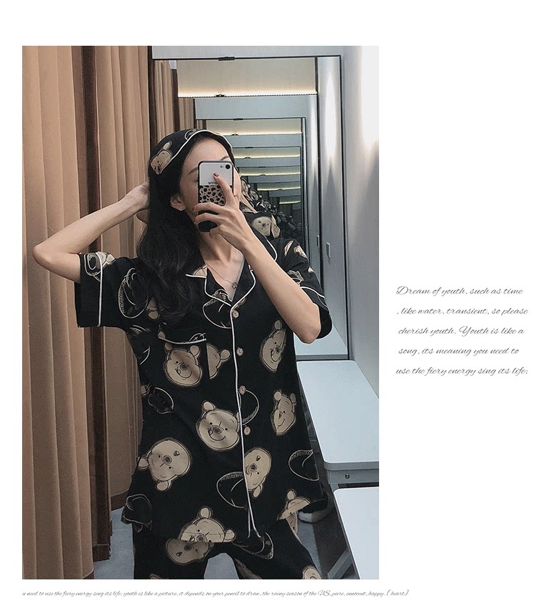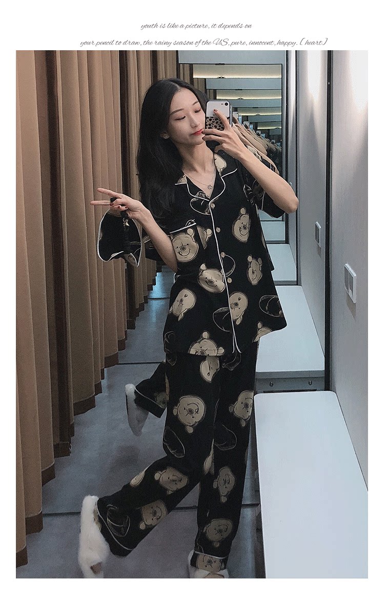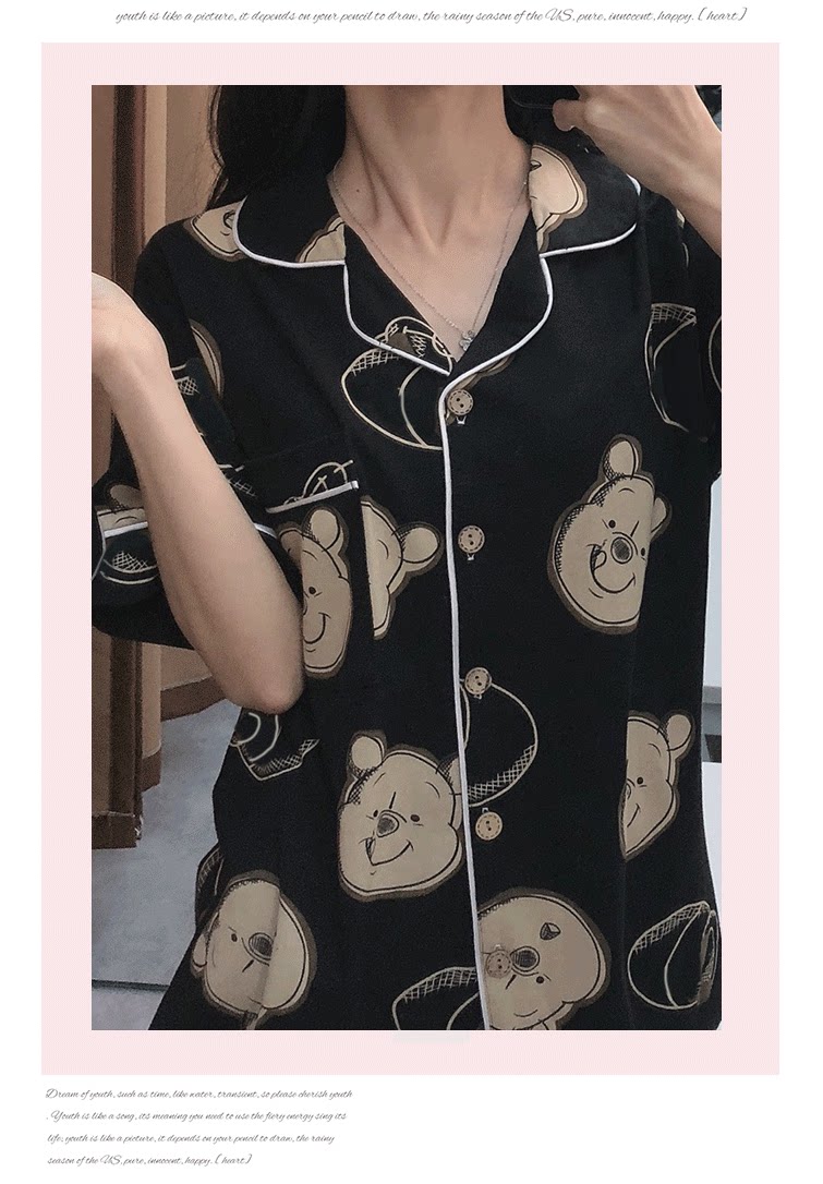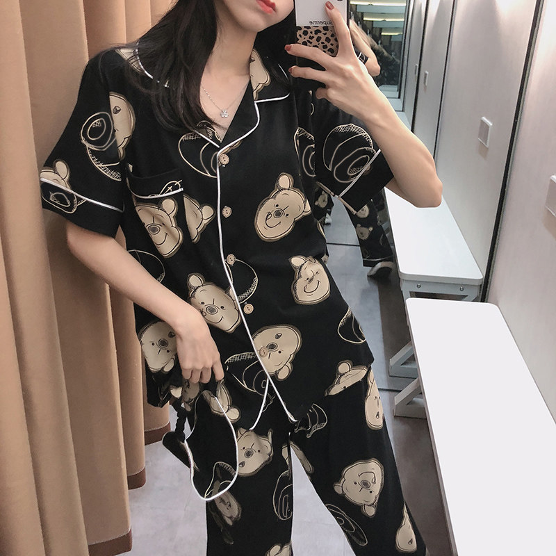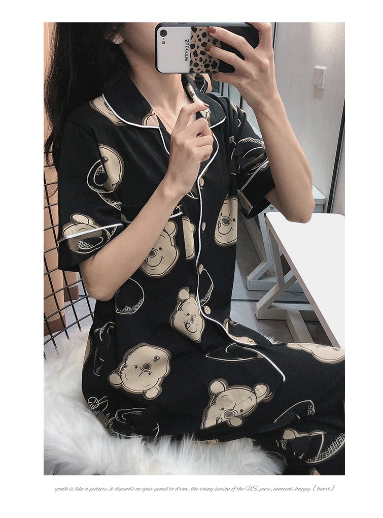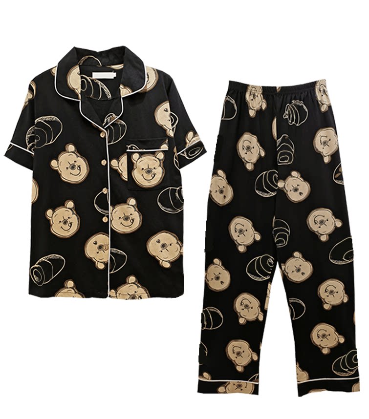 Осенняя летняя хлопковая пижама, тонкие милые штаны, с медвежатами, для влюбленных, короткий рукав