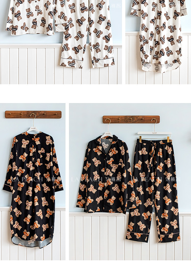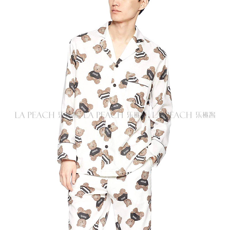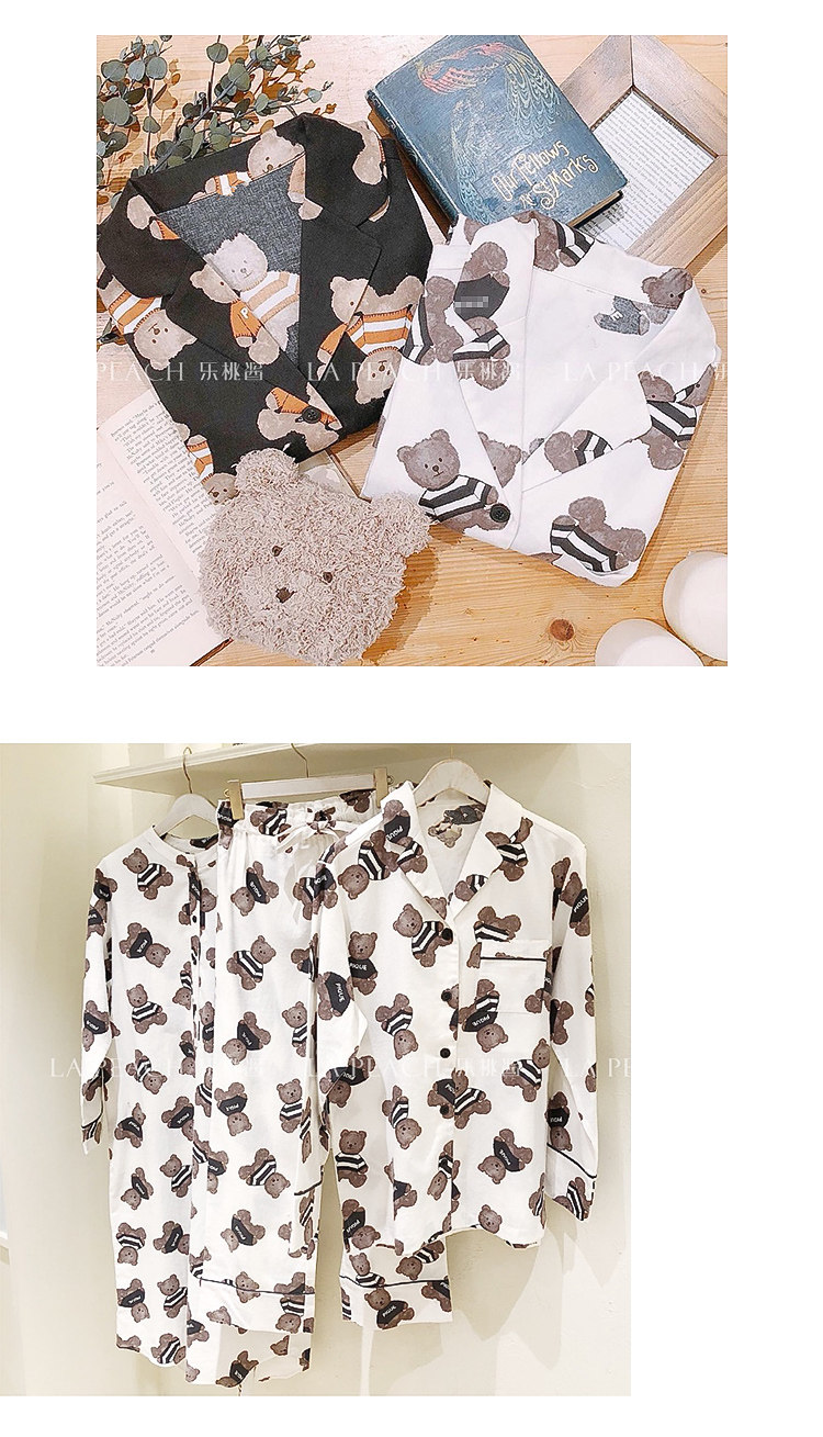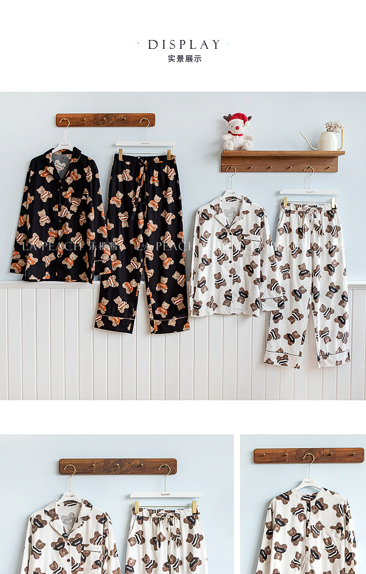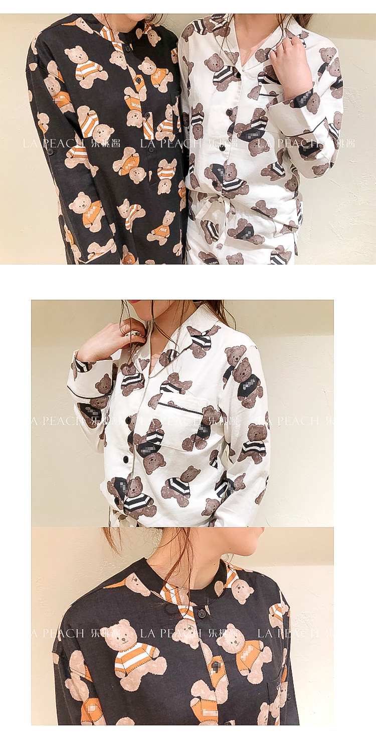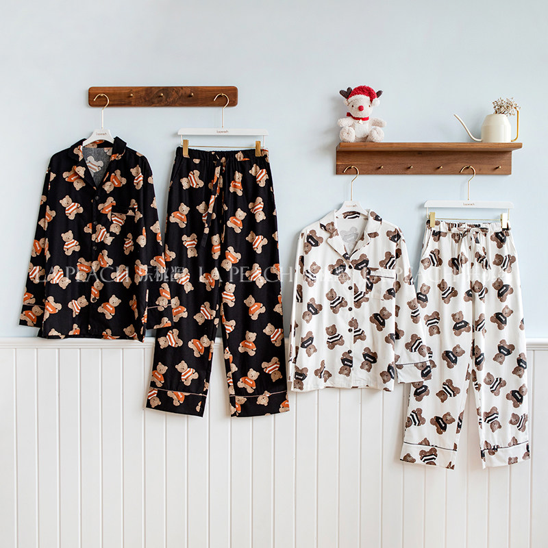 Японская милая хлопковая пижама, мультяшный комплект, для влюбленных, с медвежатами