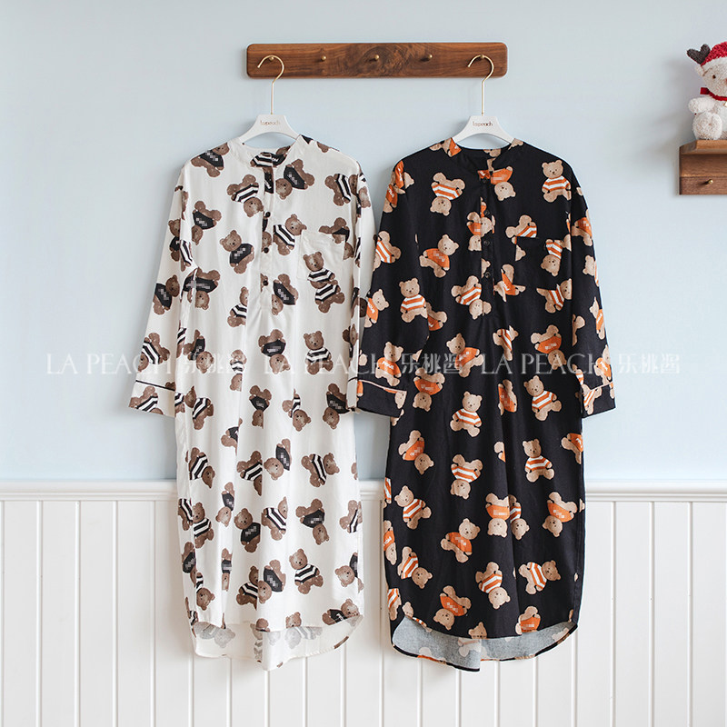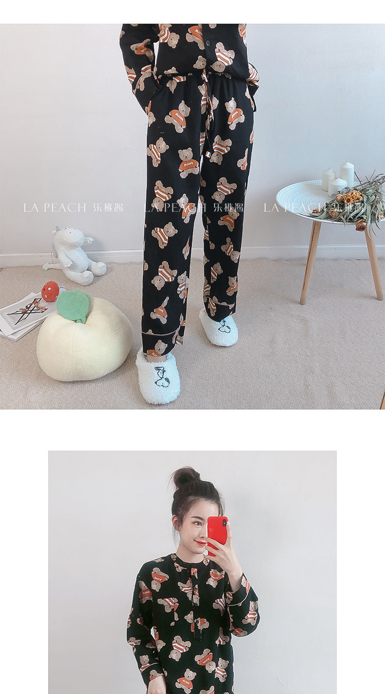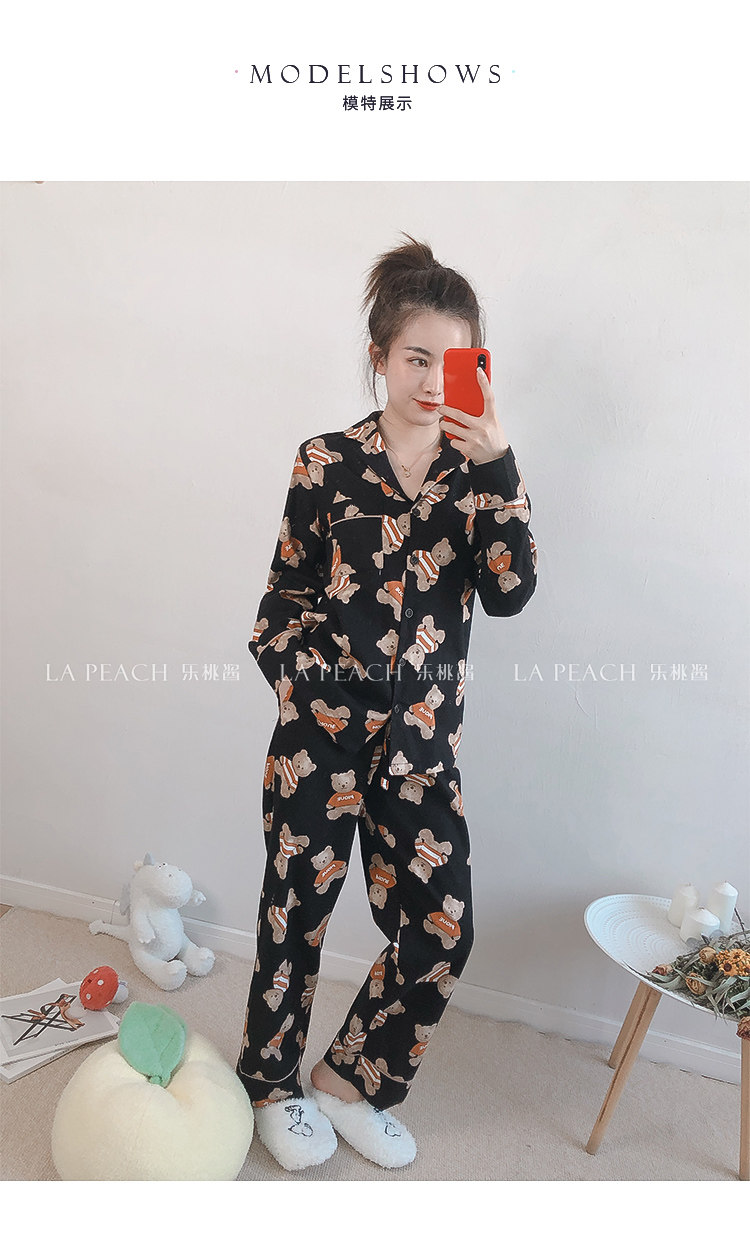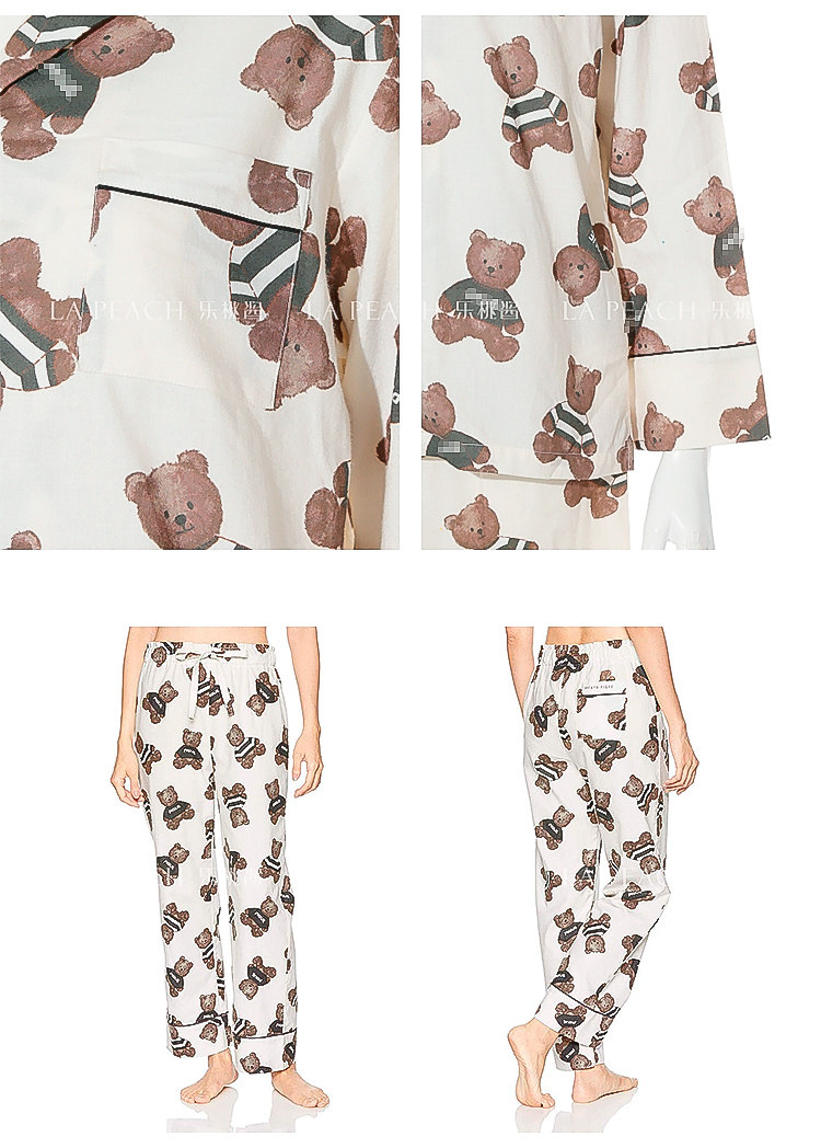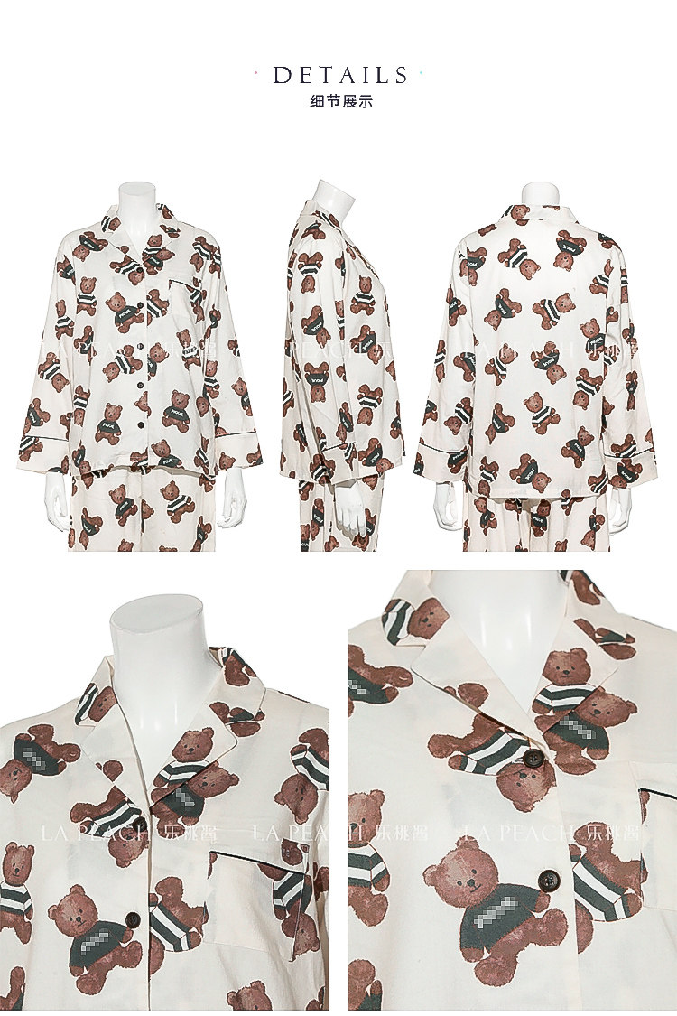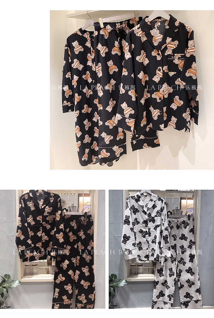 Японская милая хлопковая пижама, мультяшный комплект, для влюбленных, с медвежатами
