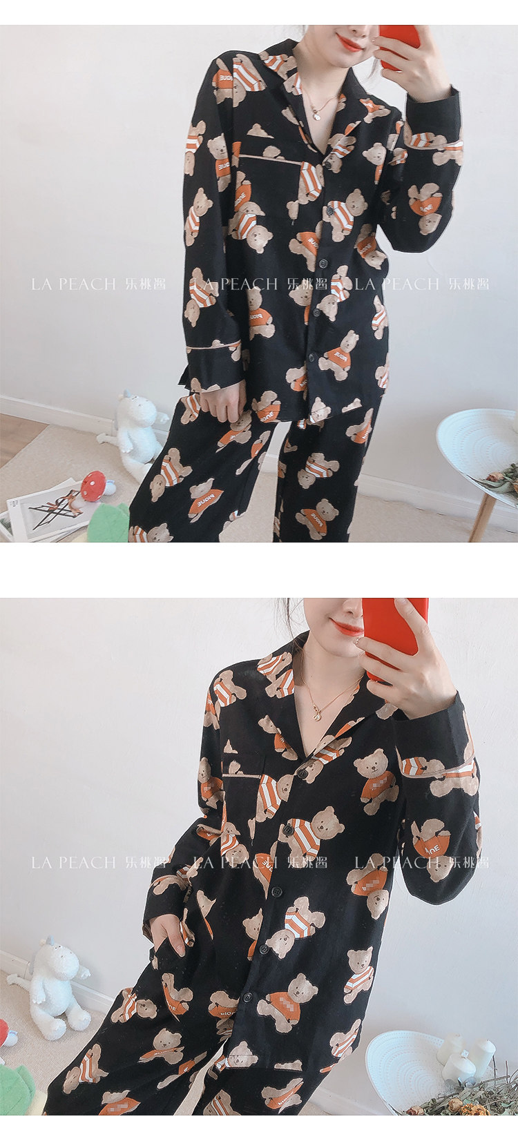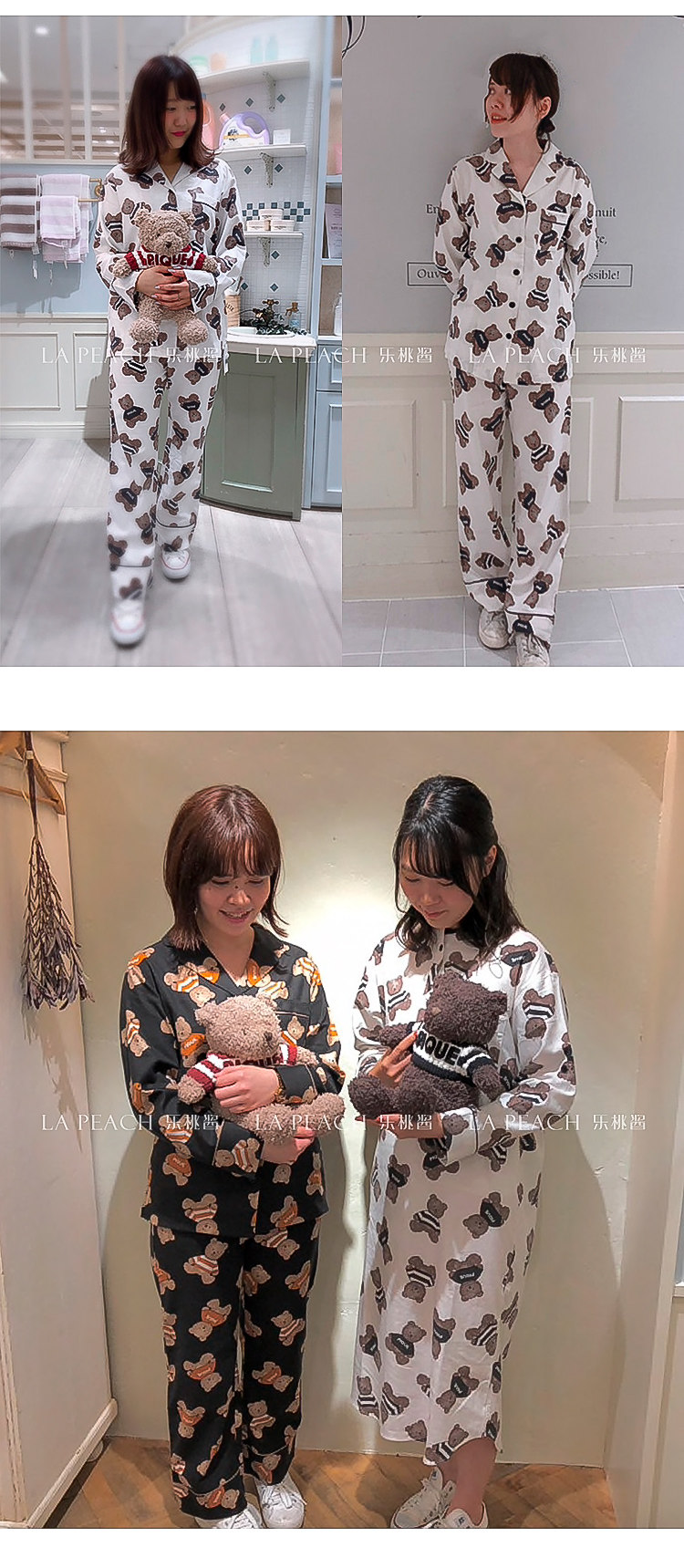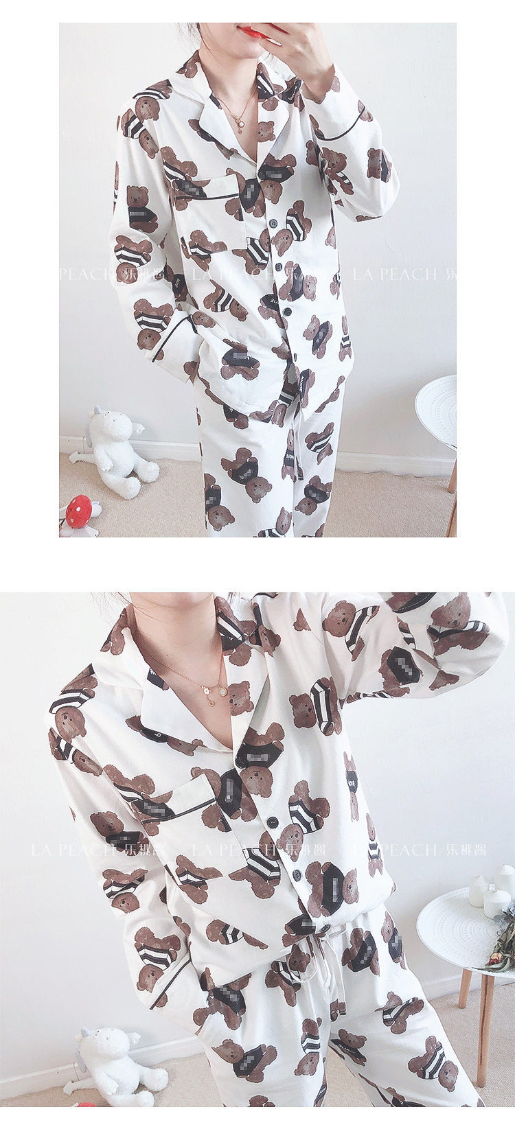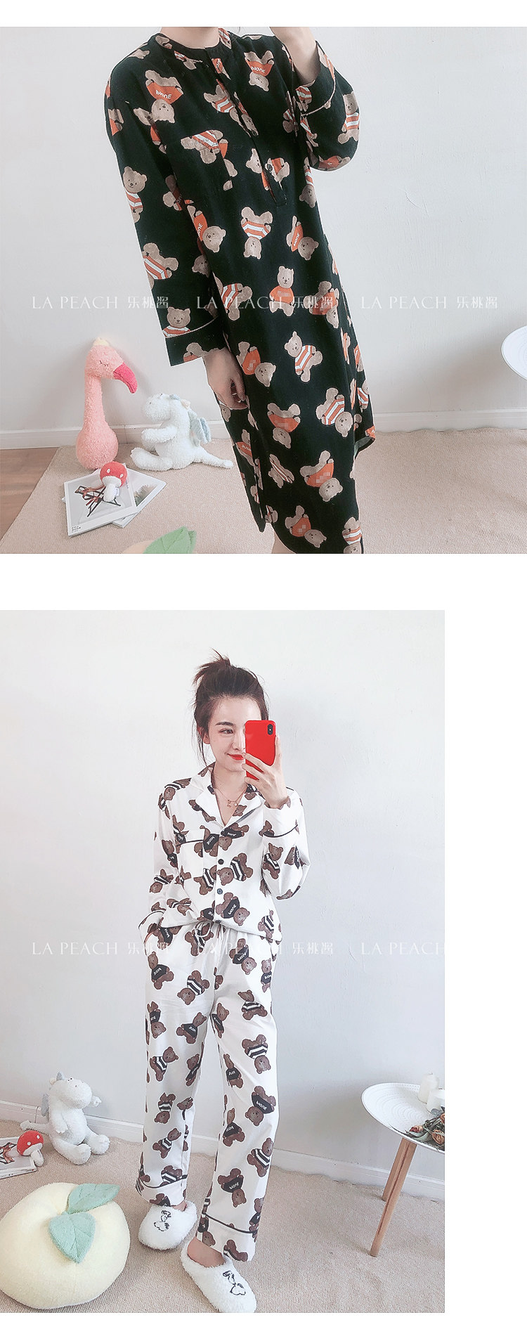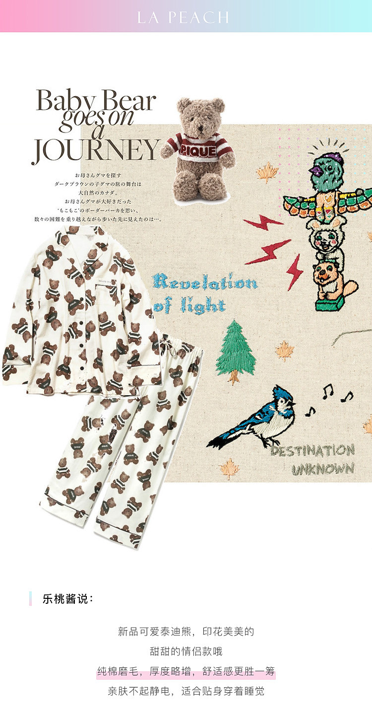 Японская милая хлопковая пижама, мультяшный комплект, для влюбленных, с медвежатами