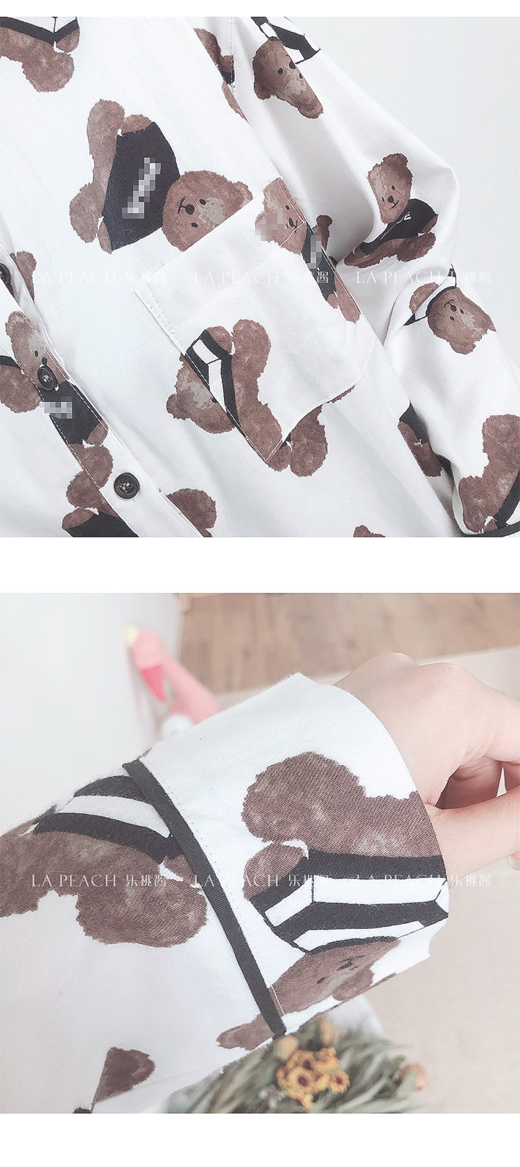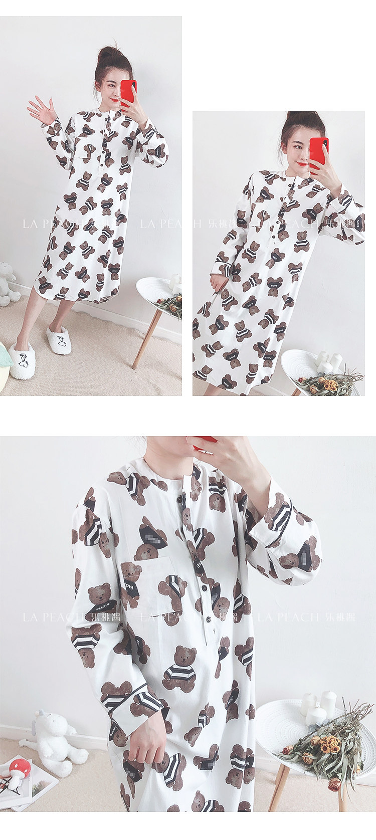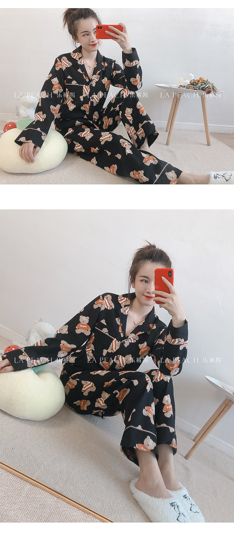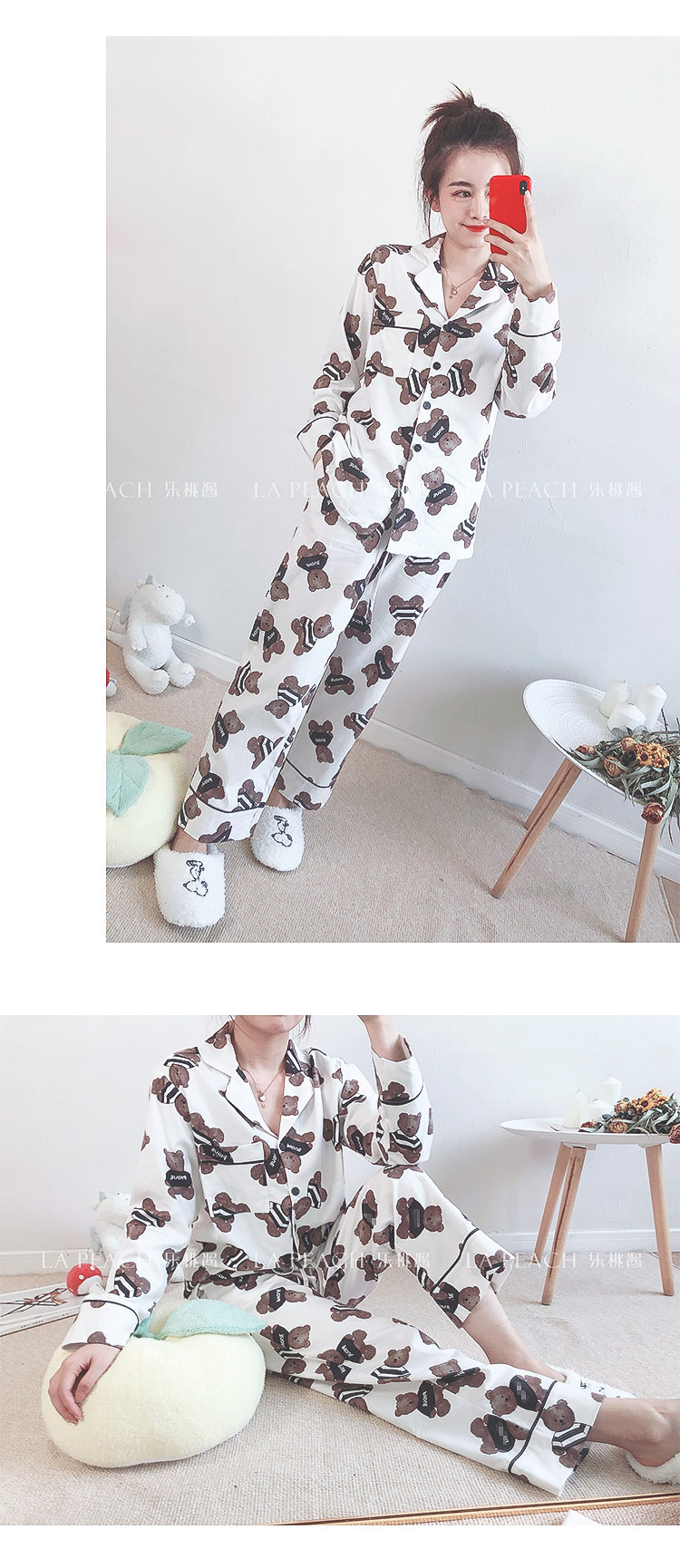 Японская милая хлопковая пижама, мультяшный комплект, для влюбленных, с медвежатами