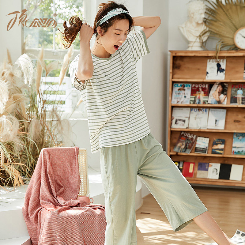 Пижама, комплект, хлопковые ультратонкие штаны, короткий рукав