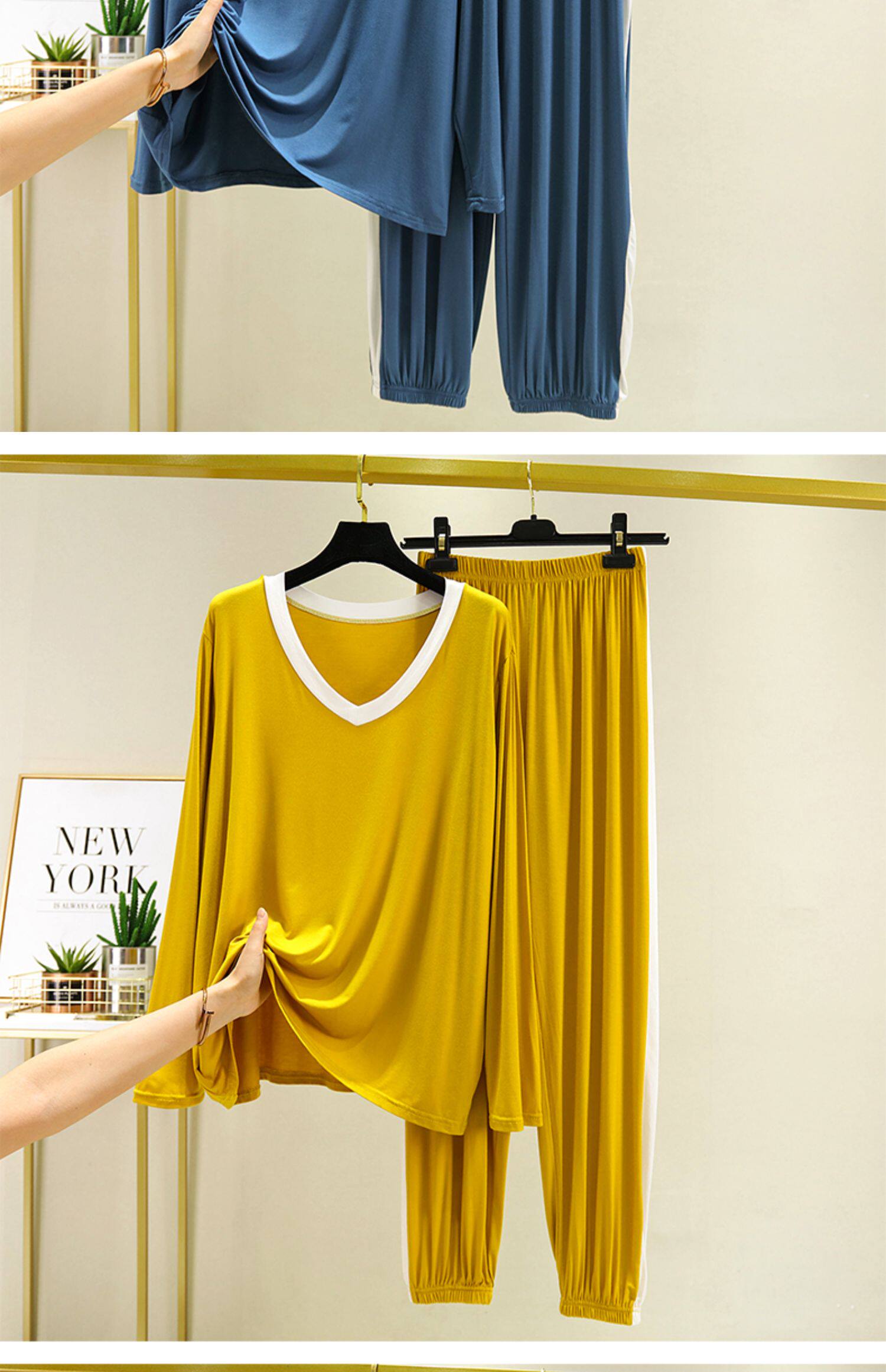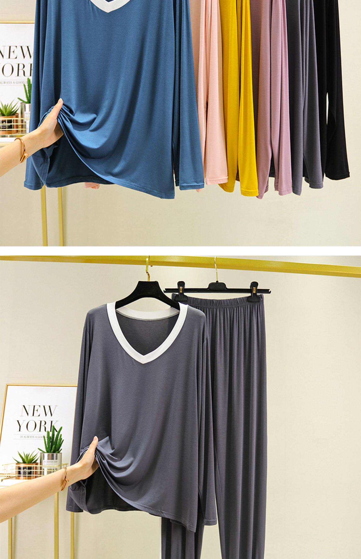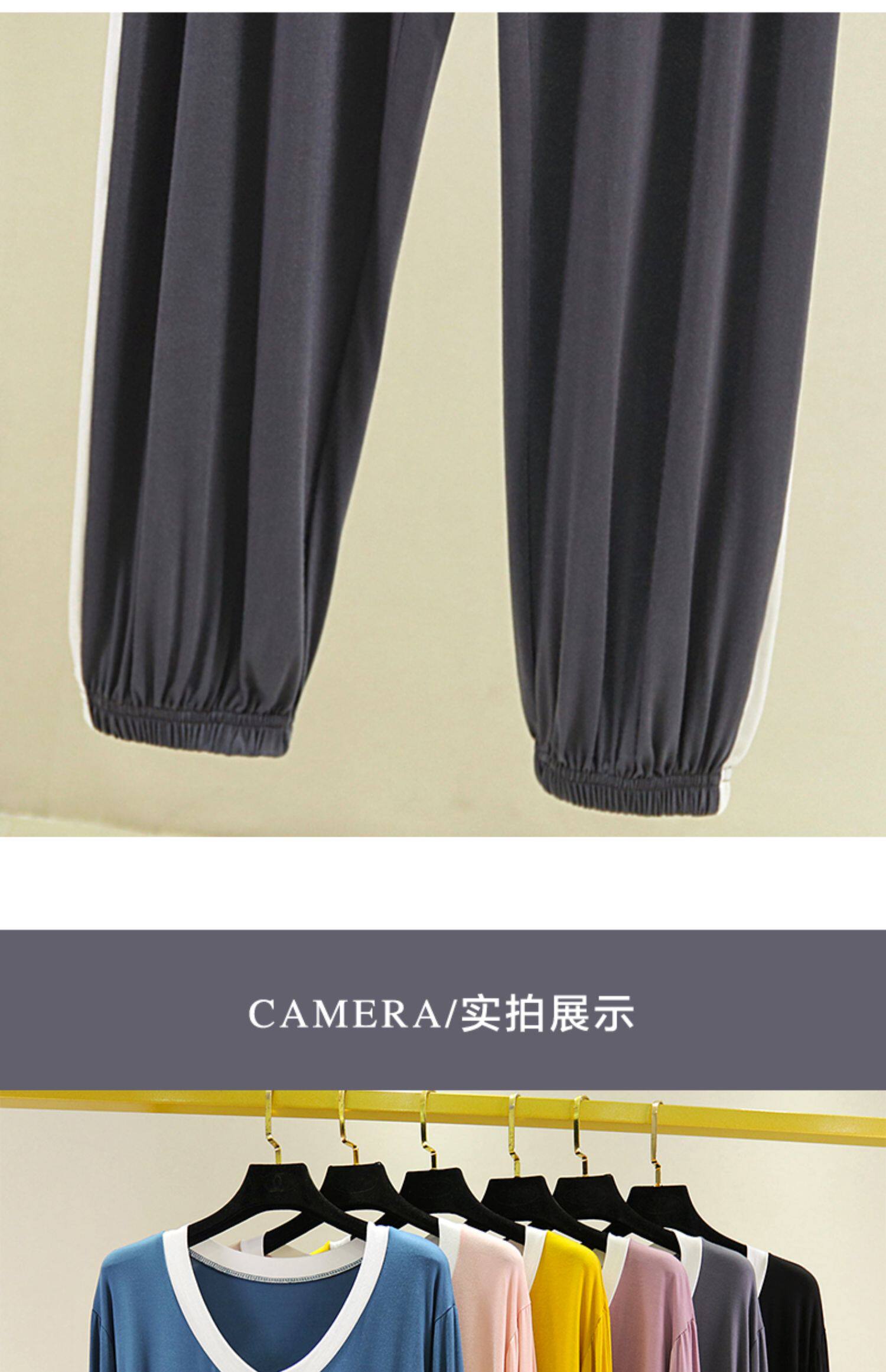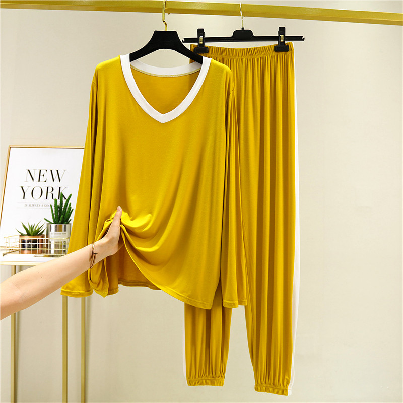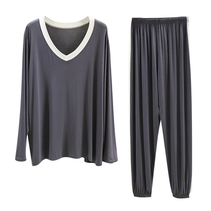 Пижама для отдыха, комплект, тонкий лонгслив, футболка, штаны, V-образный вырез