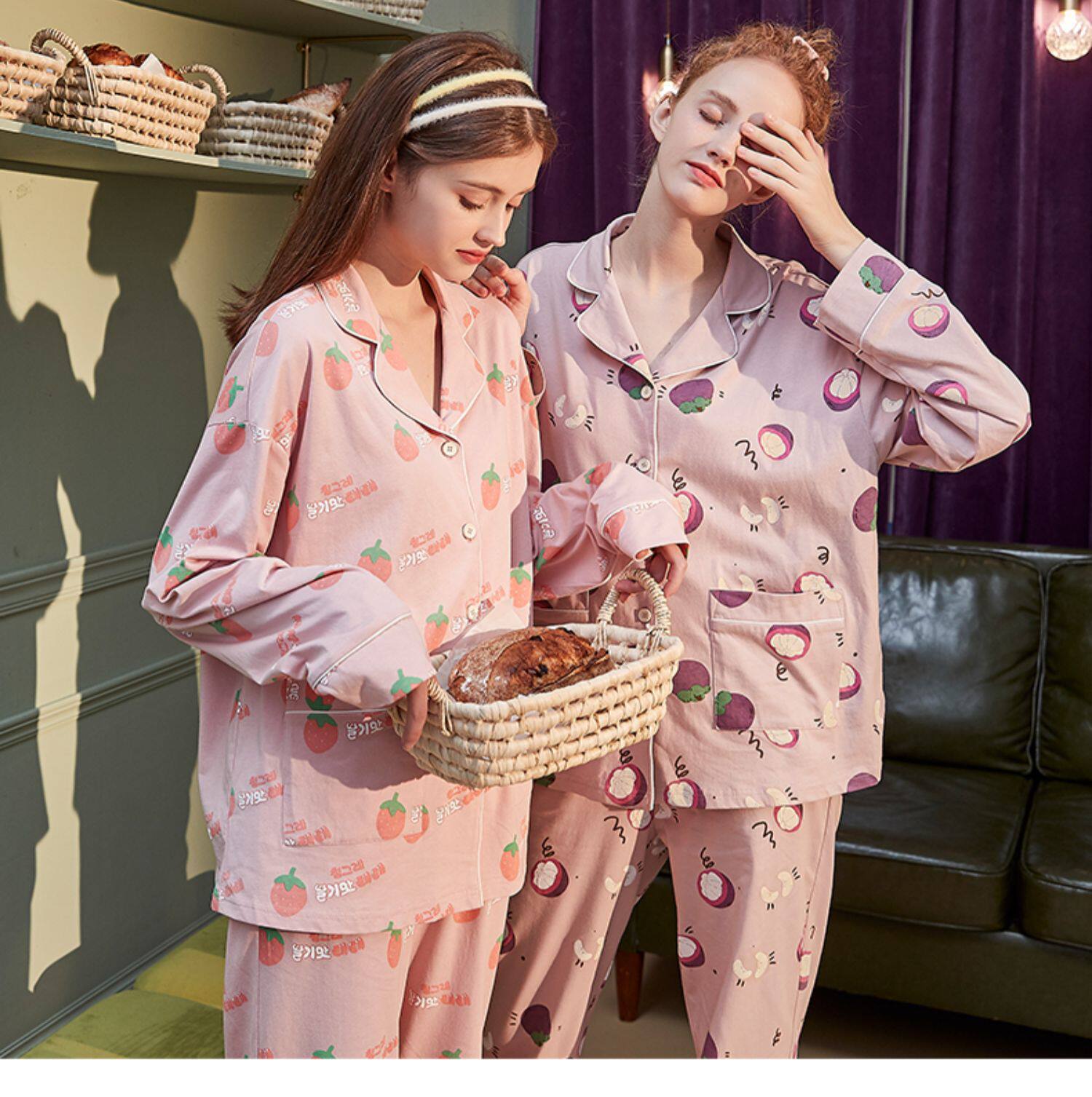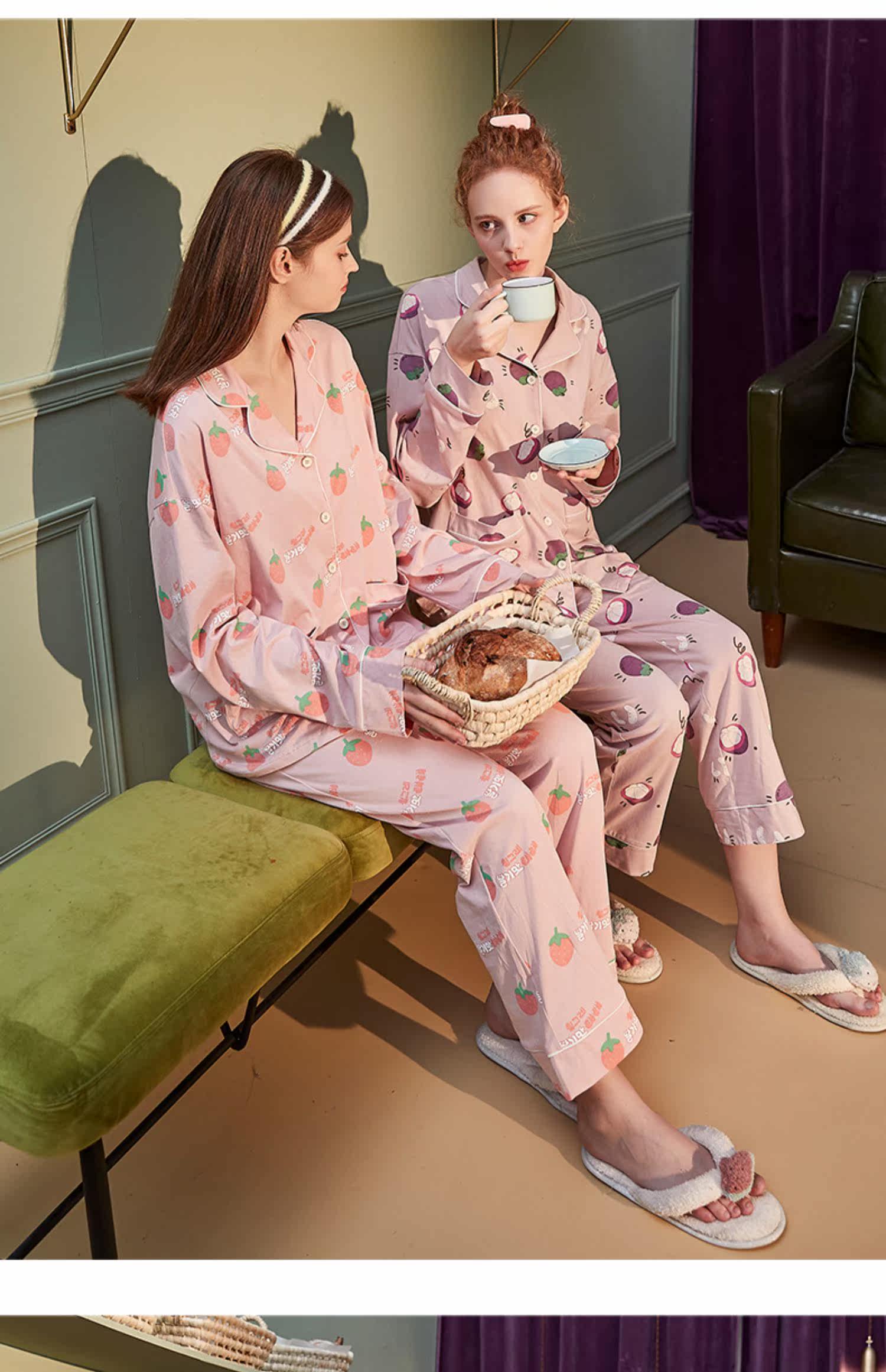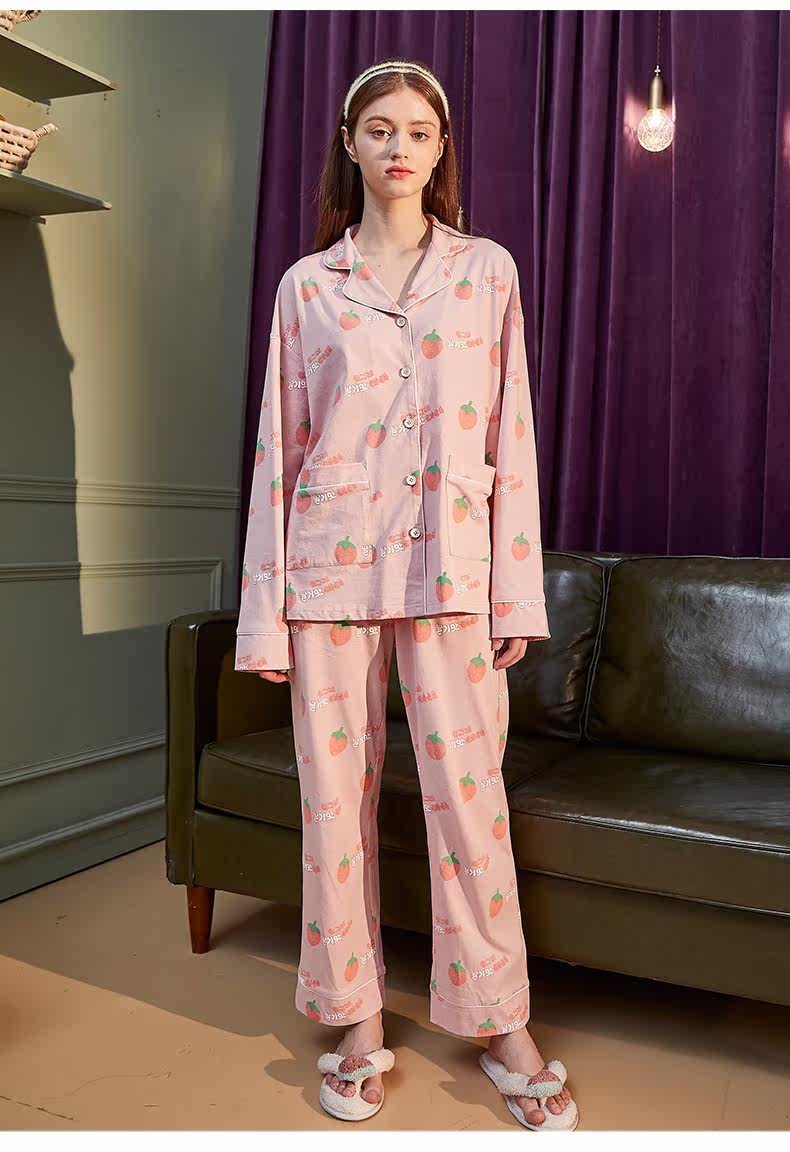 Осенняя пижама, милый хлопковый лонгслив, универсальный комплект, в корейском стиле