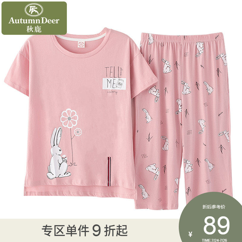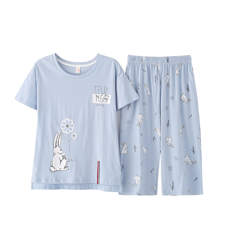 Летняя мультяшная пижама с круглым воротником, хлопковые летние тонкие штаны, короткий рукав
