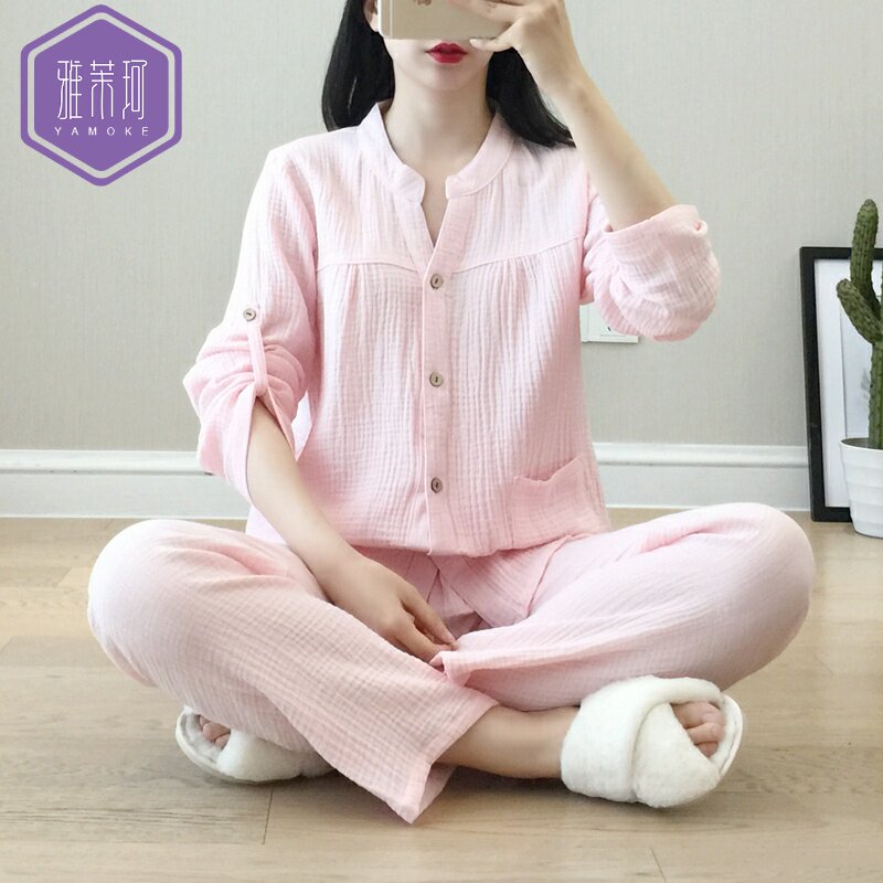 Пижама для беременных, весенняя форма, комплект, японский кардиган, весенний лонгслив, свободный крой, V-образный вырез