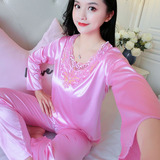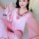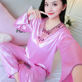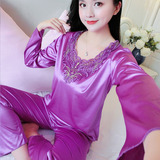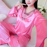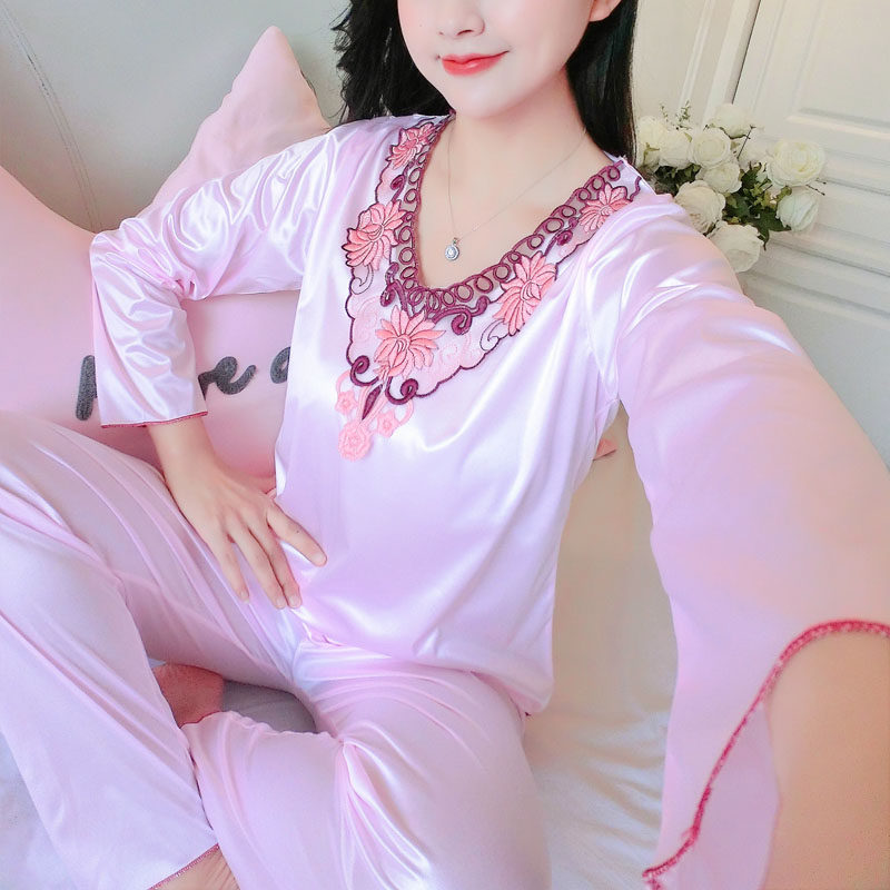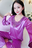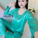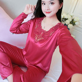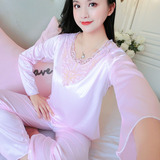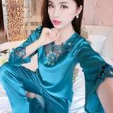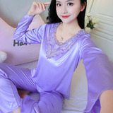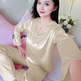 Шелковая пижама, тонкий кружевной лонгслив, домашняя одежда, летний комплект, кружевное платье