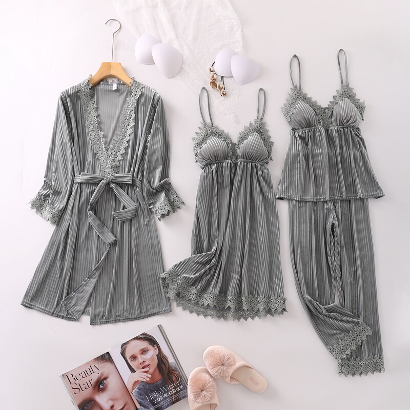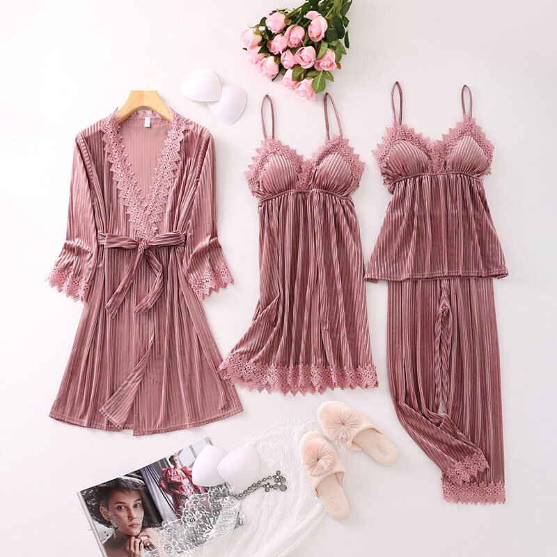 Бархатная весенняя пижама, летний сексуальный топ с чашечками, юбка, лонгслив, японский комплект, эффект подтяжки, 4 предмета