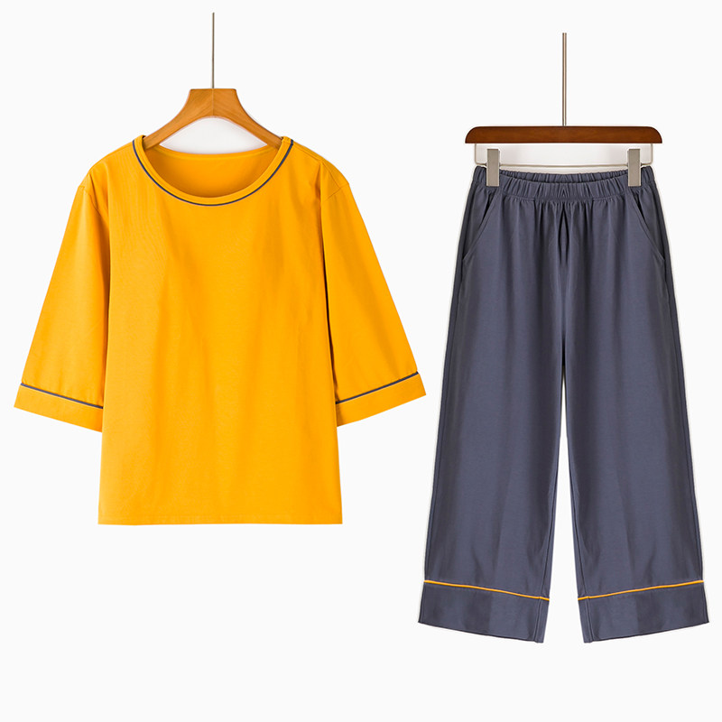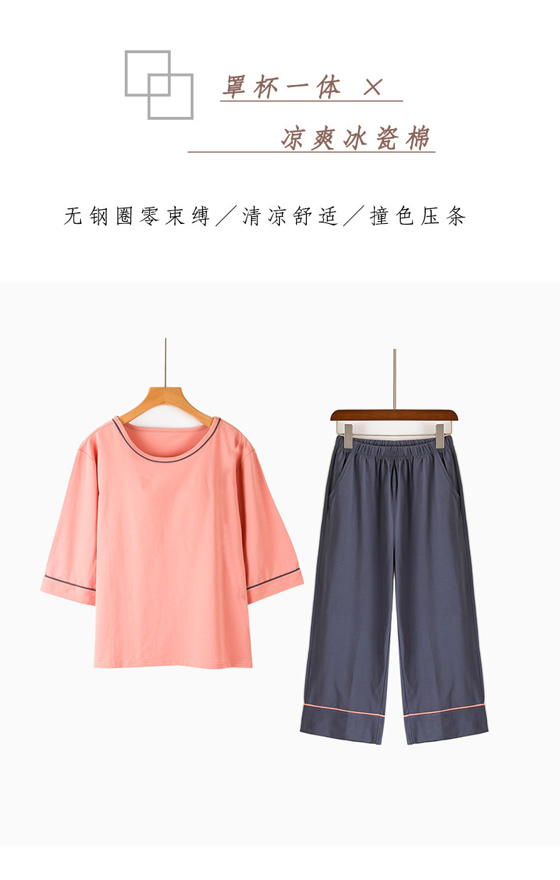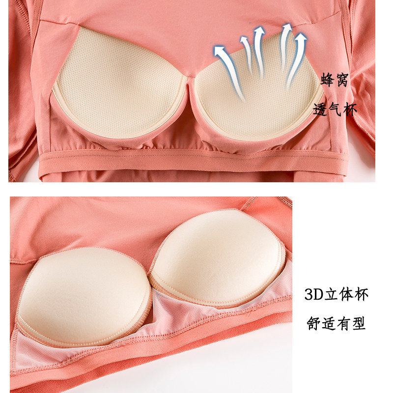 Осенний хлопковый топ с чашечками, штаны с круглым воротником, пижама, комплект для отдыха, комбинезон