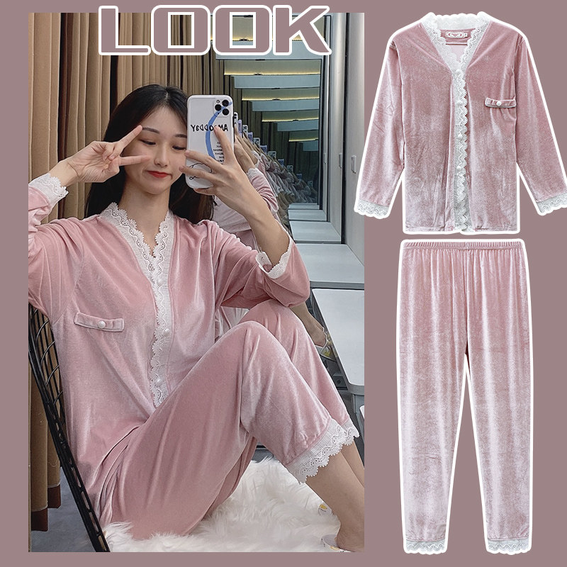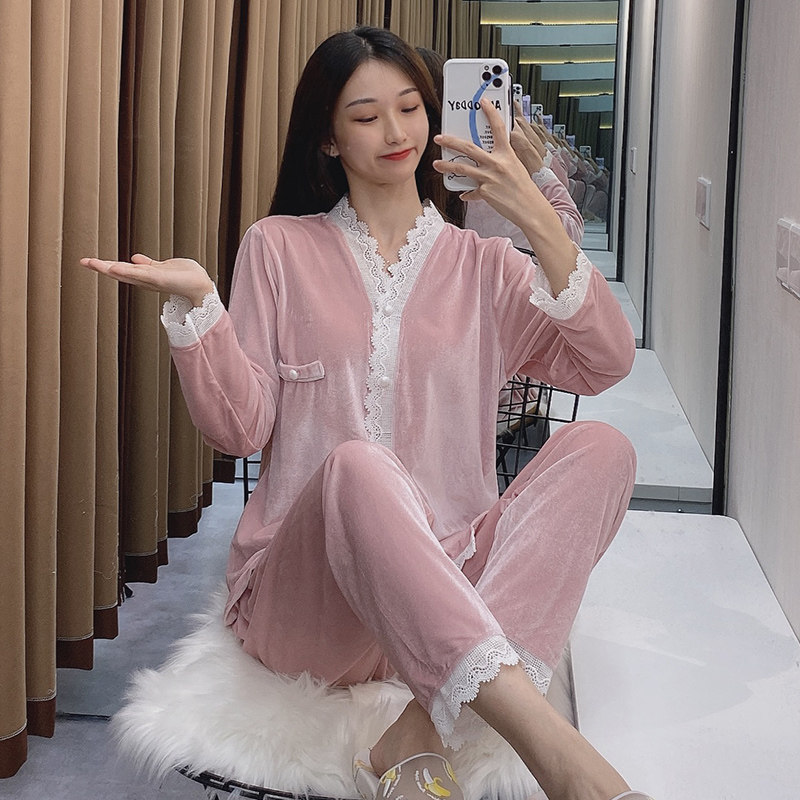 Розовая бархатная демисезонная пижама, тонкий бархатный лебедь, кружевной комплект