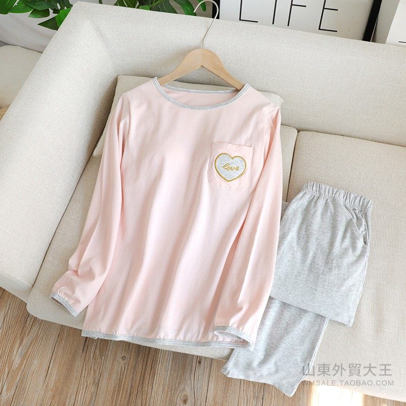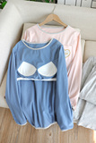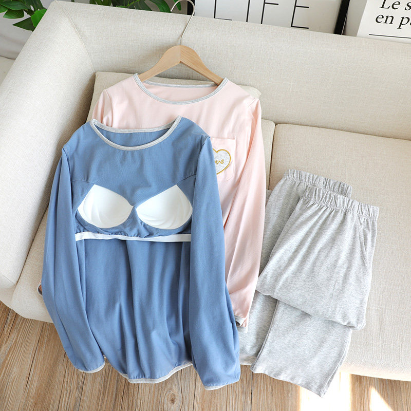 Топ с чашечками, демисезонная пижама, хлопковый лонгслив, комплект, в корейском стиле