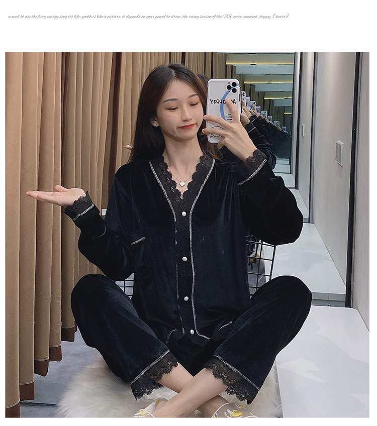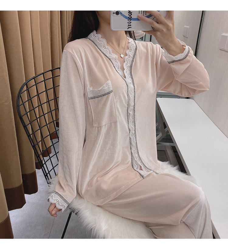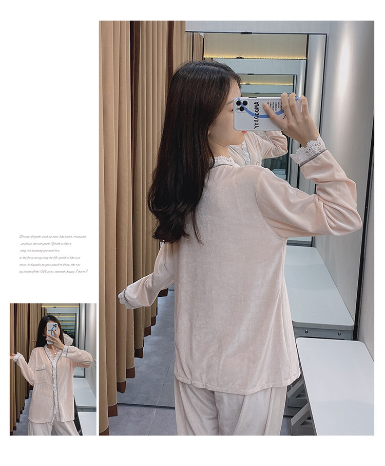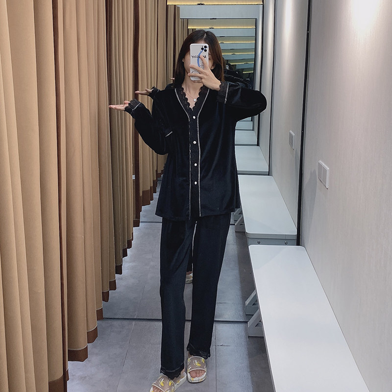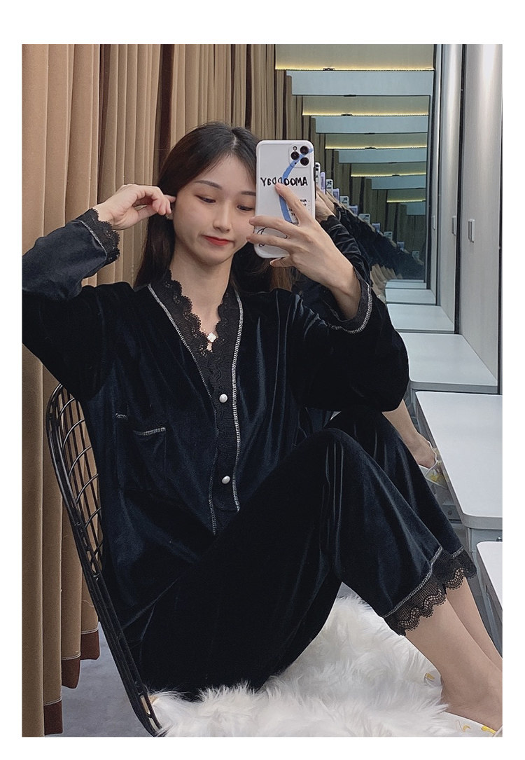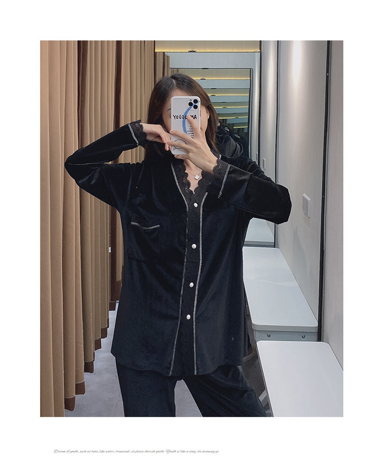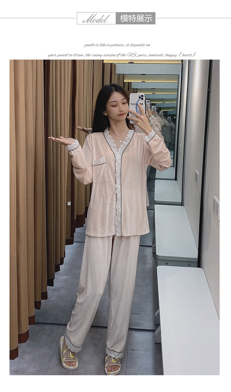 Бархатная осенняя демисезонная пижама, тонкий бархатный лонгслив, комплект, 2020 года, популярно в интернете, большой размер