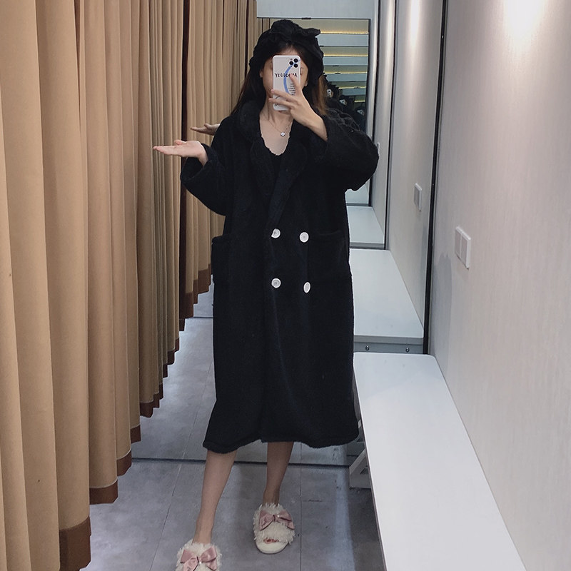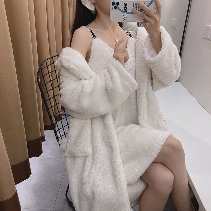 Коралловый комплект, бархатный демисезонный утепленный банный халат, длинная фланелевая зимняя пижама, 4 предмета, средней длины