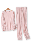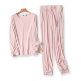 Трикотажная осенняя однотонная пижама, эластичная футболка, штаны, оверсайз, эластичная талия