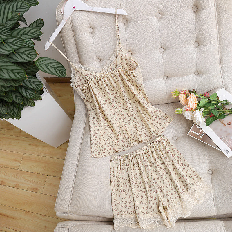 Весенняя летняя пижама, кружевная майка, свежие милые шорты, шелковый комплект для школьников, эффект подтяжки, в корейском стиле, свободный крой