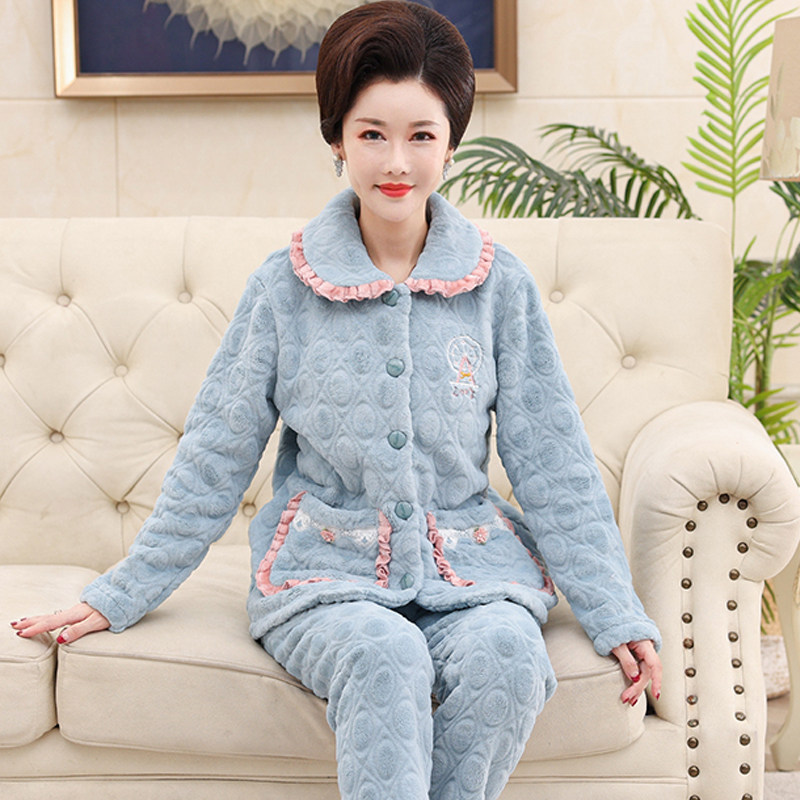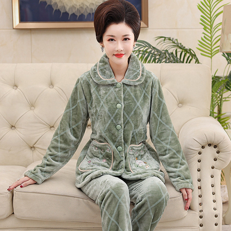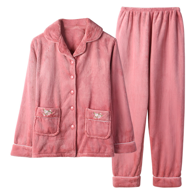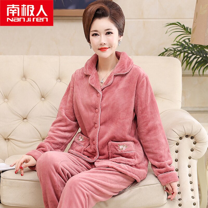 Коралловая бархатная демисезонная пижама, фланелевый комплект для пожилых людей, большой размер, для среднего возраста