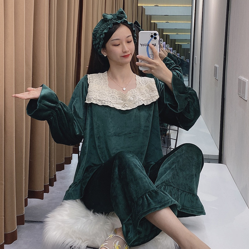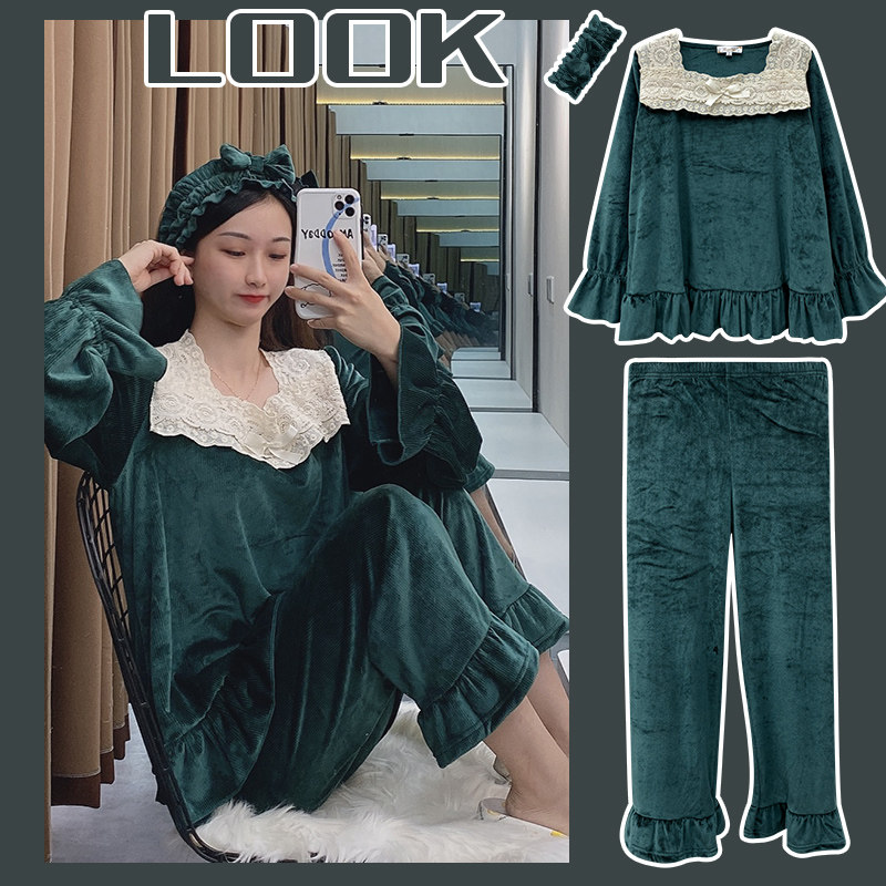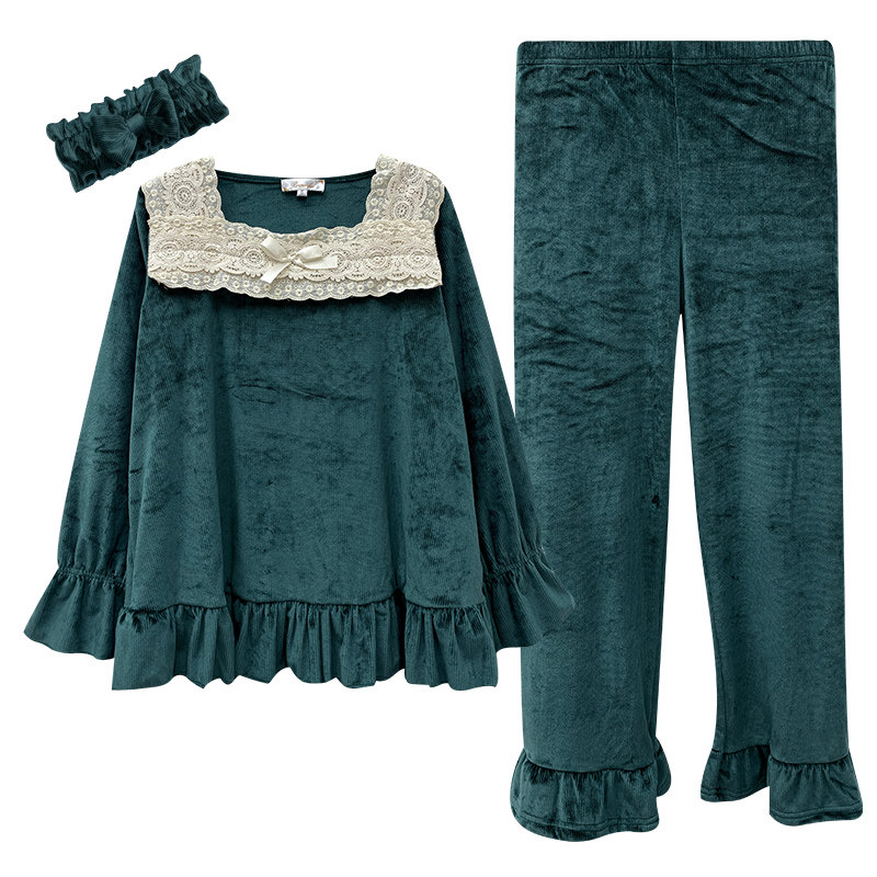 Бархатная демисезонная зеленая пижама, милый утепленный комплект, квадратный вырез