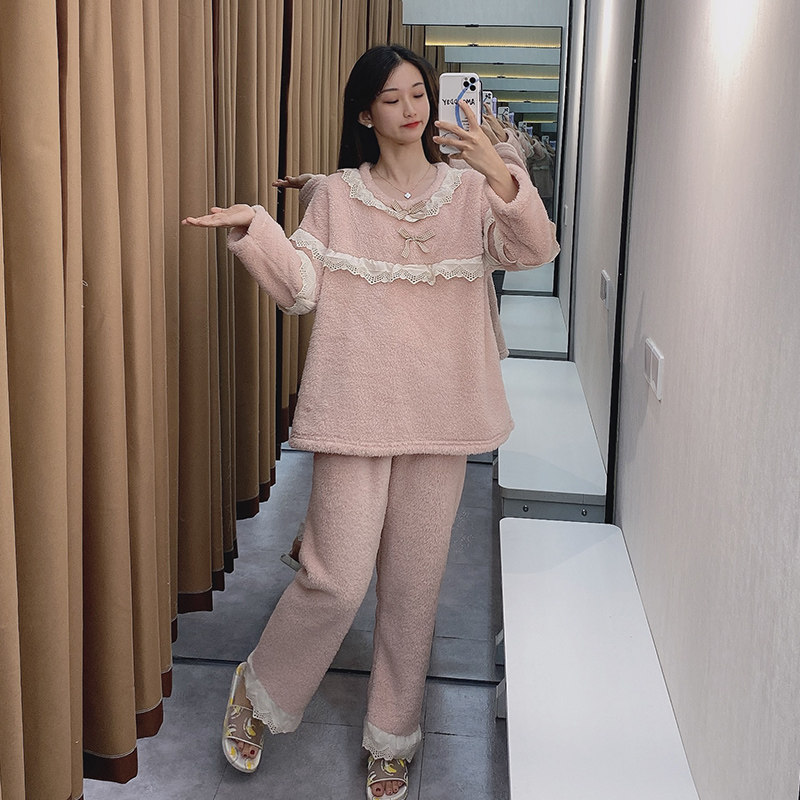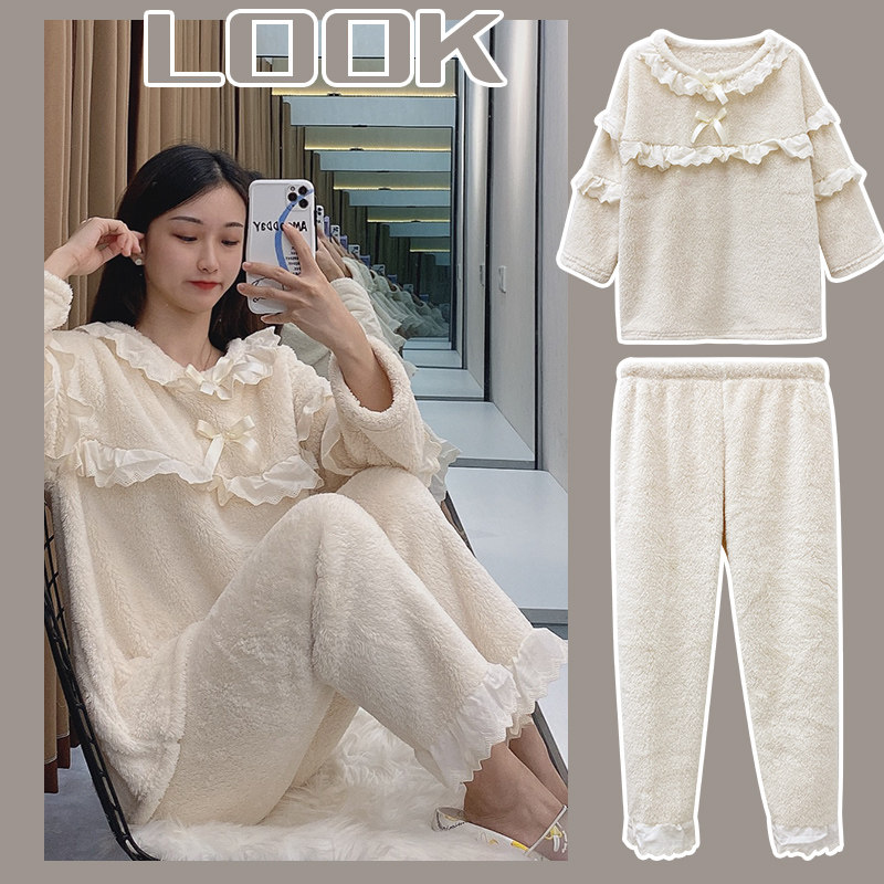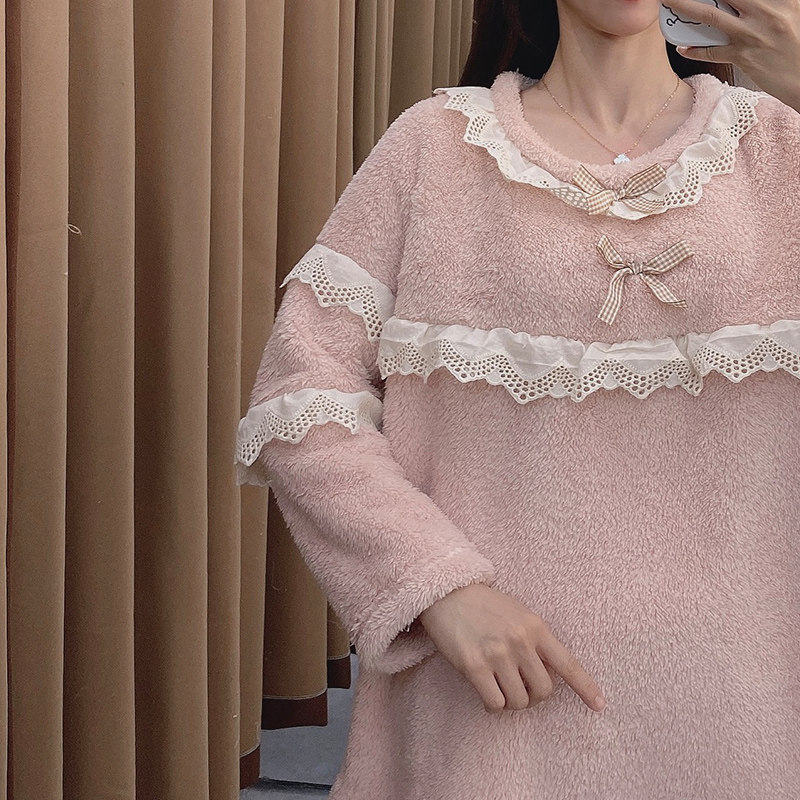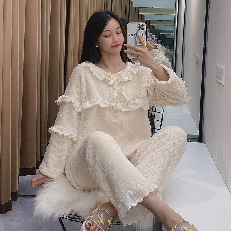 Белая демисезонная коралловая бархатная флисовая милая фланелевая пижама с бантиком, увеличенная толщина