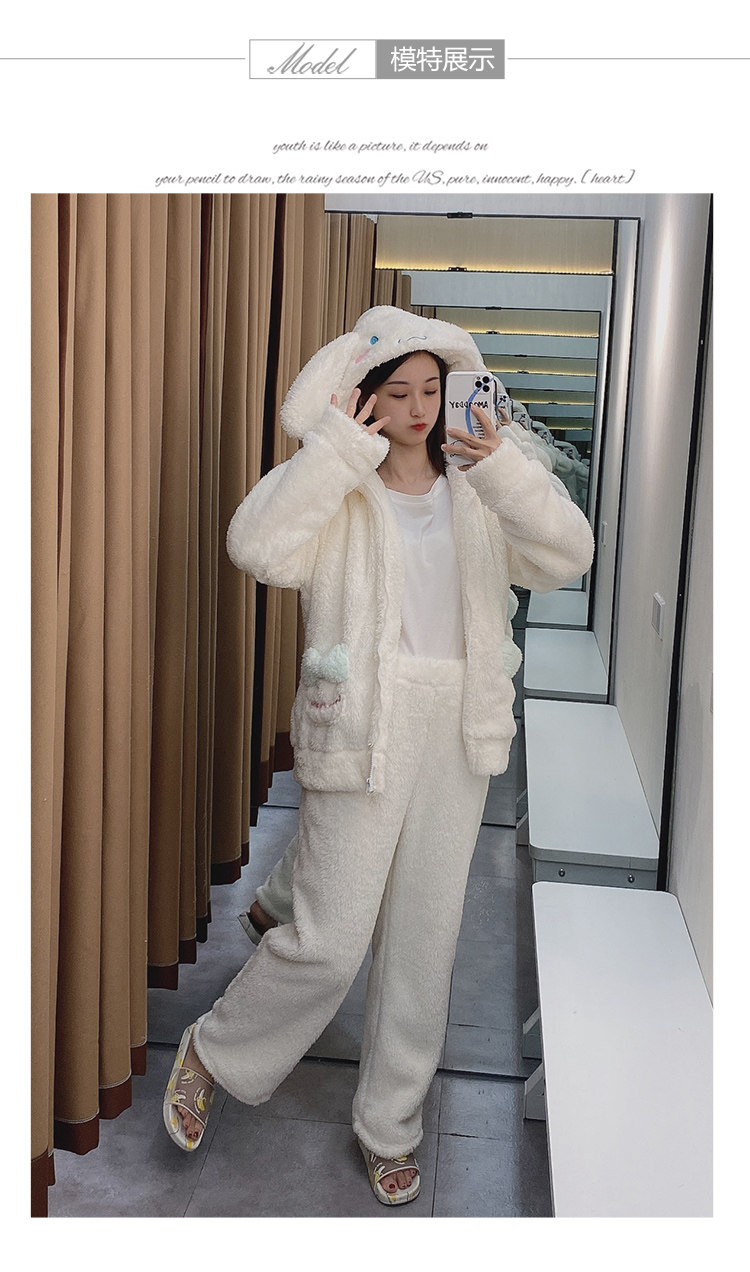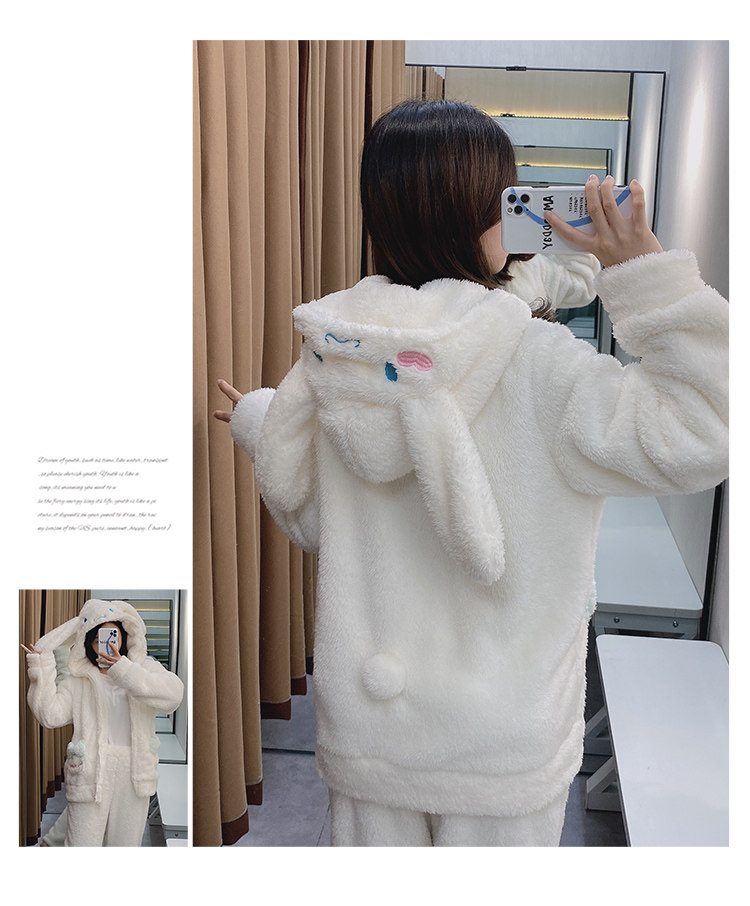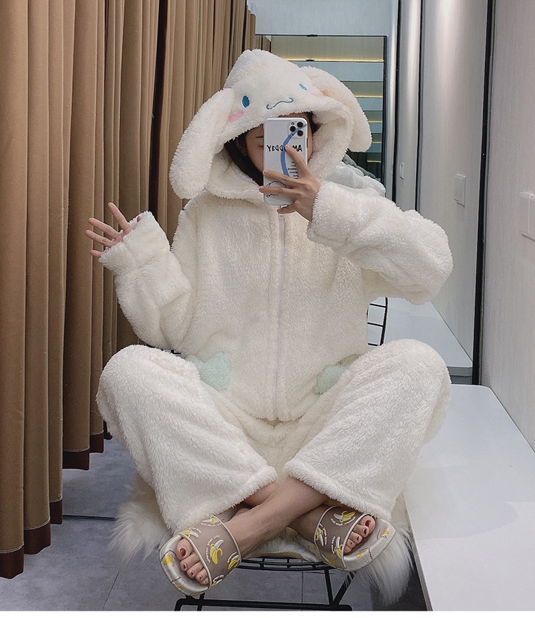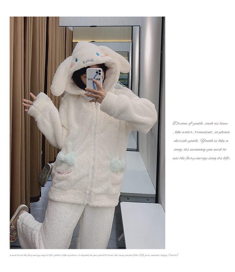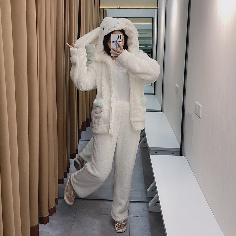 Демисезонная коралловая бархатная пижама, белая милая толстовка с капюшоном, популярно в интернете, Cinnamoroll