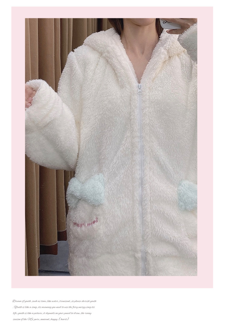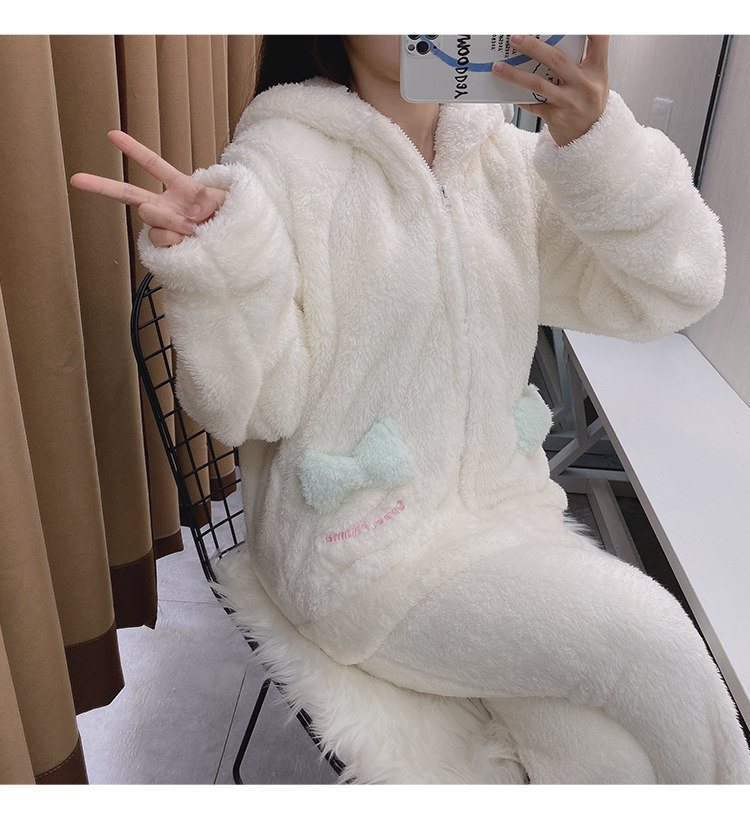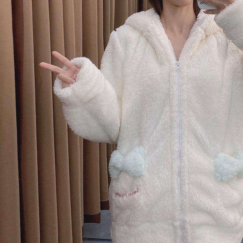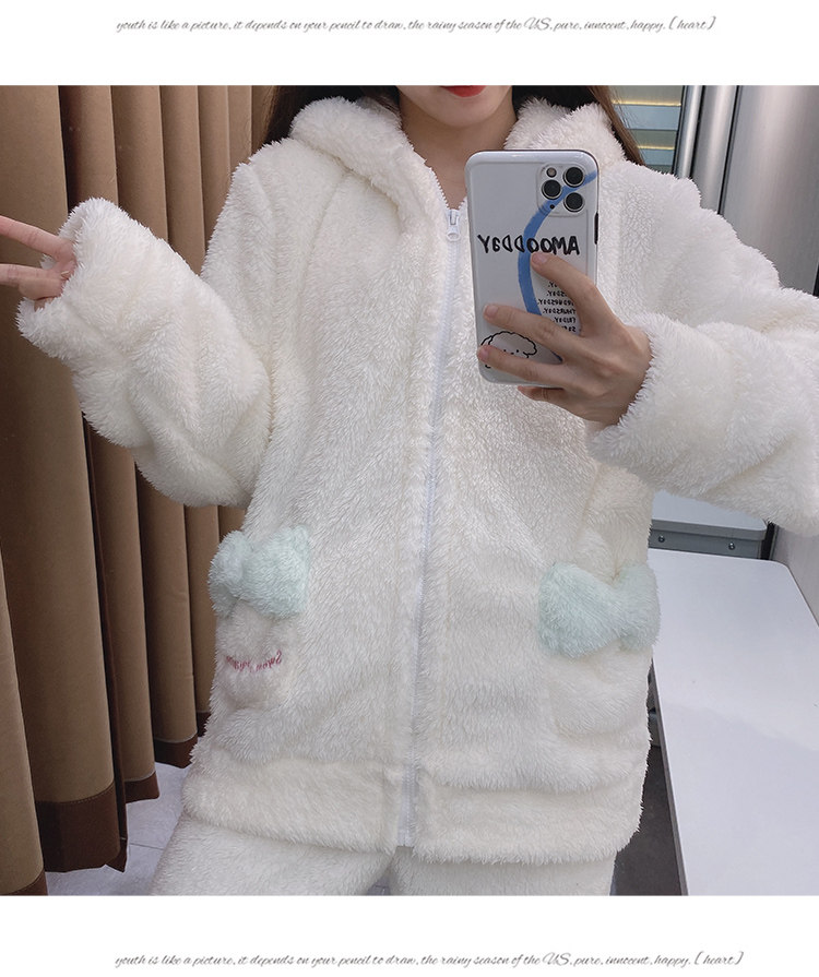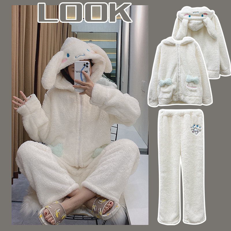 Демисезонная коралловая бархатная пижама, белая милая толстовка с капюшоном, популярно в интернете, Cinnamoroll