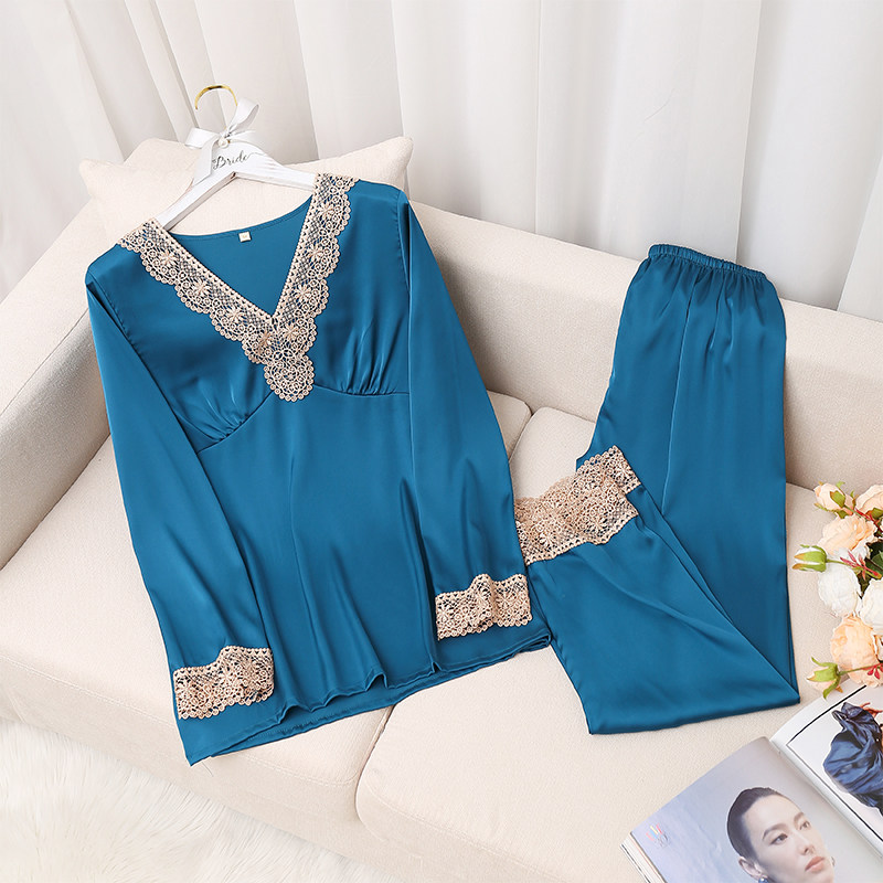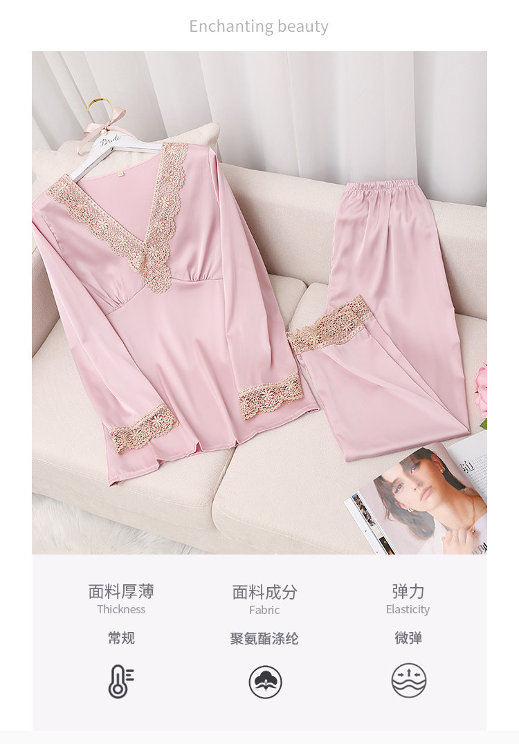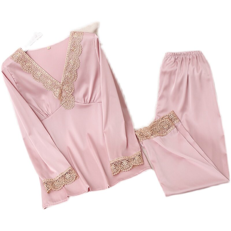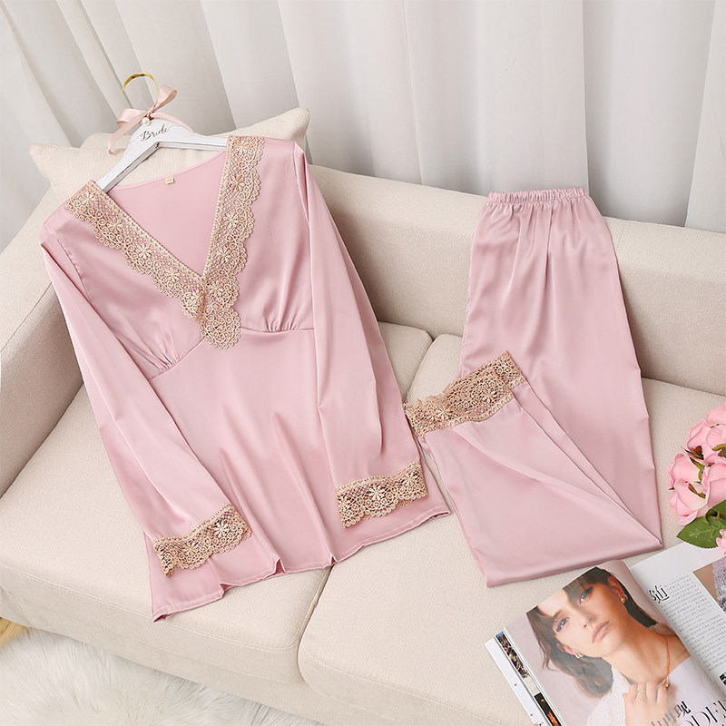 Кружевная пижама, тонкий шелковый лонгслив, сексуальный модный летний комплект, популярно в интернете, в корейском стиле