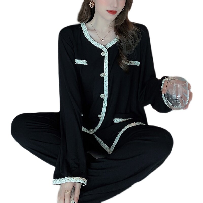 Весенняя пижама, лонгслив, хлопковый комплект, коллекция 2021, свободный крой, популярно в интернете
