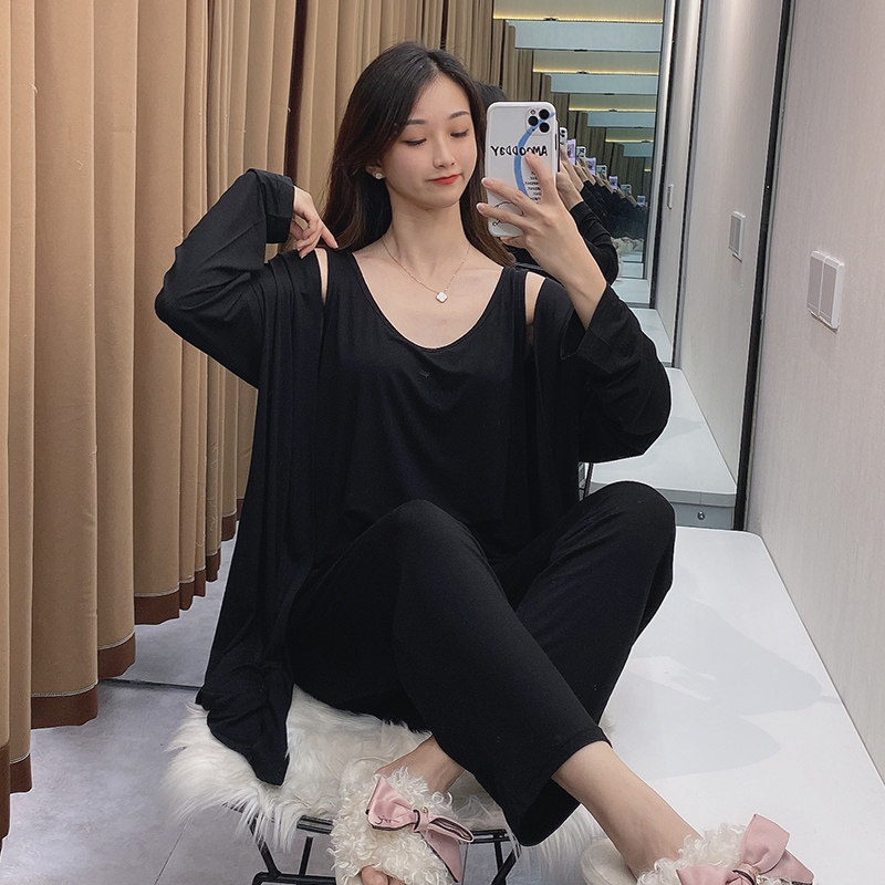 Осенняя пижама, лонгслив, жилет, летний тонкий комплект, оверсайз, 3 предмета