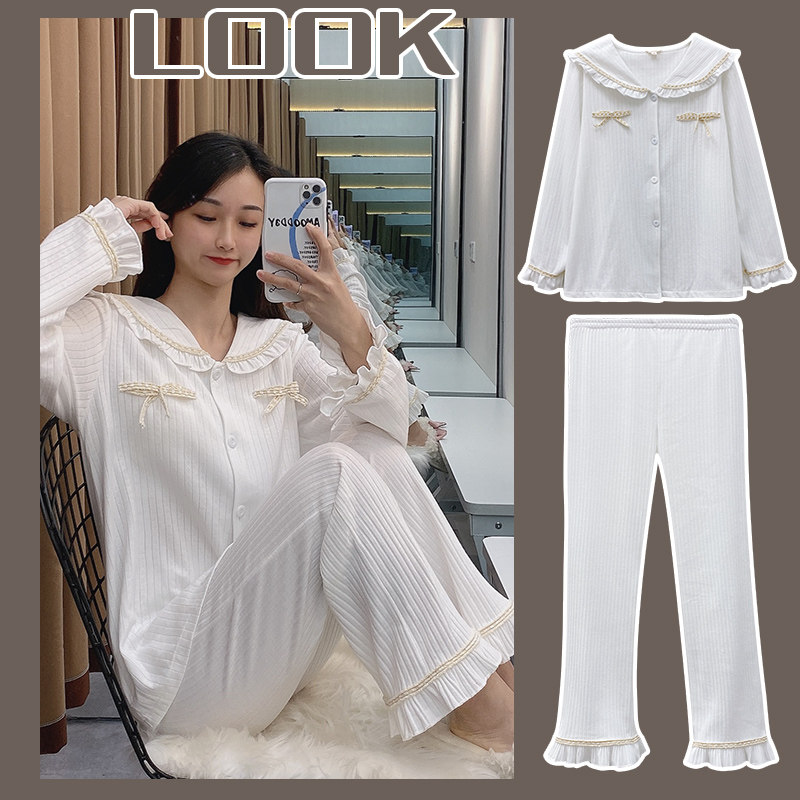 Модная осенняя пижама, хлопковый тонкий лонгслив, белая кукла, в западном стиле, популярно в интернете, кукольный воротник, в корейском стиле, в стиле Шанель