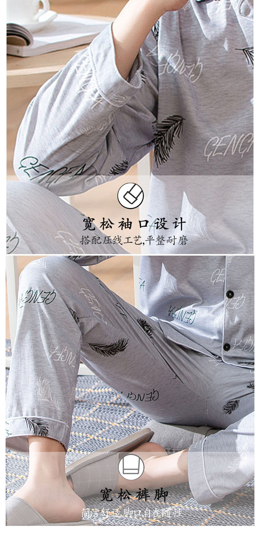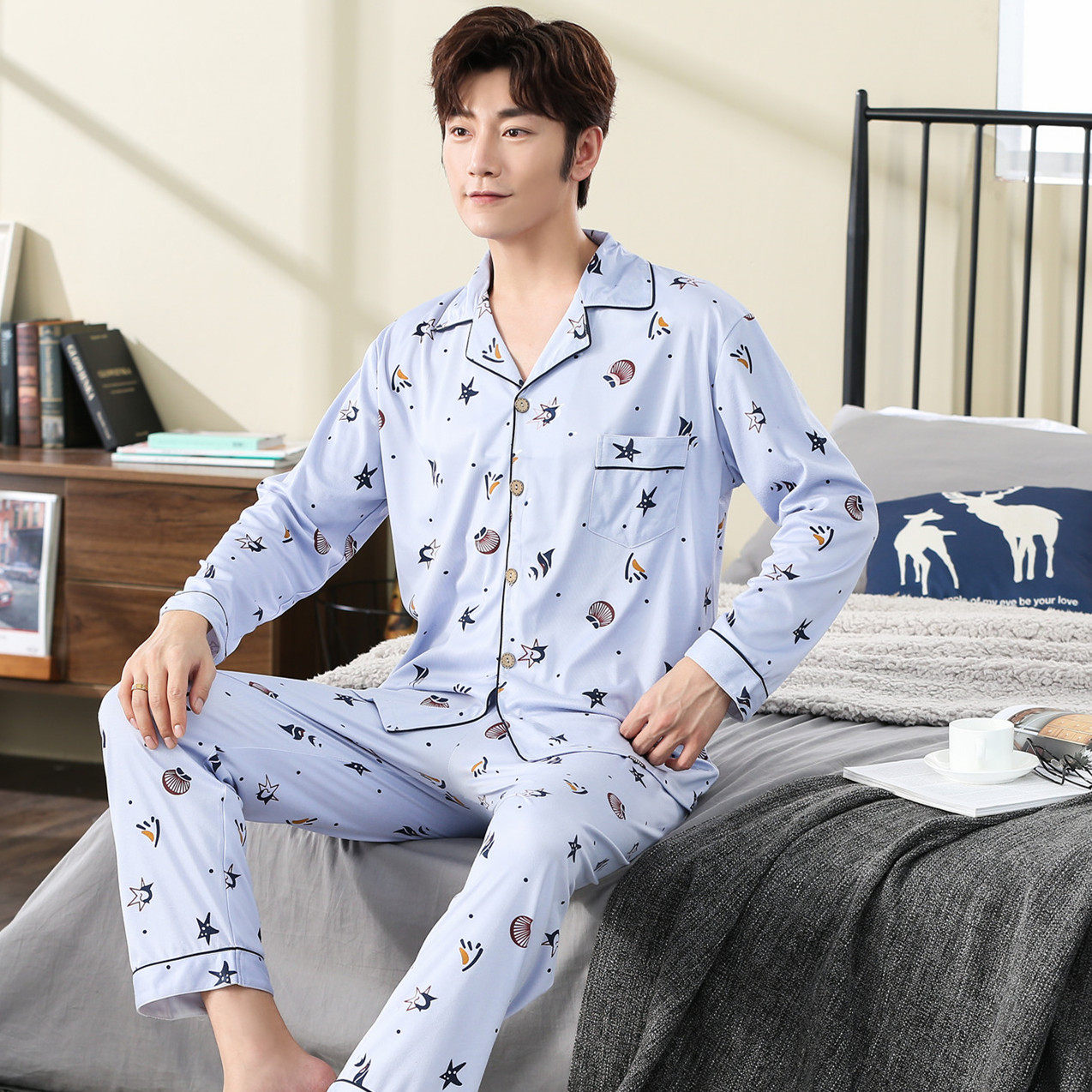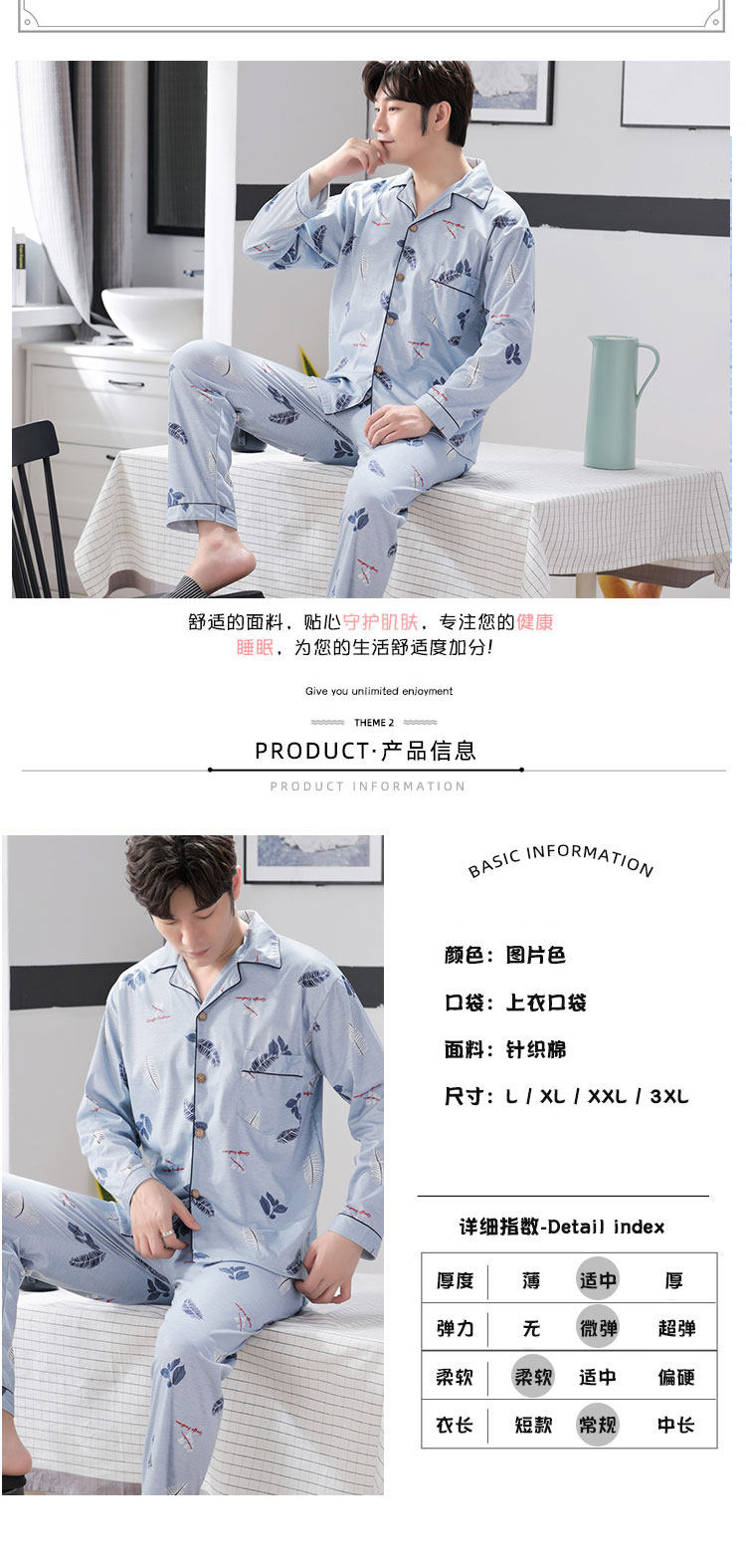 Демисезонная пижама, хлопковый тонкий лонгслив, демисезонный комплект, большой размер