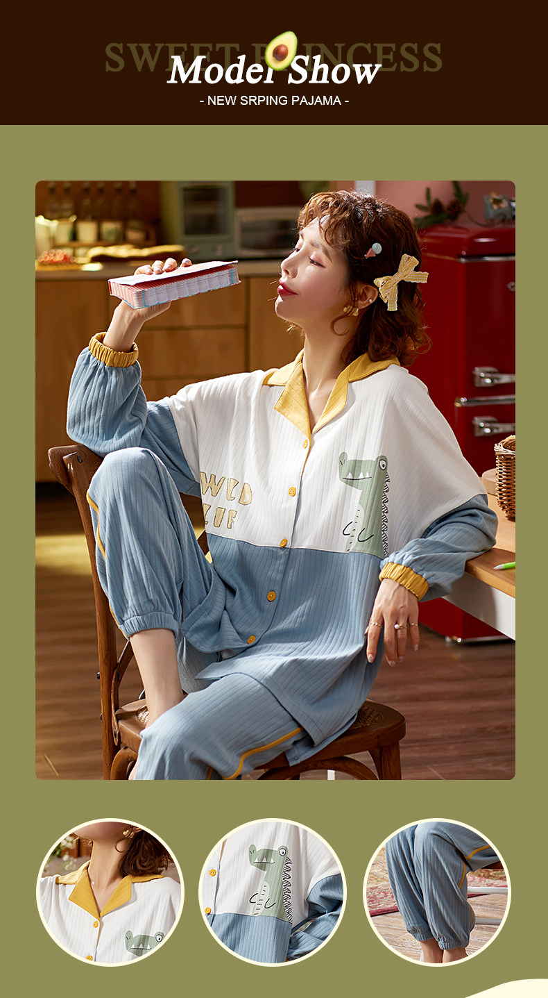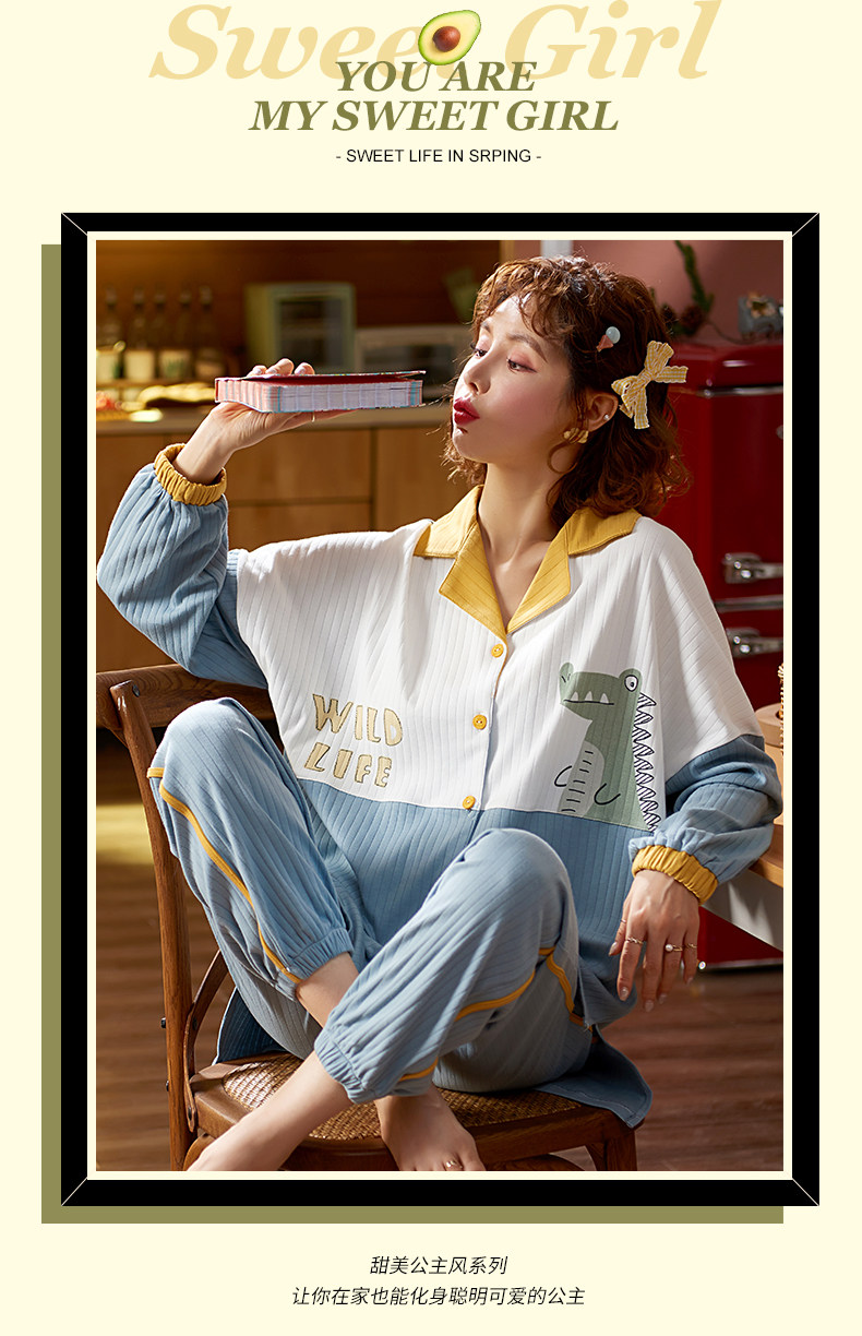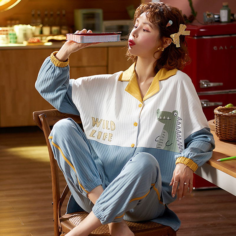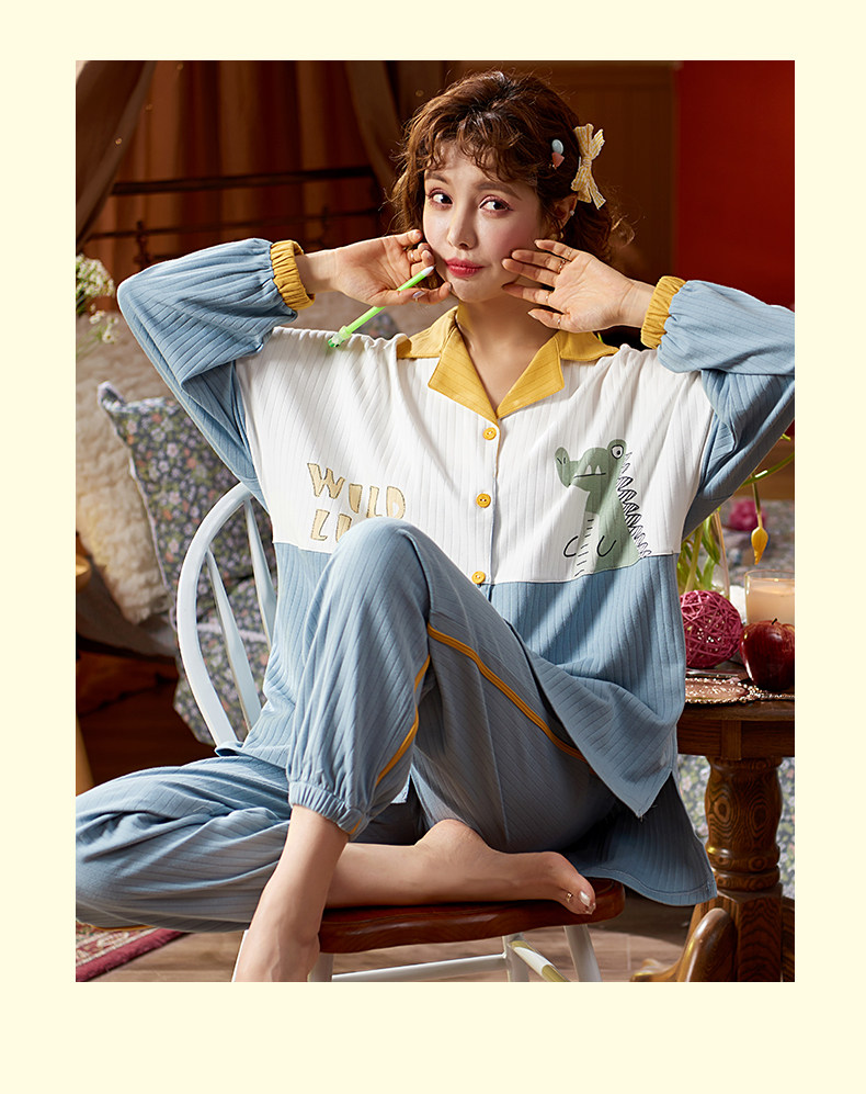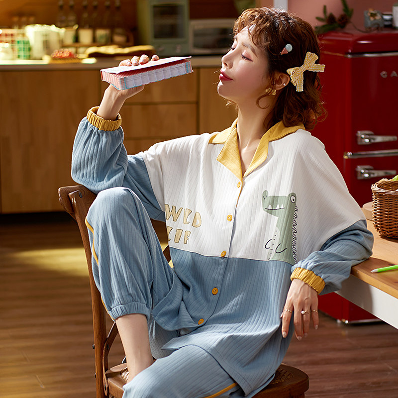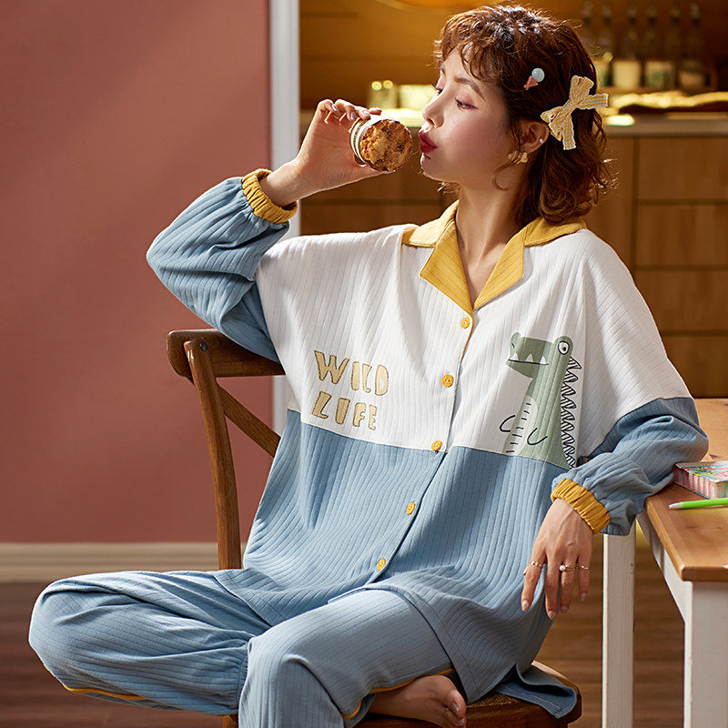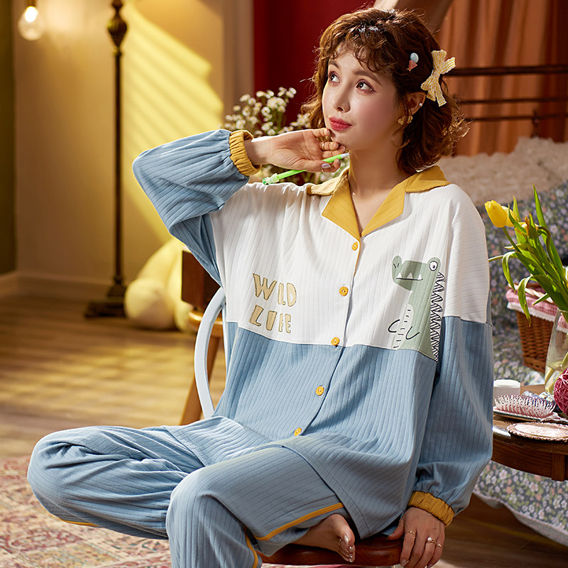 Летняя пижама, хлопковый милый лонгслив, тонкий комплект, в корейском стиле, 2021 года, большой размер