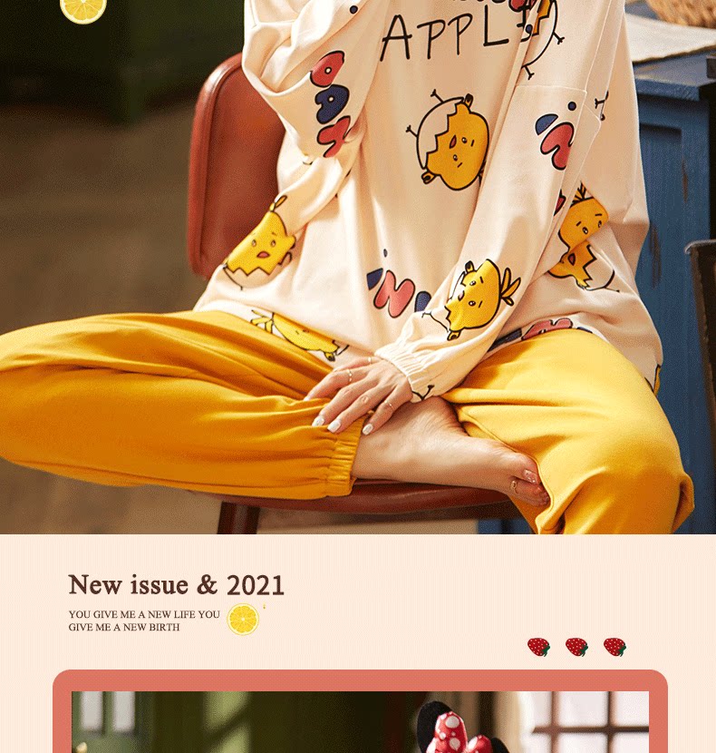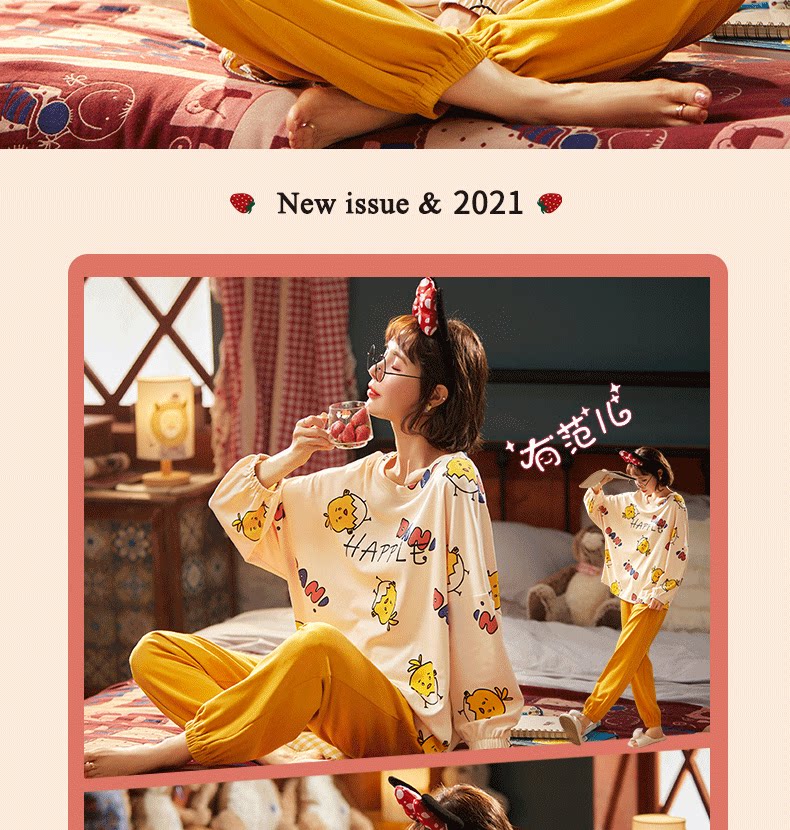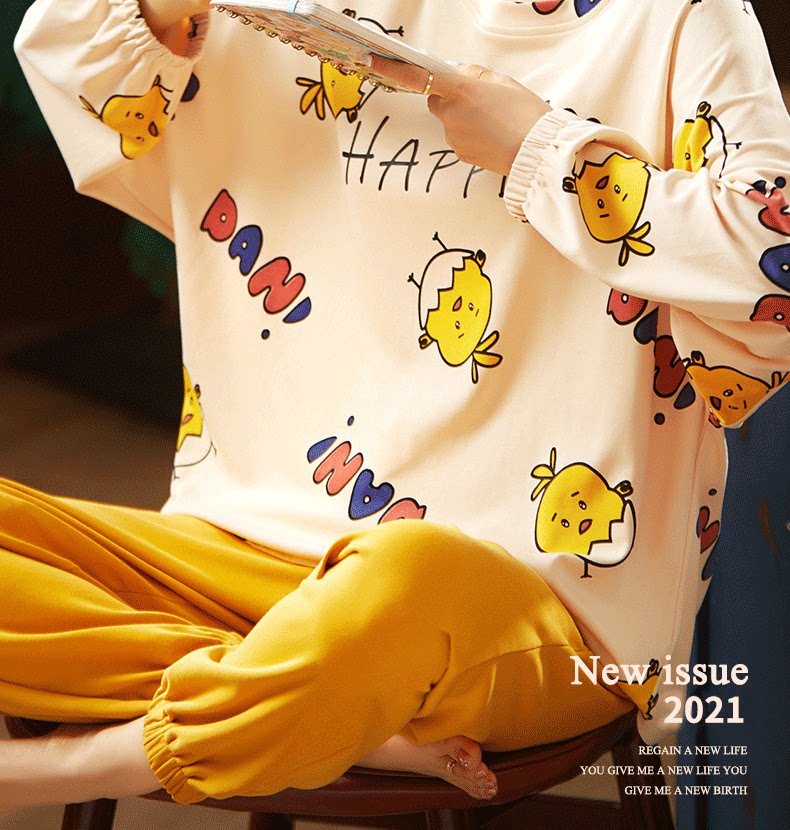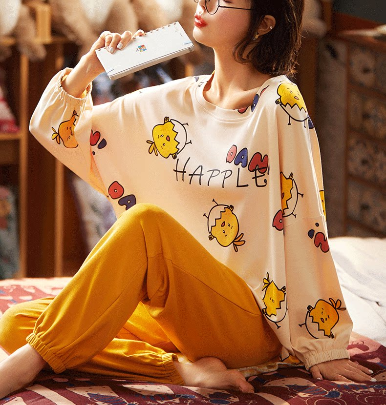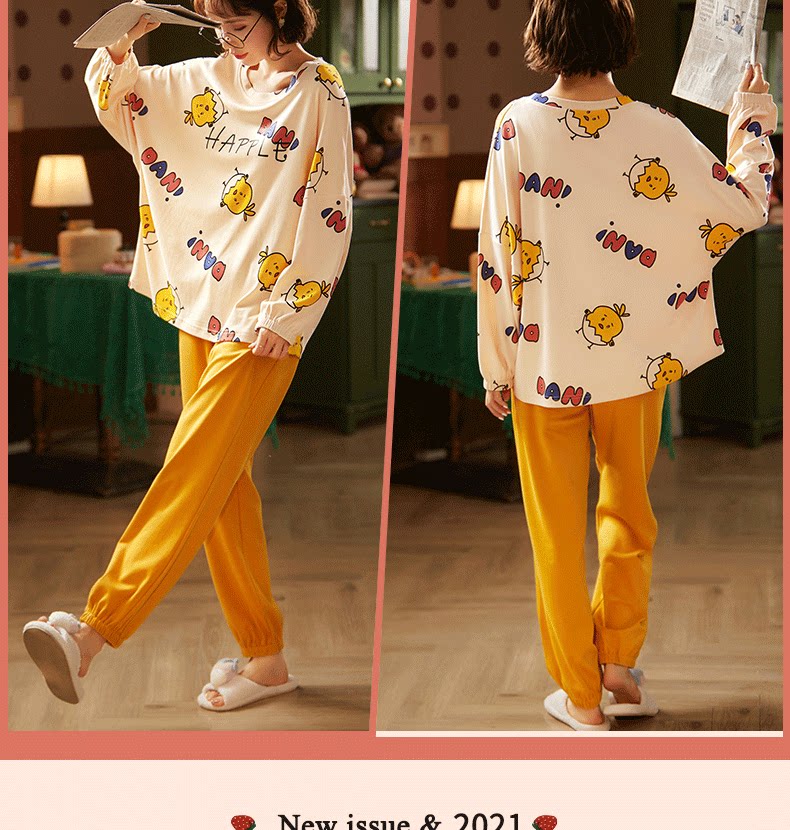 Осенняя демисезонная пижама, хлопковый демисезонный лонгслив, комплект, популярно в интернете, 2021 года