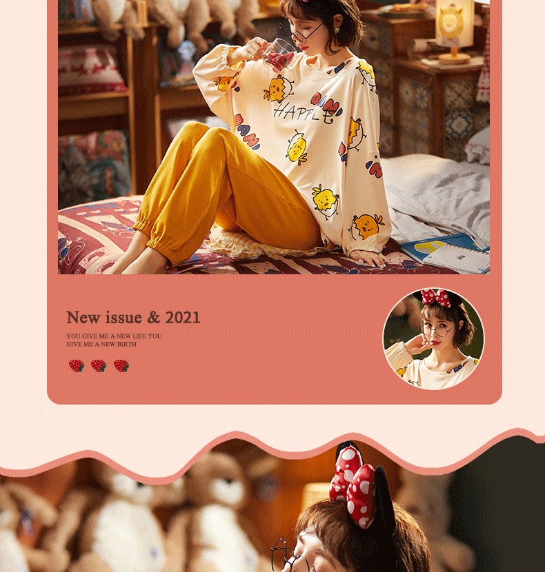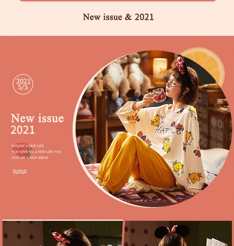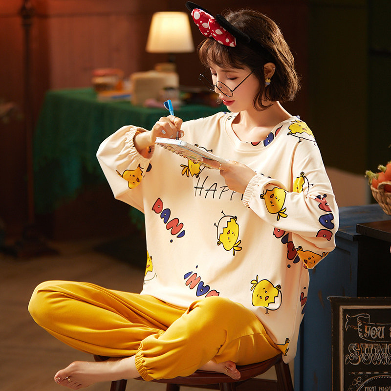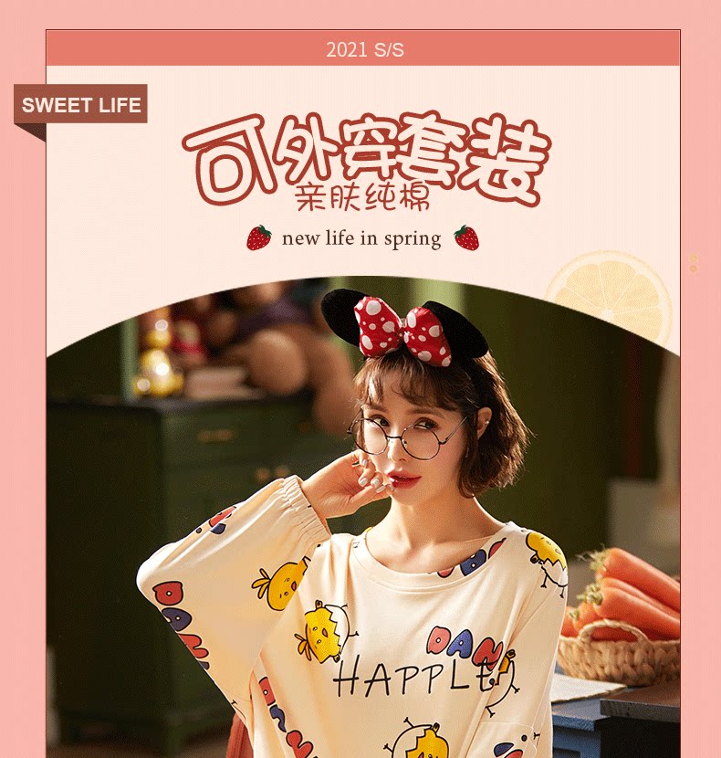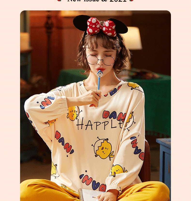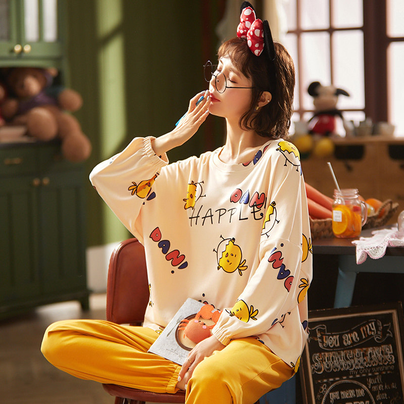 Осенняя демисезонная пижама, хлопковый демисезонный лонгслив, комплект, популярно в интернете, 2021 года